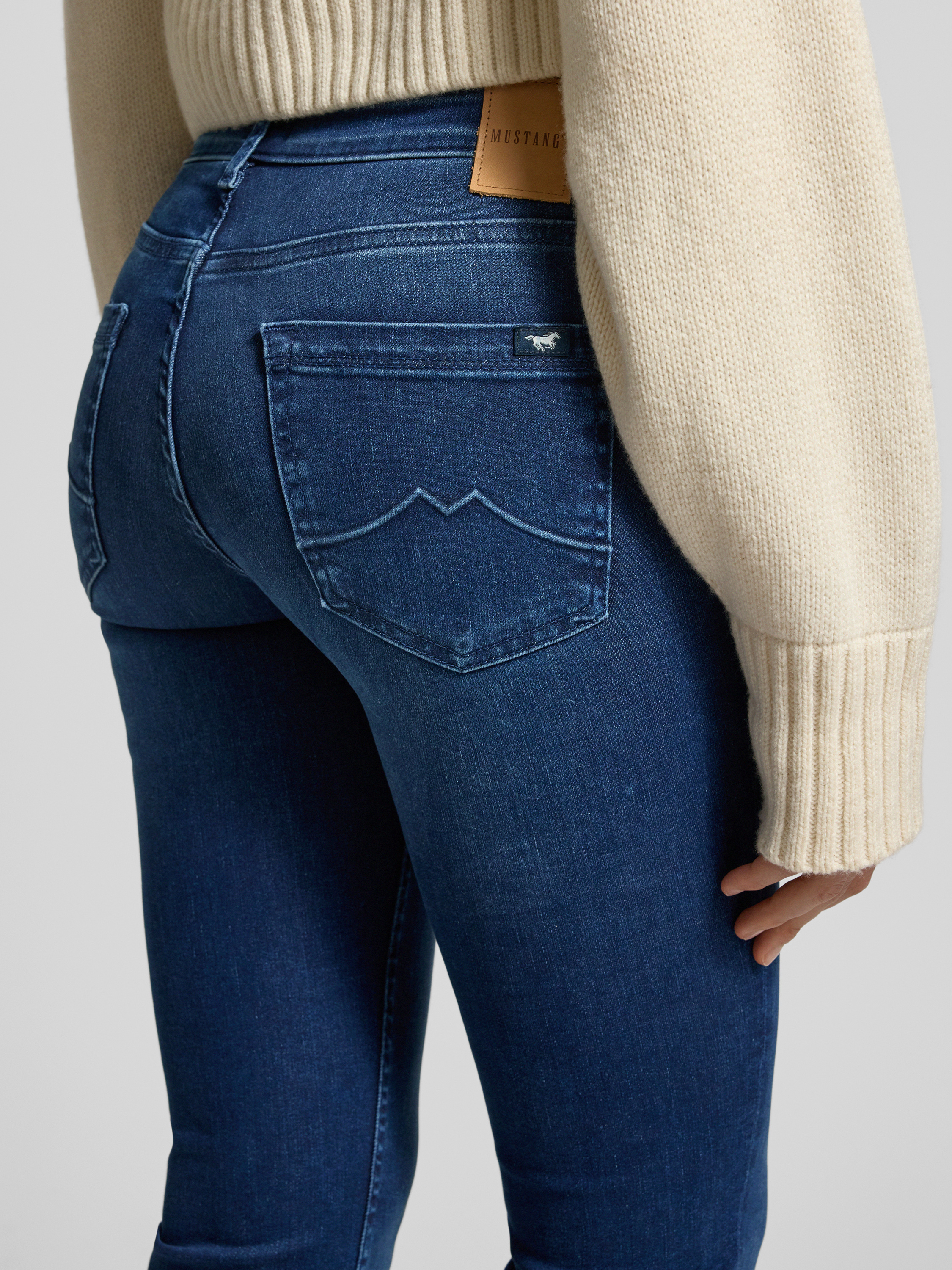 Die Damen Flared Jeans Shelby von Mustang zeichnet sich durch ihren ausgestellten Schnitt aus, der für Bewegungsfreiheit sorgt und die Silhouette optisch streckt. Der Baumwoll-Lyocell-Mix mit Stretch-Anteil fühlt sich angenehm an und sitzt zuverlässig. Durch das klassische 5-Pocket-Design bleibt das Modell vielseitig kombinierbar.