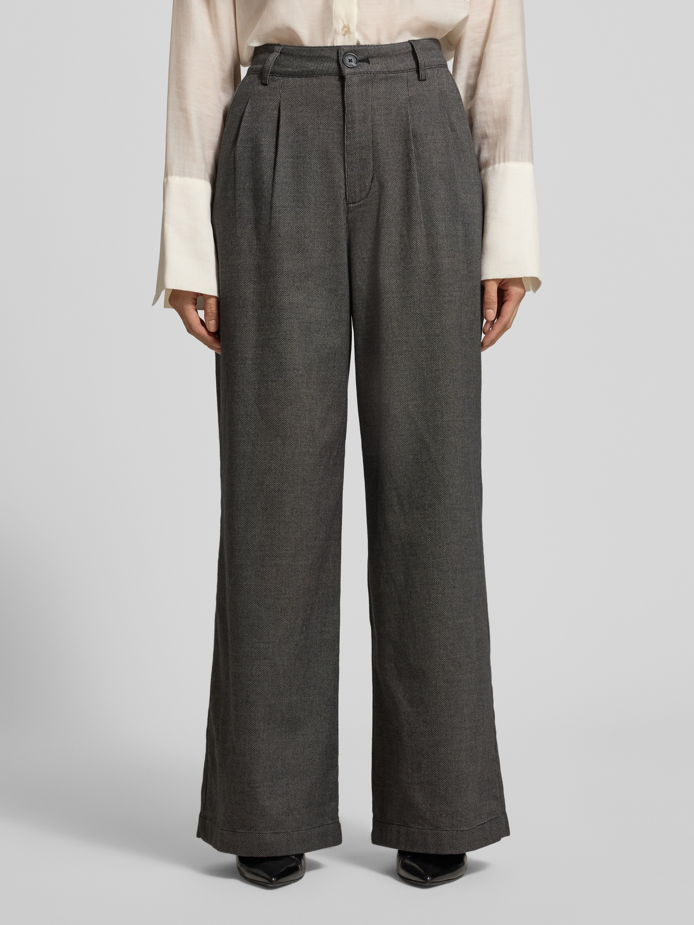 Die Damen Hose von Mustang im Modell 'Tullahoma' fällt durch ihr weites Bein angenehm locker und sorgt so für Bewegungsfreiheit im Alltag. Der Baumwoll-Mix mit Viskose-Anteil fühlt sich weich auf der Haut an und unterstützt ein angenehmes Tragegefühl. Praktische Eingrifftaschen und Gesäßtaschen runden das funktionale Design ab.