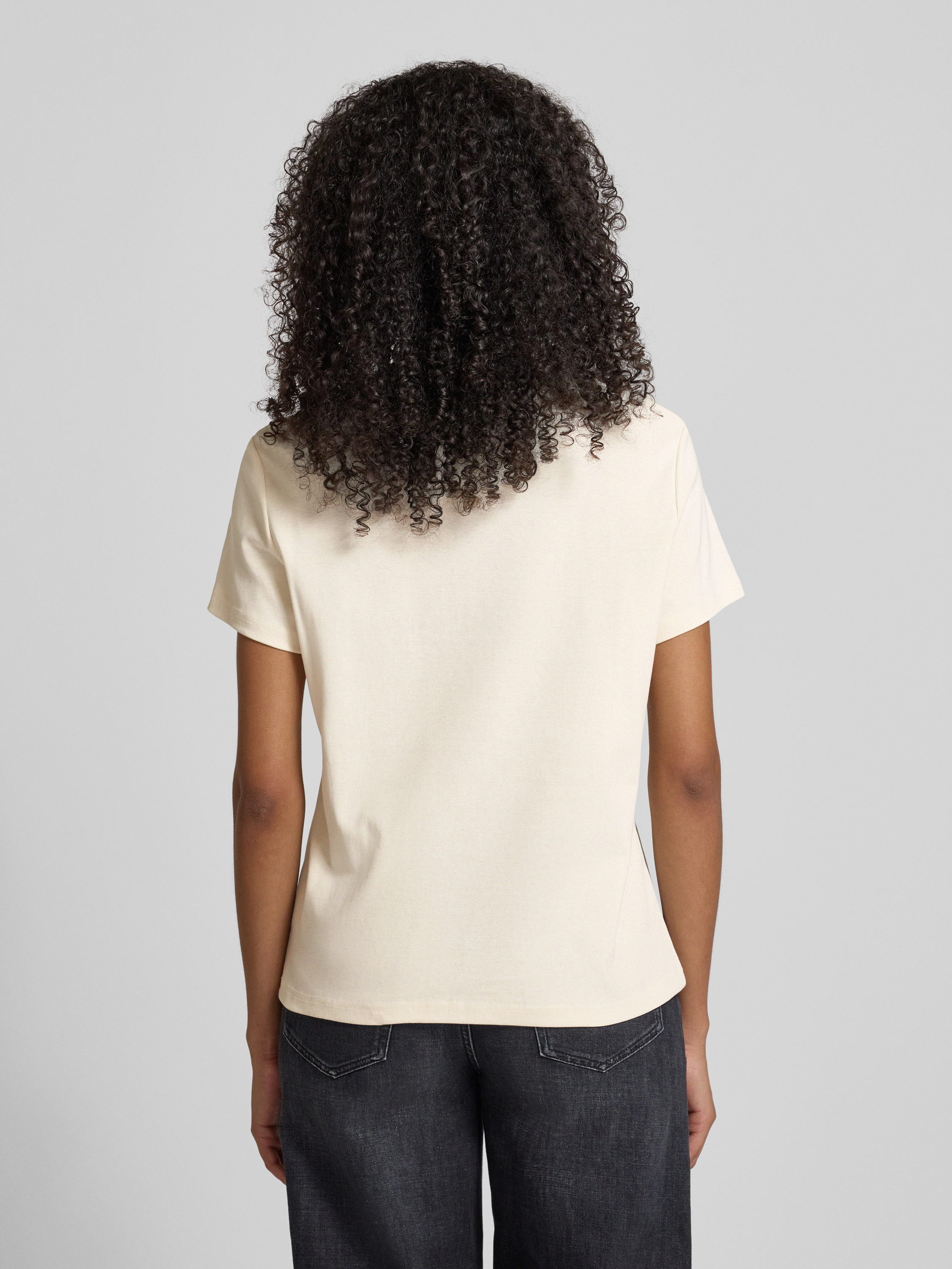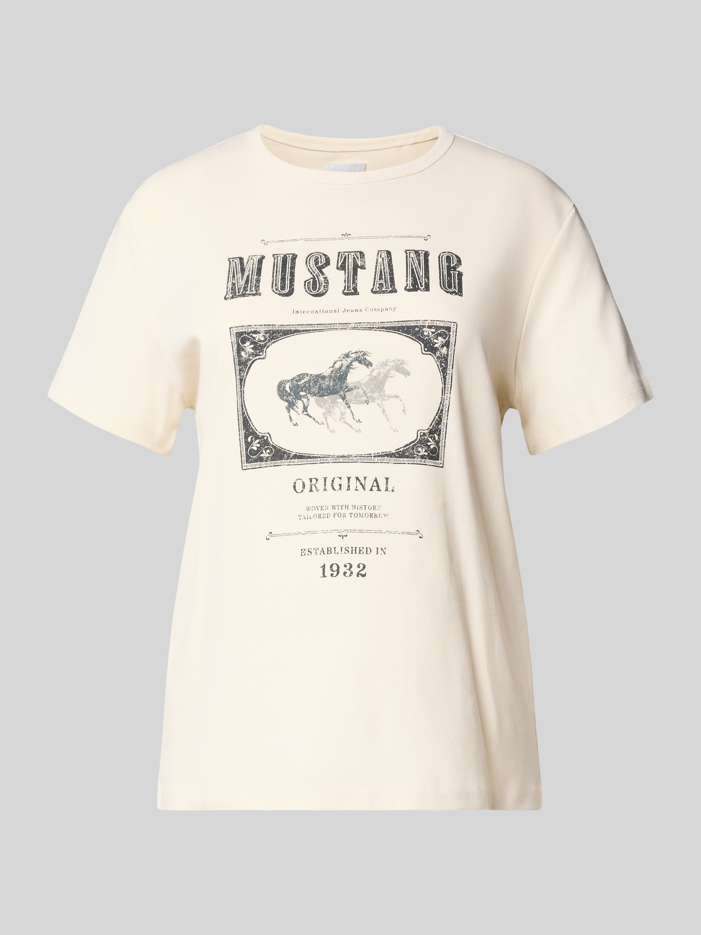 Das Damen-T-Shirt von Mustang, Modell Rosewood, besteht aus reiner Baumwolle und liegt angenehm auf der Haut. Durch den Regular Fit entsteht eine entspannte Passform, die vielseitig kombinierbar wirkt. Ein Label-Print auf der Vorderseite setzt einen dezenten Akzent im Alltag.