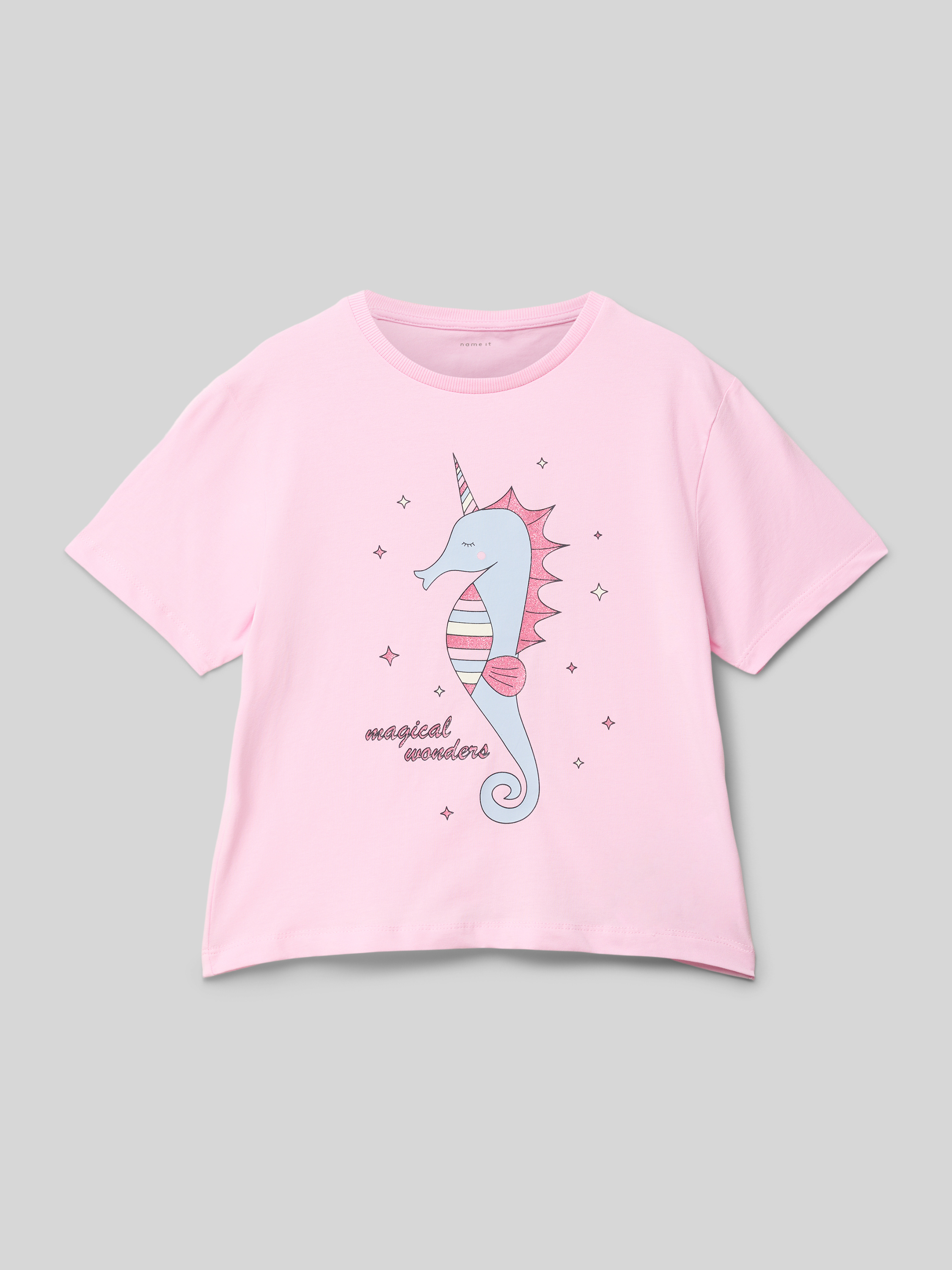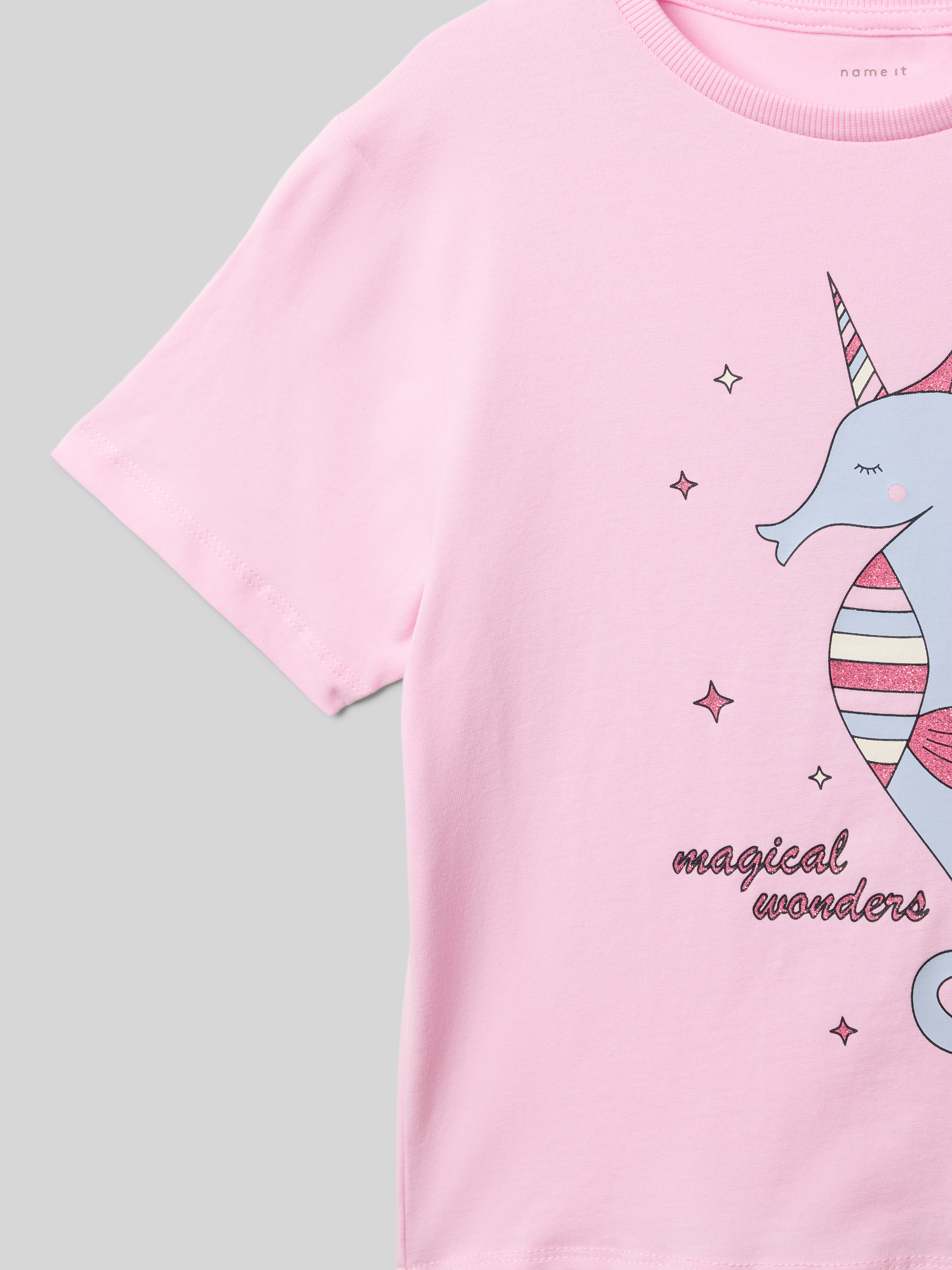 Das T-Shirt von NAME IT, gefertigt aus reiner Baumwolle, vereint Komfort und Stil in einem Regular Fit. Der farbenfrohe Motiv-Print verleiht dem Kinderoutfit einen fröhlichen Akzent. Dank des Rundhalsausschnitts und der angenehmen Passform lässt es sich vielseitig kombinieren.