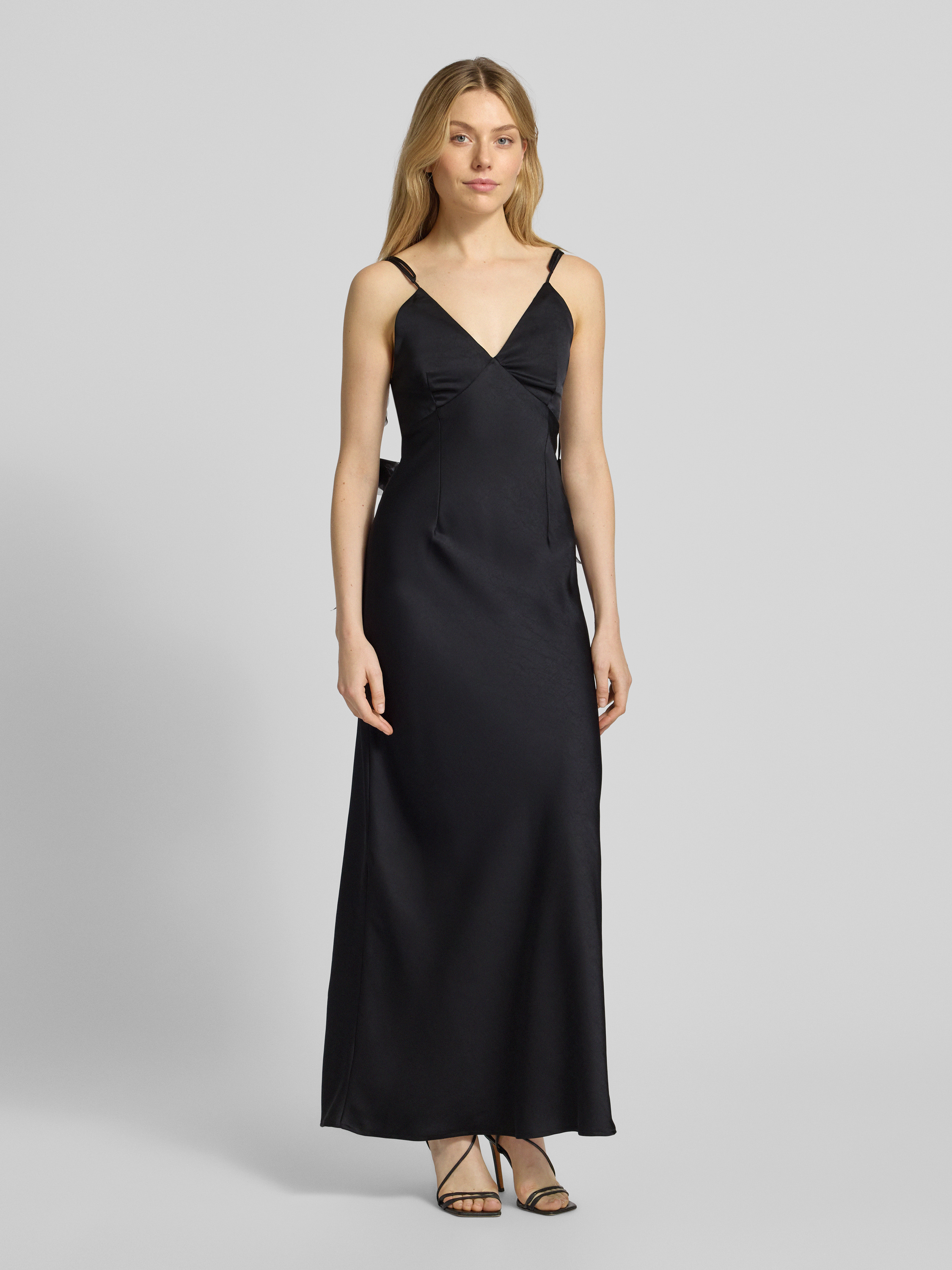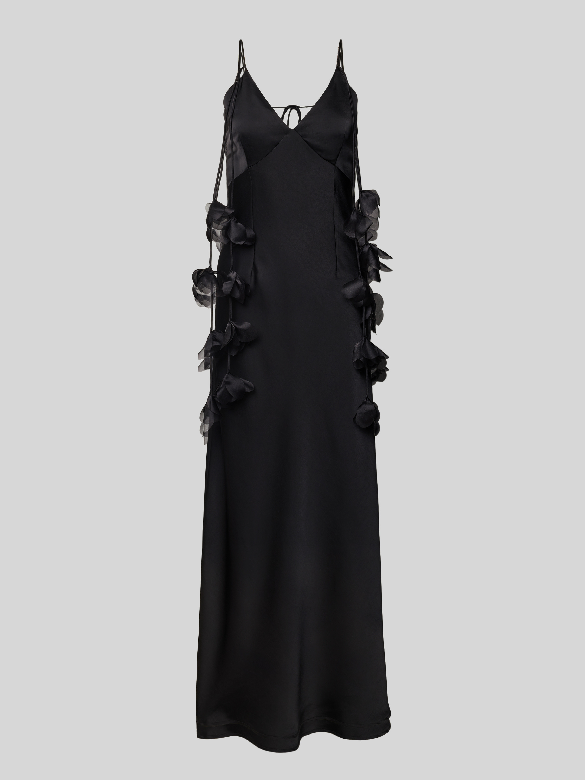 Das Damen Maxikleid von Neo Noir fällt in einer fließenden A-Linie und setzt durch den V-Ausschnitt einen dezenten Akzent. Satin sorgt für eine angenehm glatte Oberfläche, wodurch sich das Modell Colly Heavy Sateen Dress geschmeidig anfühlt. Florale Applikationen verleihen dem Kleid eine verspielte Note, die sich vielseitig kombinieren lässt.