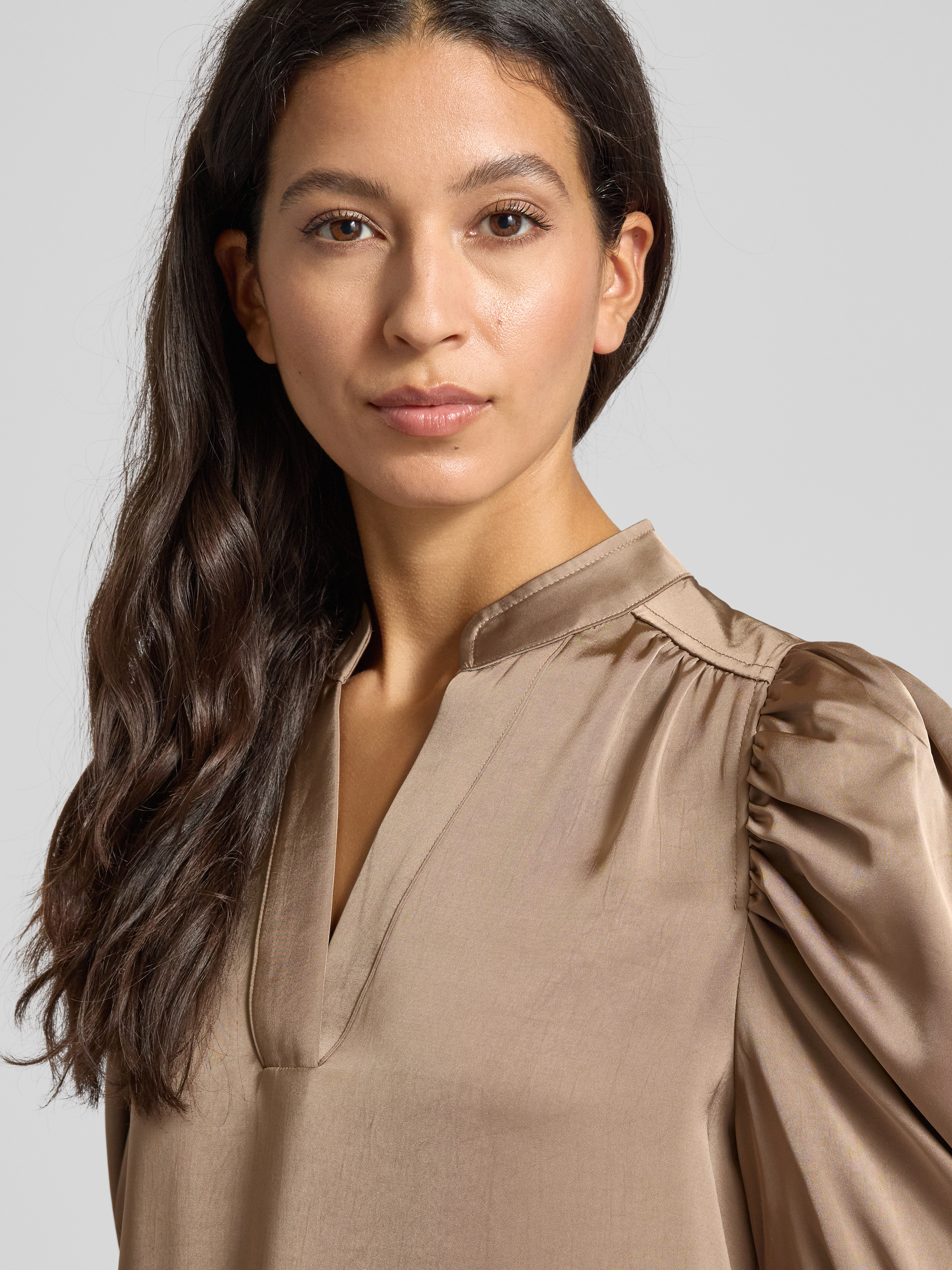 Neo NoirRegular Fit Blusenshirt mit Puffärmeln Modell 'Roella' in hellbraun