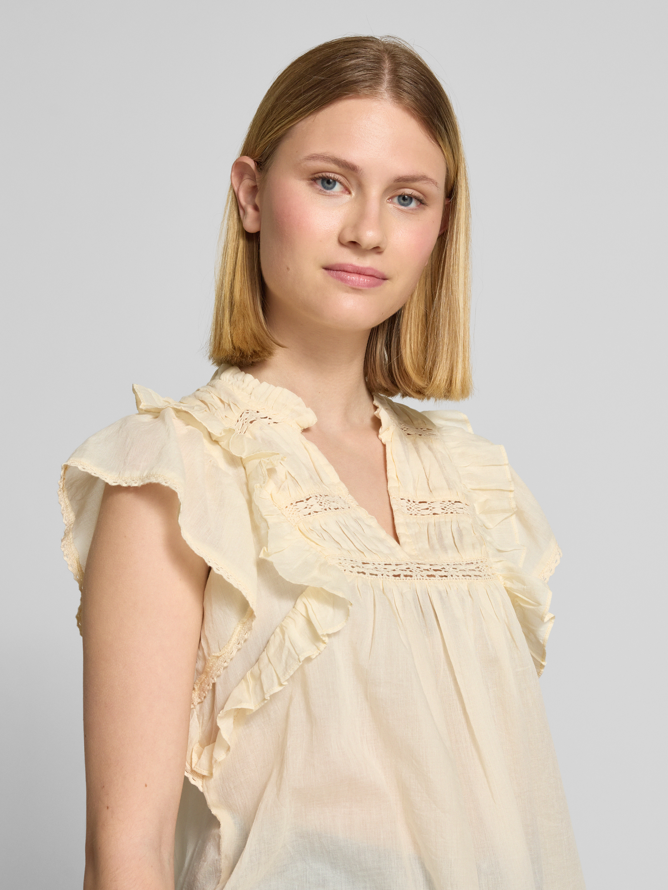 Neo NoirRegular Fit Blusentop mit Kappärmeln Modell 'Jayla' in pastellgelb