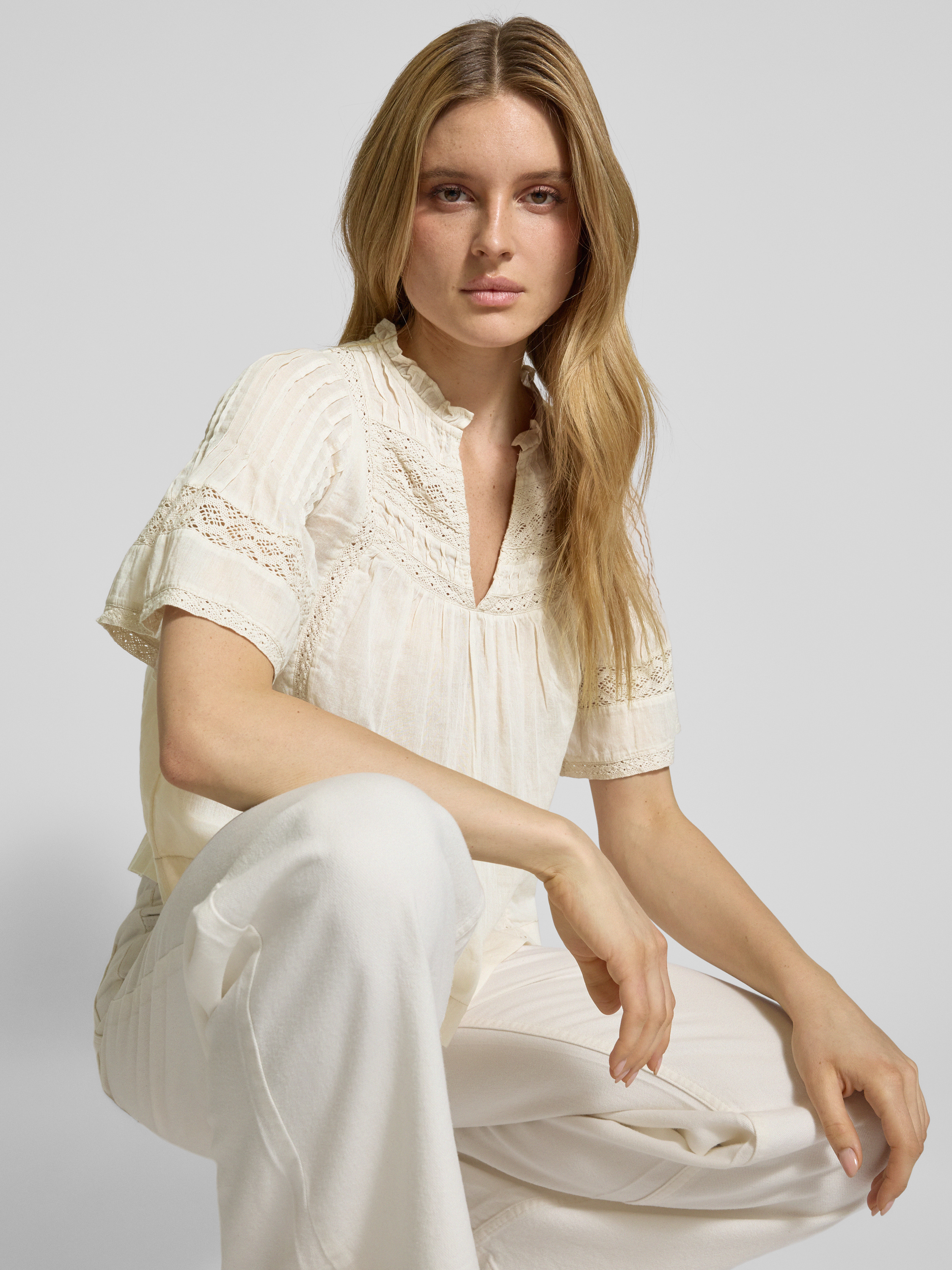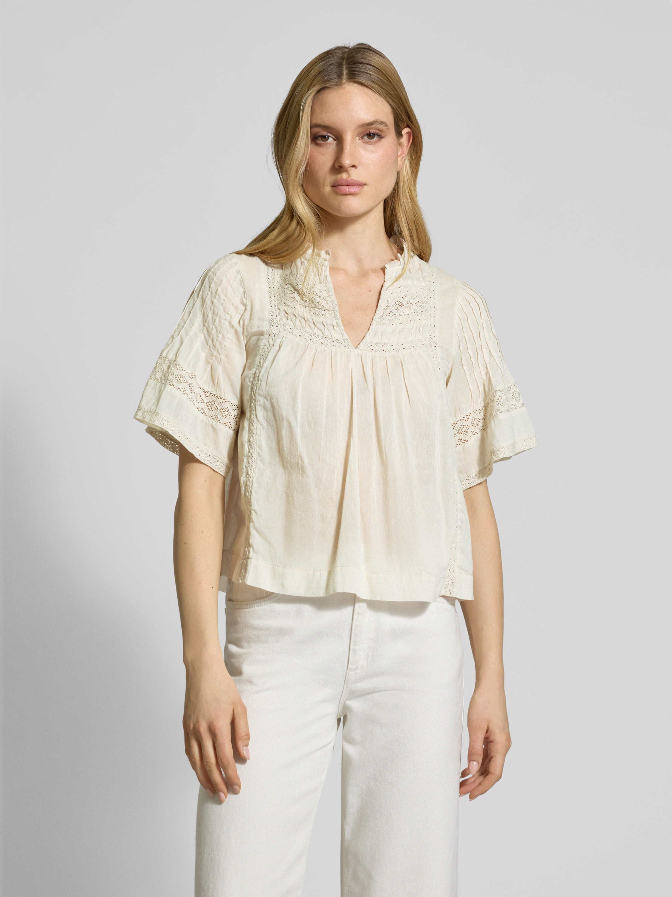 Neo NoirRelaxed Fit Bluse mit Häkelspitze Modell 'Siama' in beige