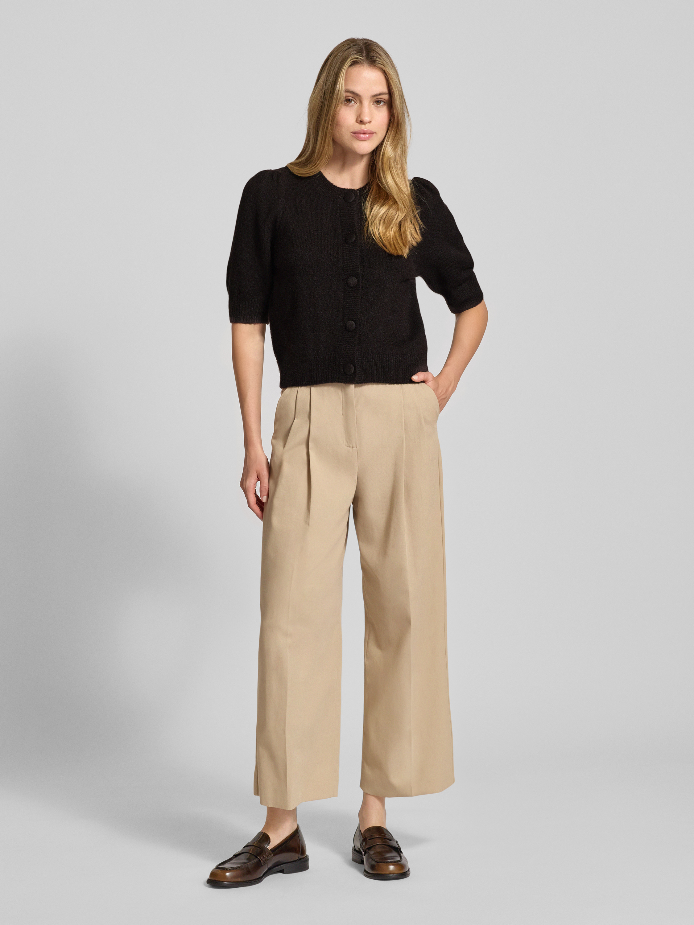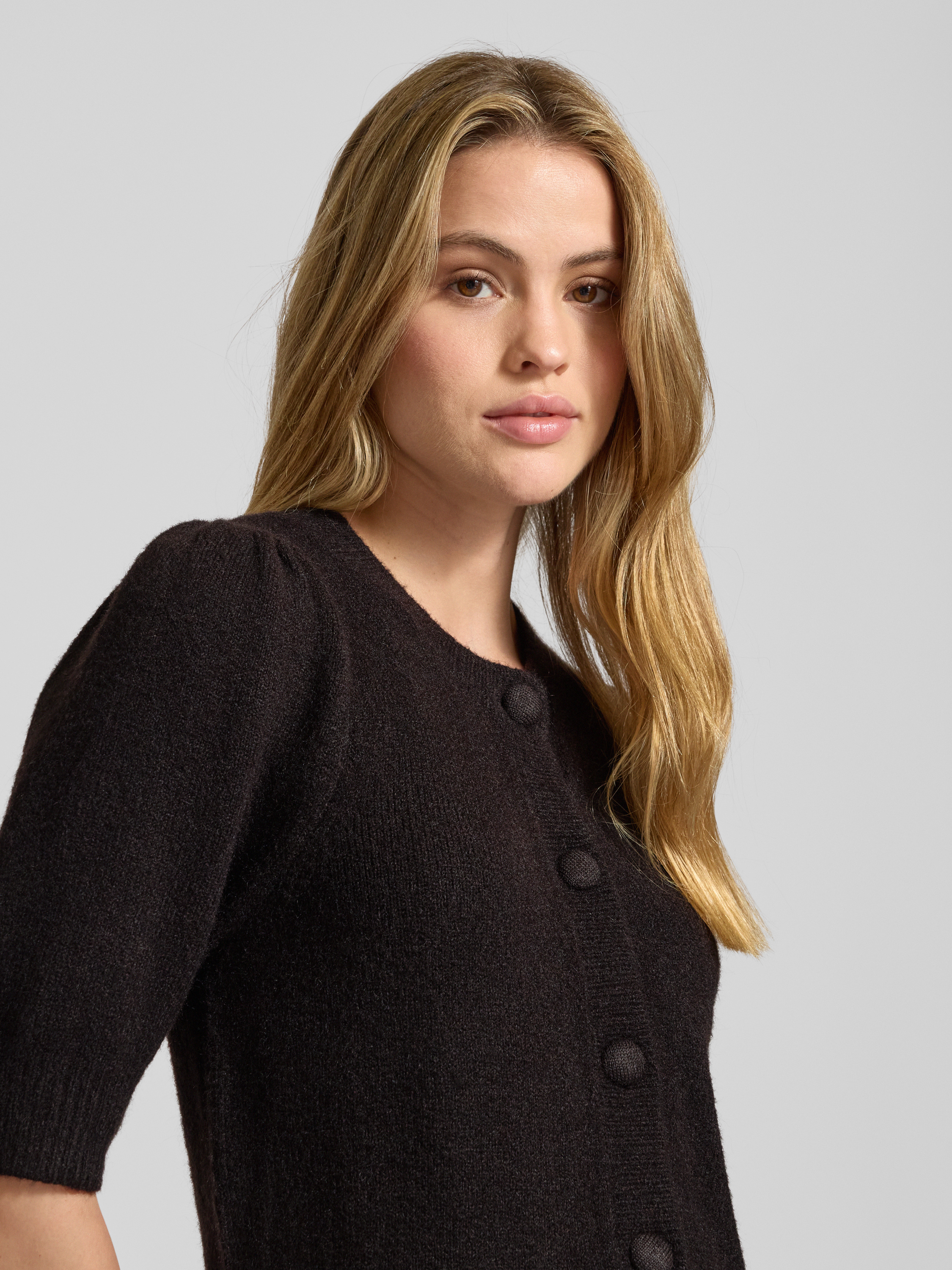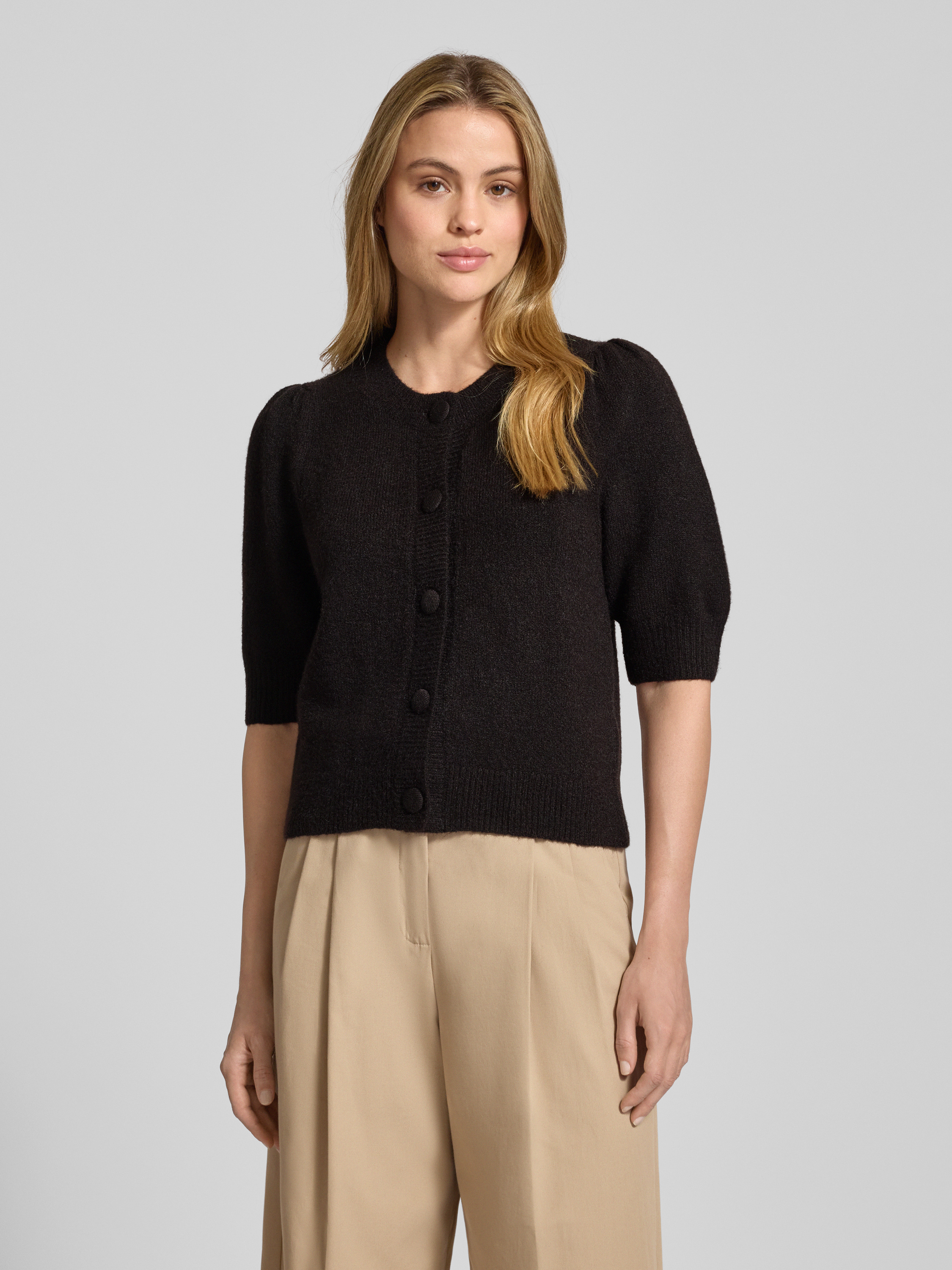 Der Strickcardigan Trudy von Neo Noir verbindet einen legeren Schnitt mit einem angenehmen Material-Mix samt Woll-Anteil. Der halblange Arm und der klassische Rundhalsausschnitt ermöglichen zahlreiche Kombinationsmöglichkeiten, während die durchgehende Knopfleiste einen schlichten Akzent setzt. So entsteht ein vielseitiges Kleidungsstück für den Alltag.