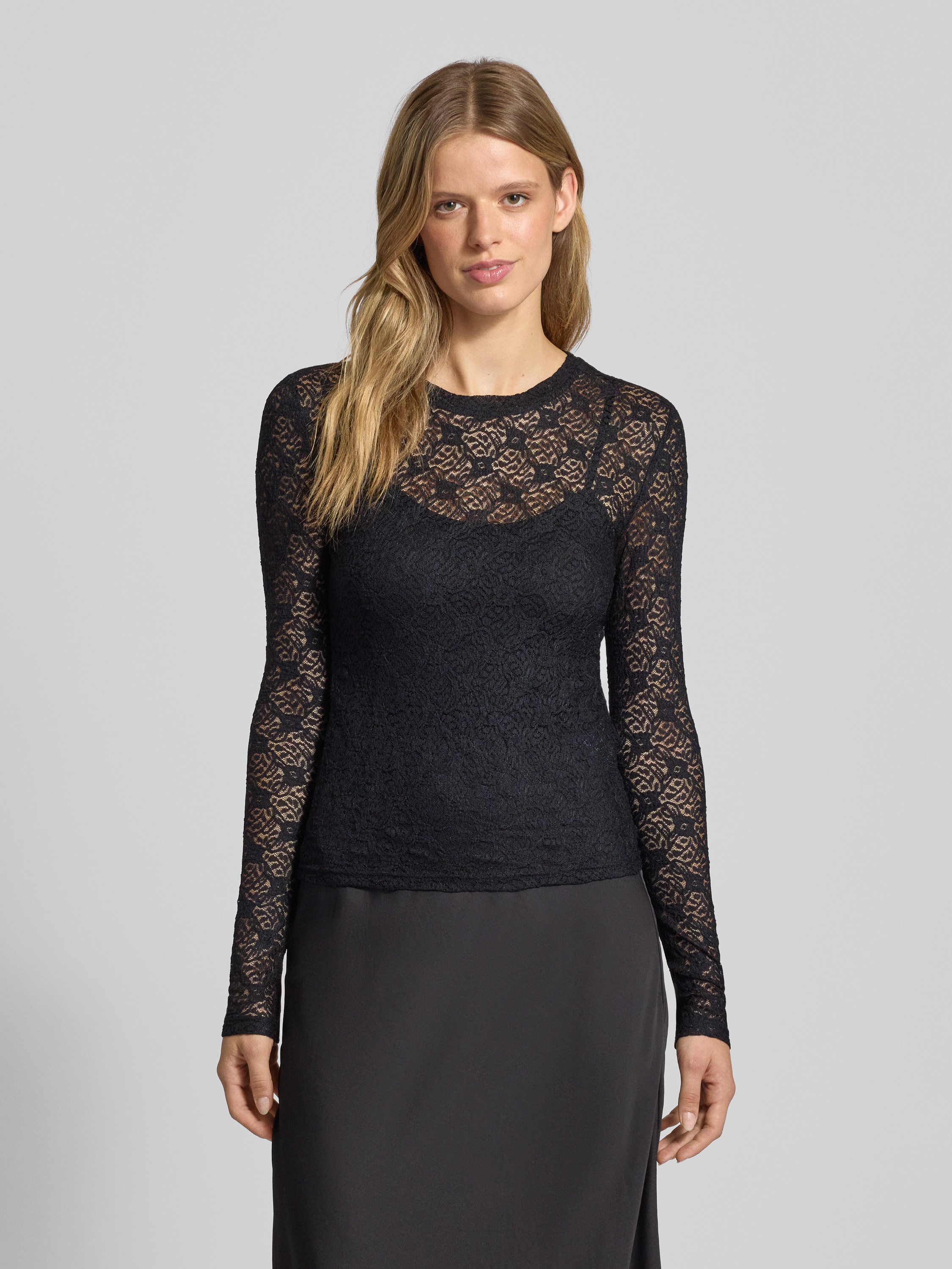Das Longsleeve von Noisy May, Modell 'JUDITH', schmiegt sich durch den Material-Mix mit Stretch-Anteil angenehm an und sorgt für Bewegungsfreiheit im Alltag. Die dezente Lochstickerei und die gerippten Abschlüsse verleihen dem Slim-Fit eine moderne Ausstrahlung. Ein Rundhalsausschnitt ergänzt das durchdachte Design.