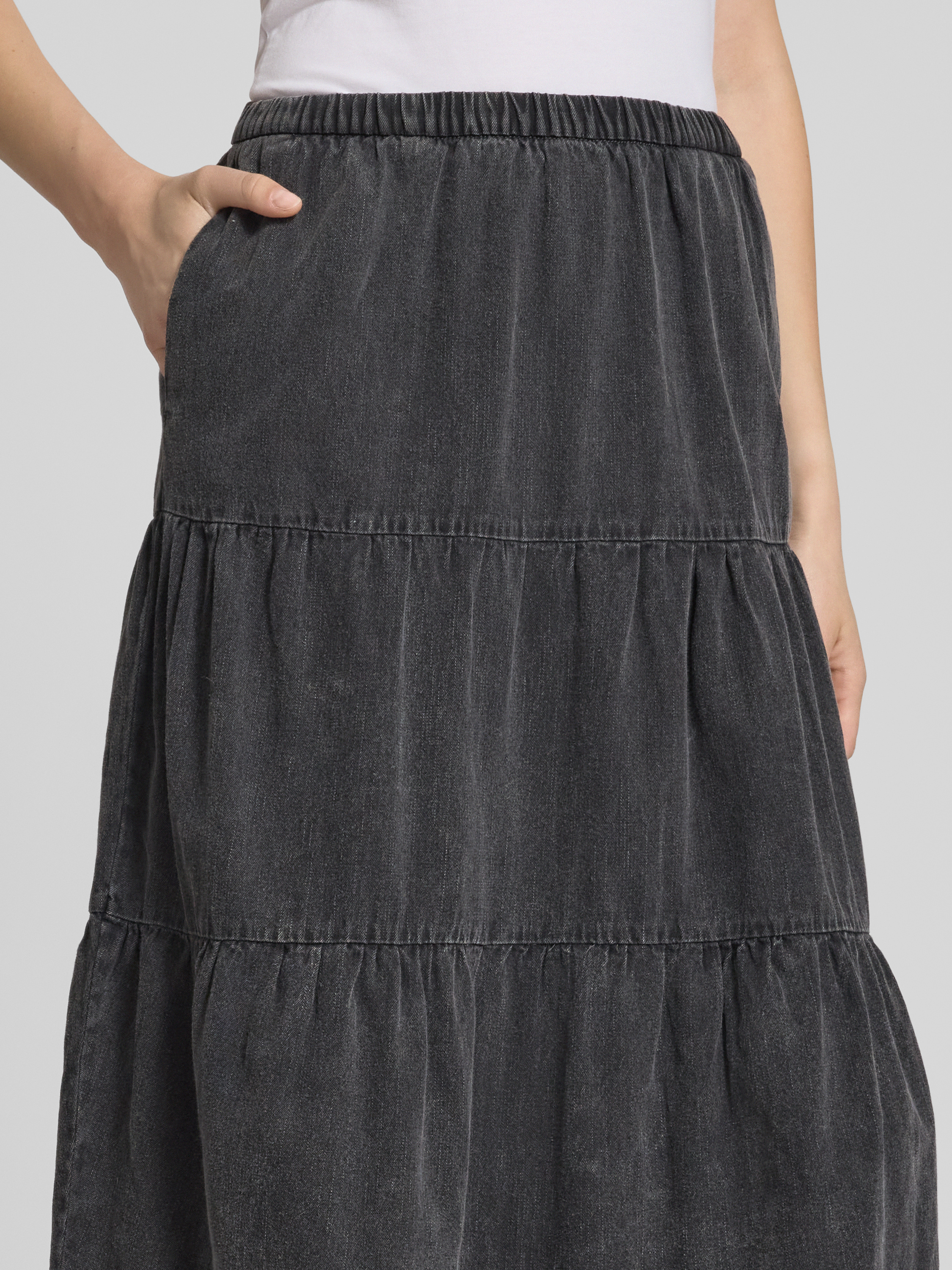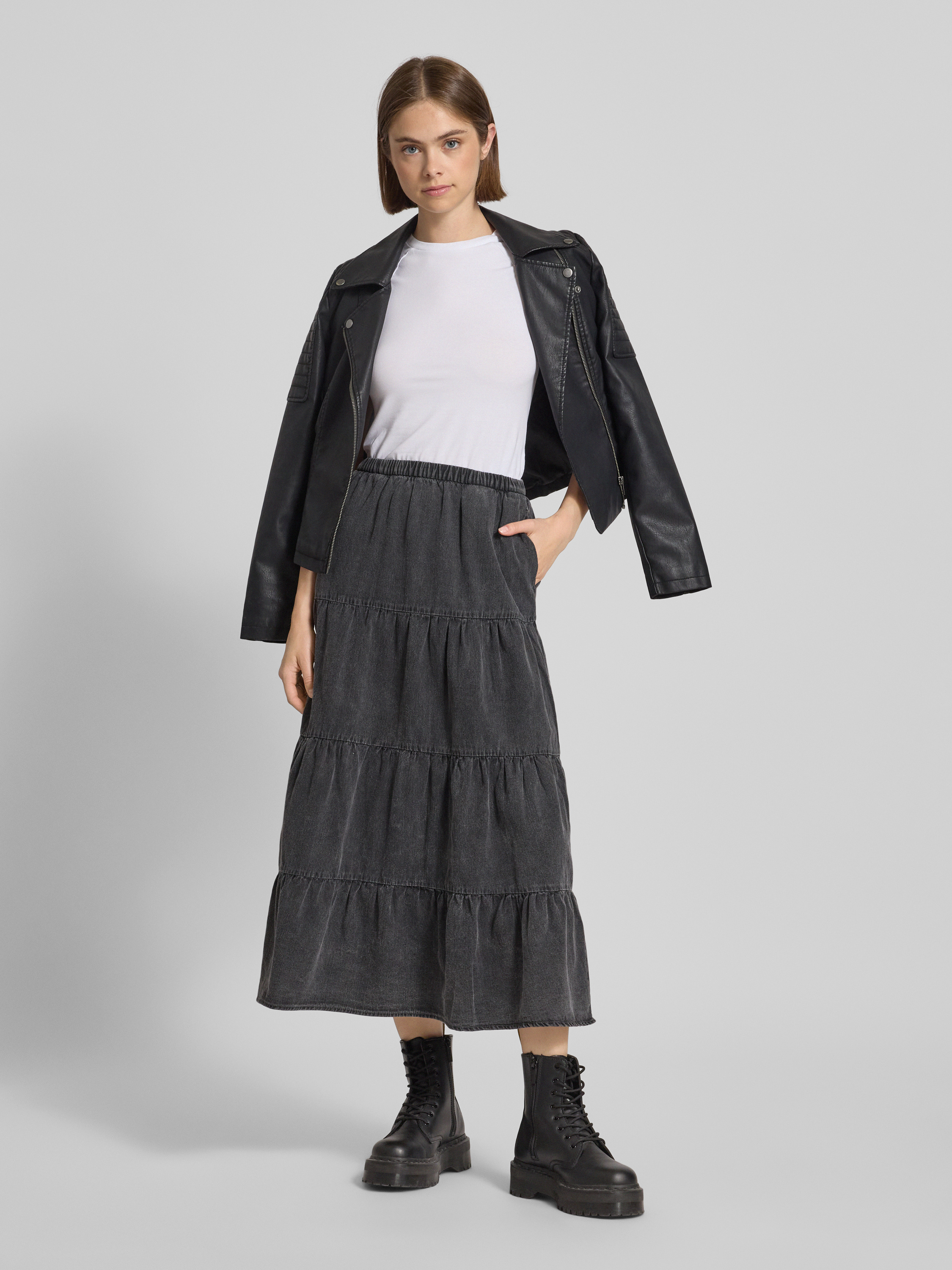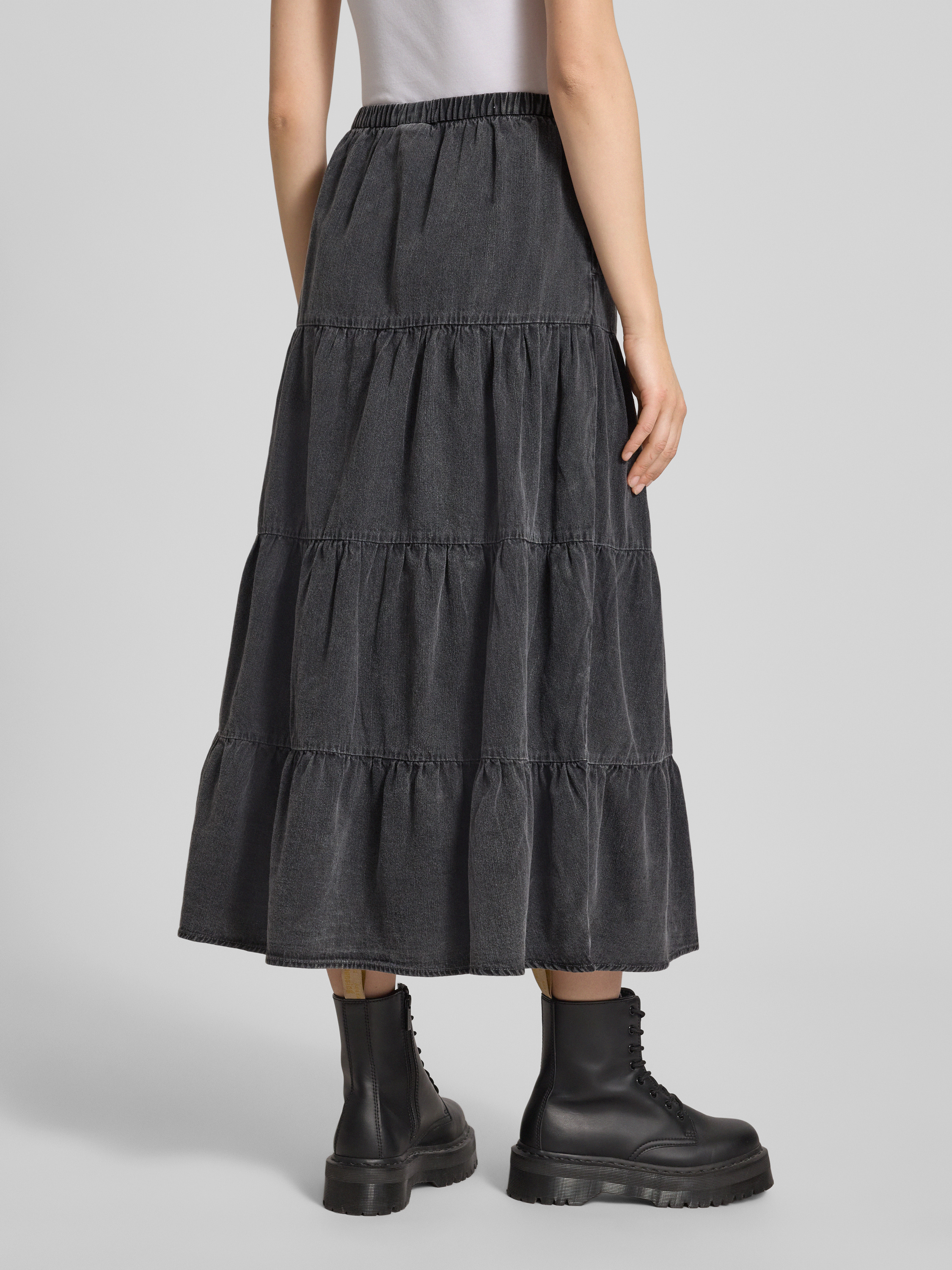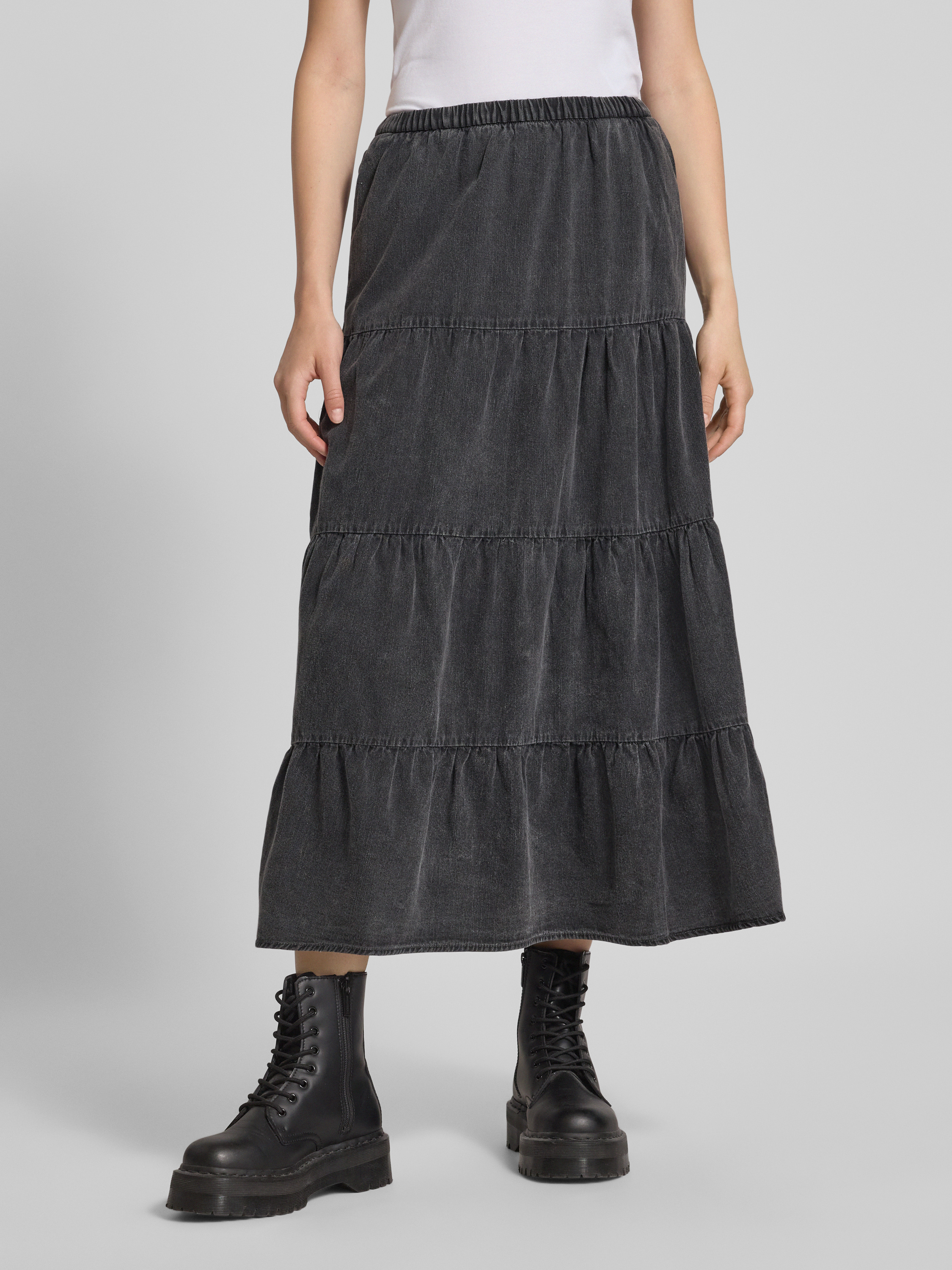 Der Damen Midirock von Noisy May im Modell 'OREGON' zeichnet sich durch seine reine Baumwollqualität aus, die ein angenehmes Tragegefühl vermittelt. Der Stufen-Look kombiniert mit einer A-Linie sorgt für eine fließende Silhouette, die vielseitig kombinierbar ist. Ideal für entspannte oder formelle Anlässe.