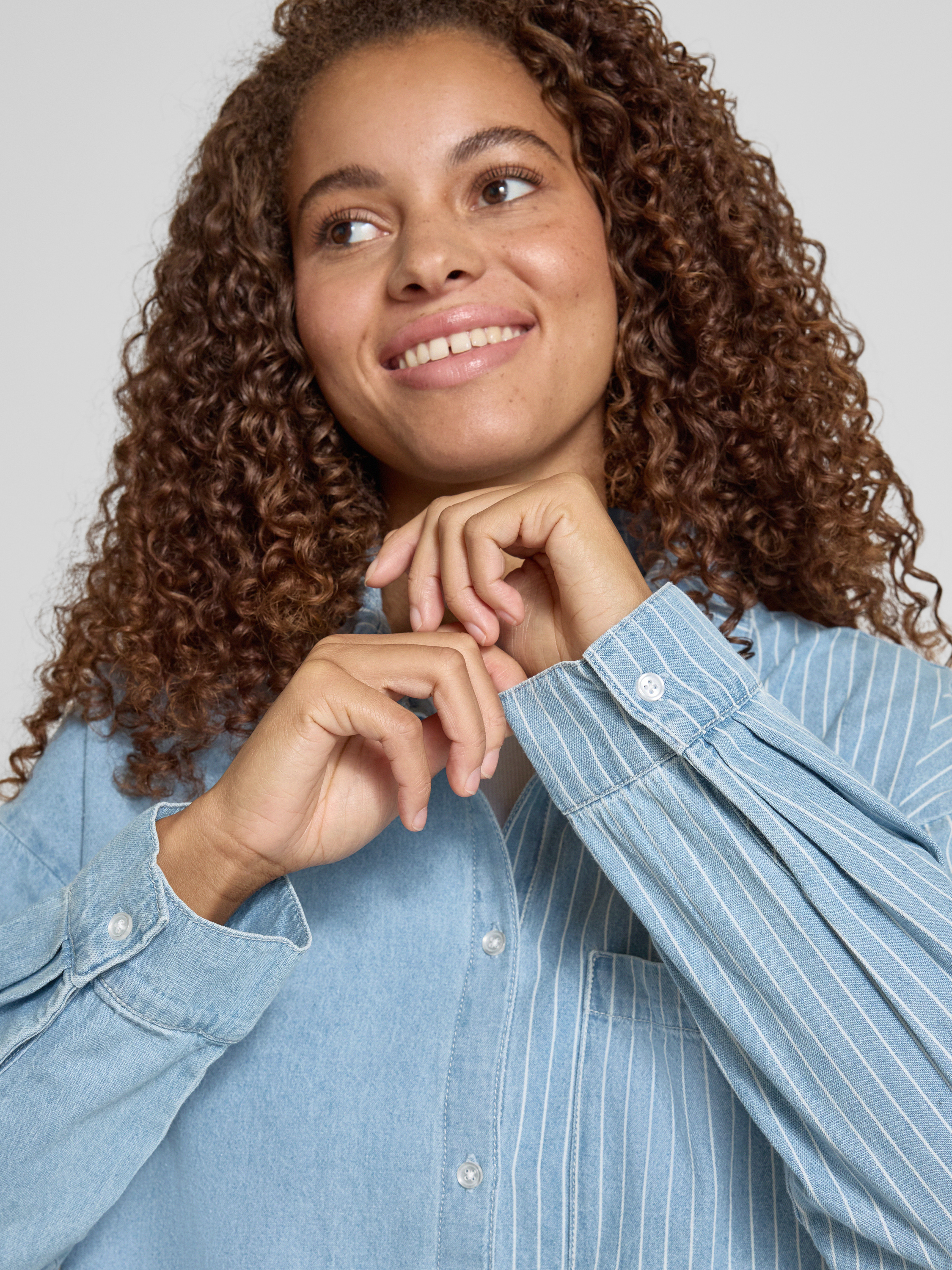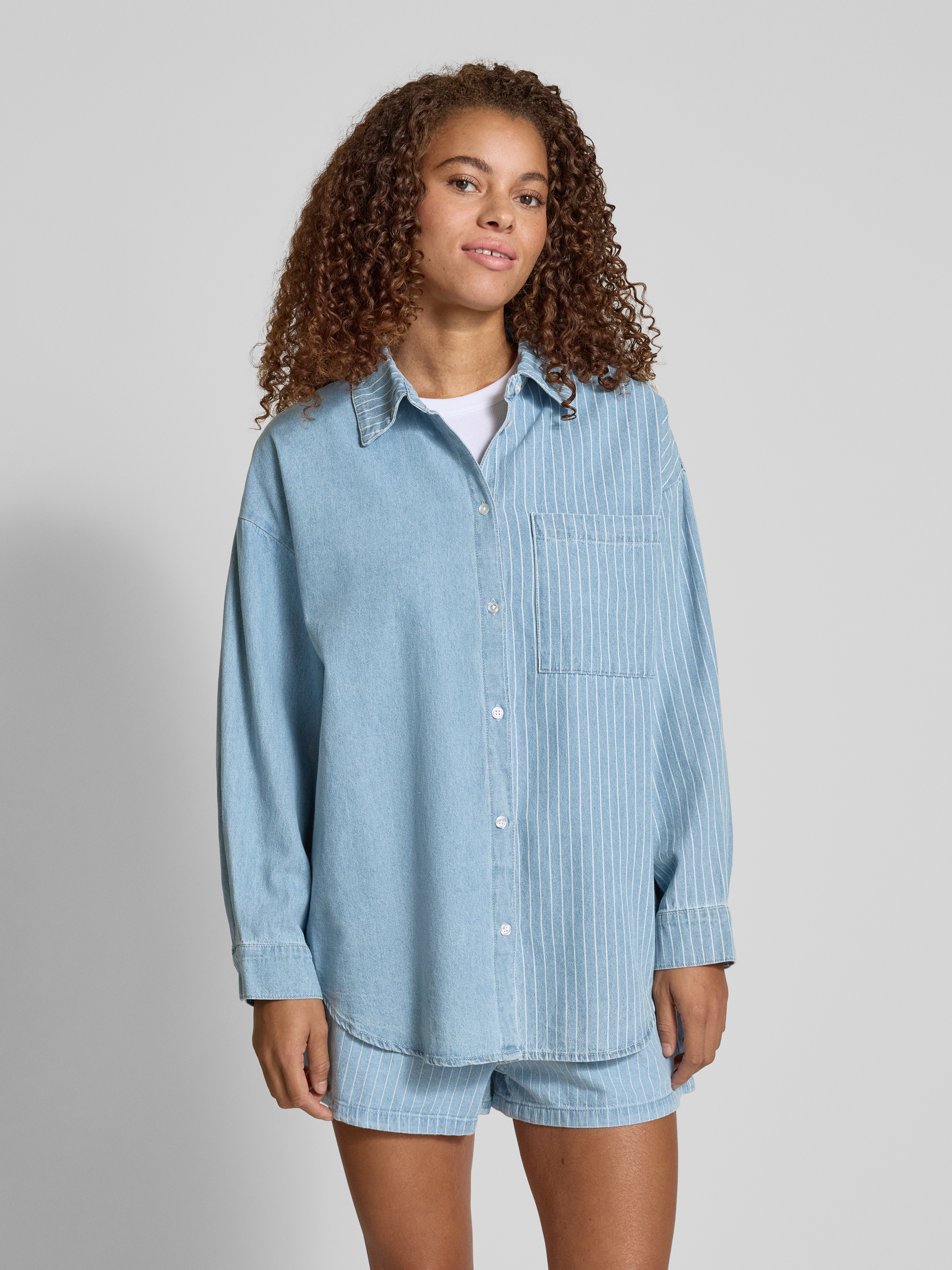 Noisy MayOversized Jeansbluse mit Brusttasche Modell 'KATRI' in hellblau