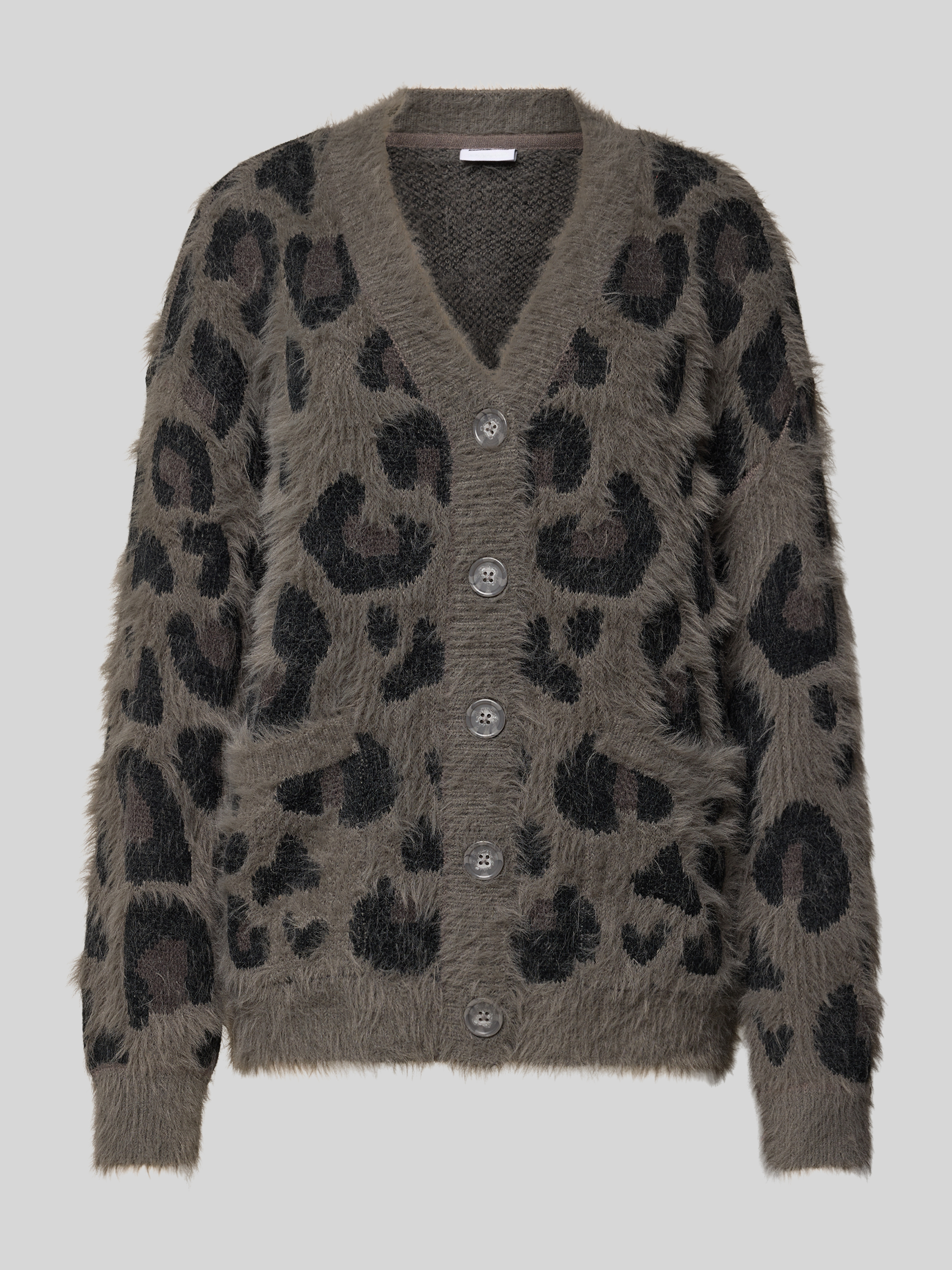 • Noisy May Strickjacke mit Kunstfellbesatz Modell 'FLYNN' Mittelbraun Mel