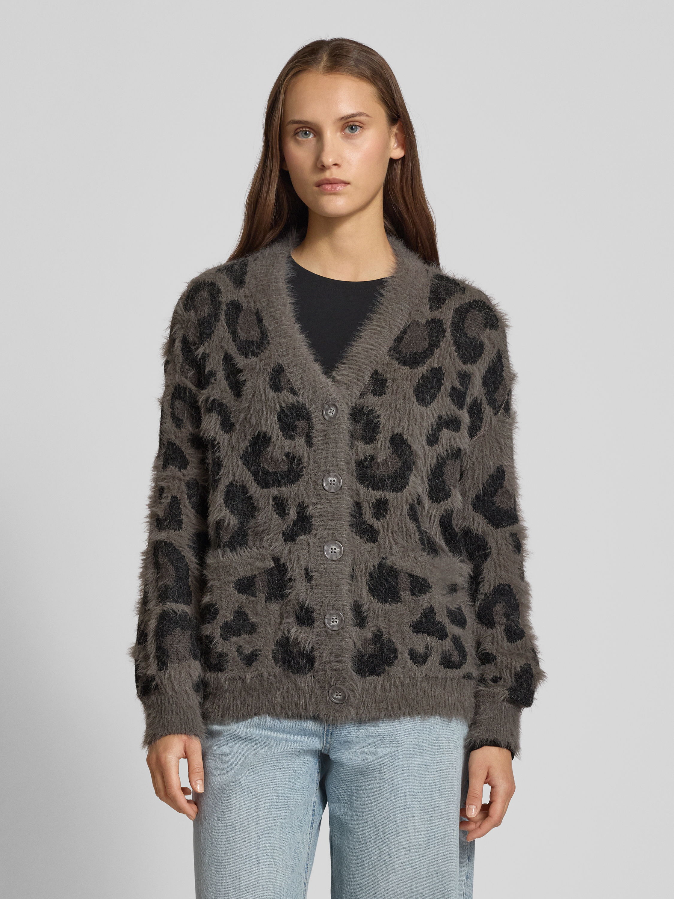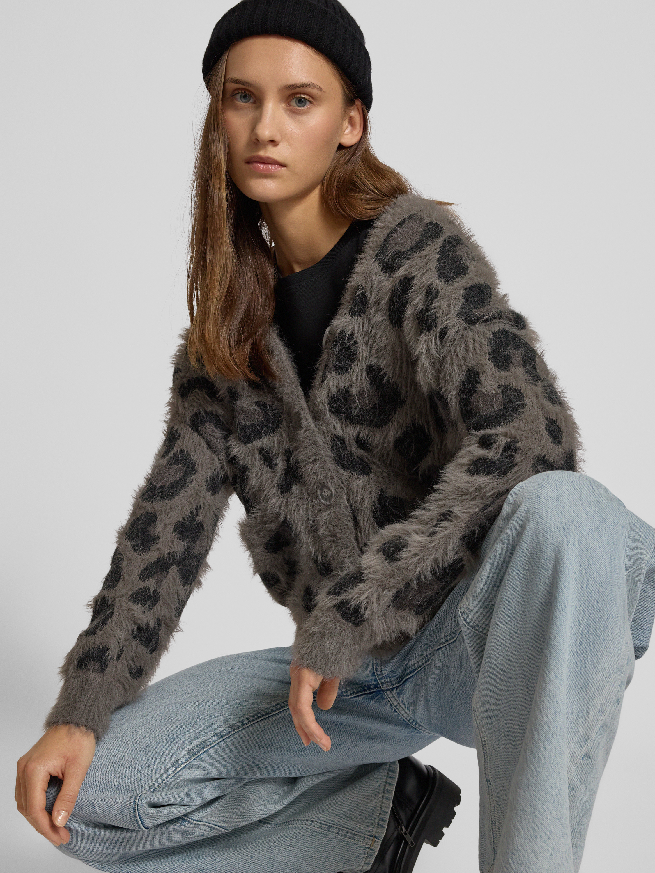 Noisy MayStrickjacke mit Kunstfellbesatz Modell 'FLYNN' in dunkelgrau melange