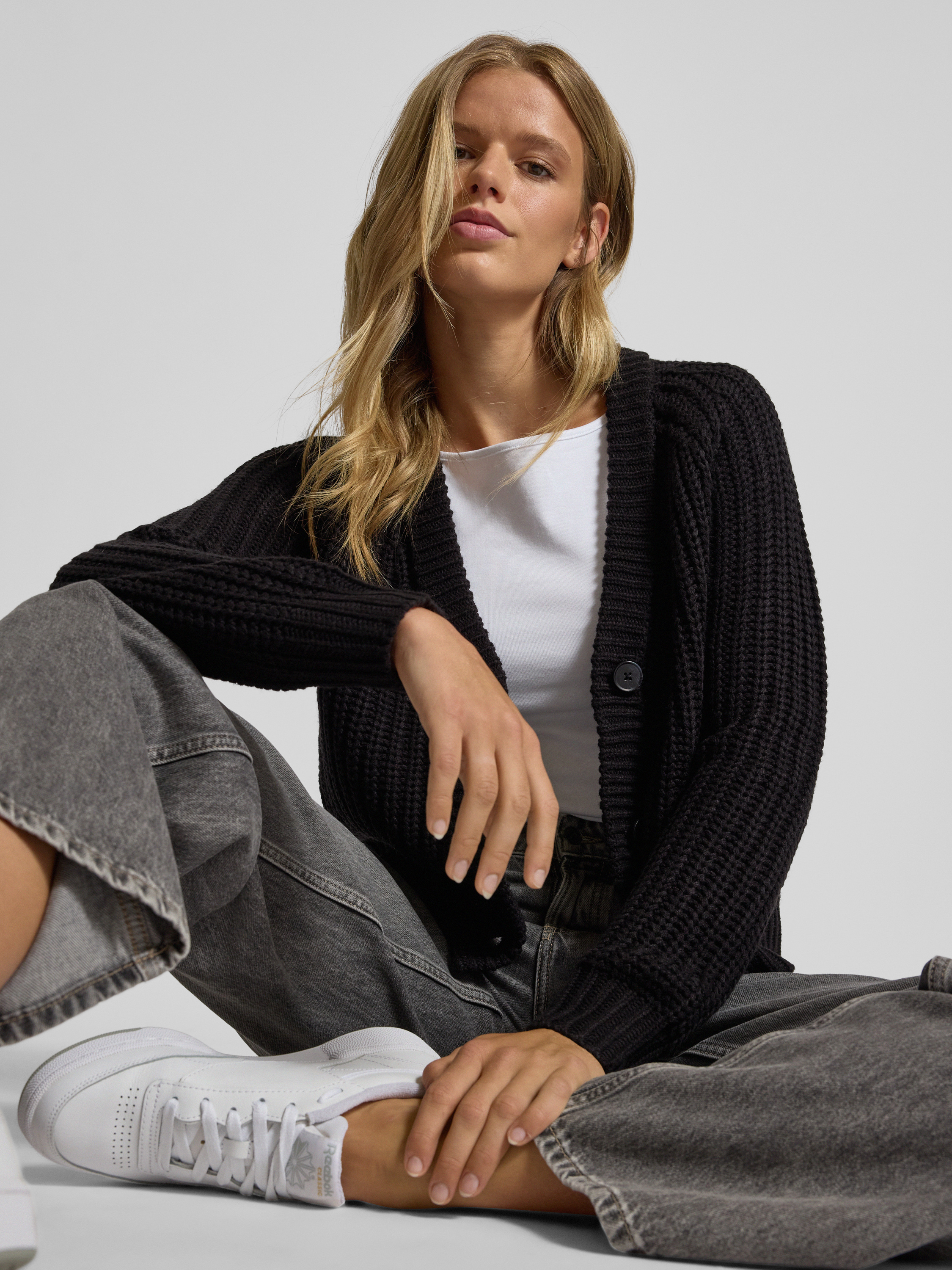 Die Damen Strickjacke von Noisy May zeigt sich im Modell 'CHARLIE' mit einem legeren, geraden Schnitt, der angenehm fällt. Durch den V-Ausschnitt entsteht ein lockerer Eindruck, der vielseitige Kombinationen ermöglicht. Mit ihrem klassischen Design eignet sich die Jacke für zahlreiche Gelegenheiten.