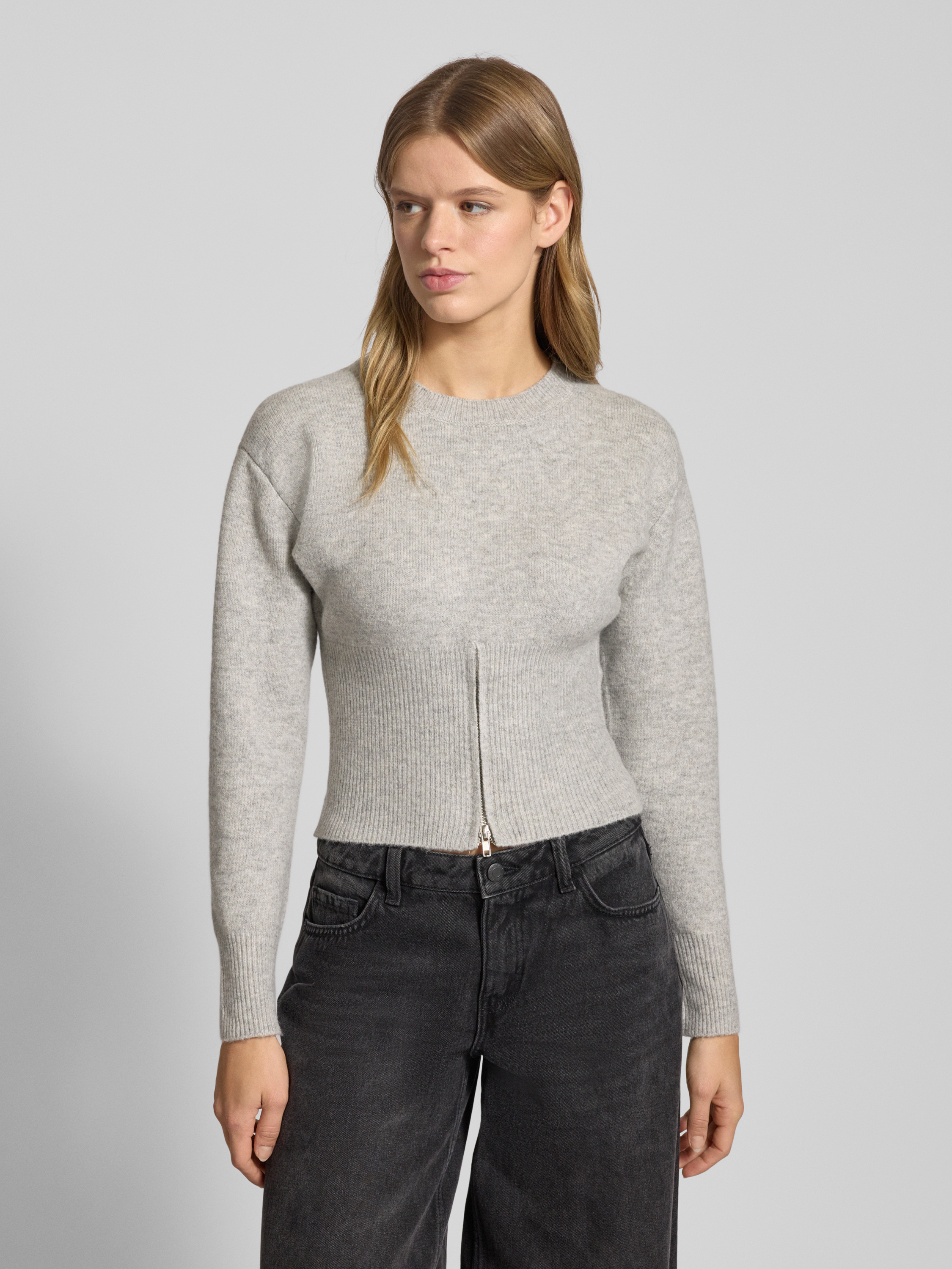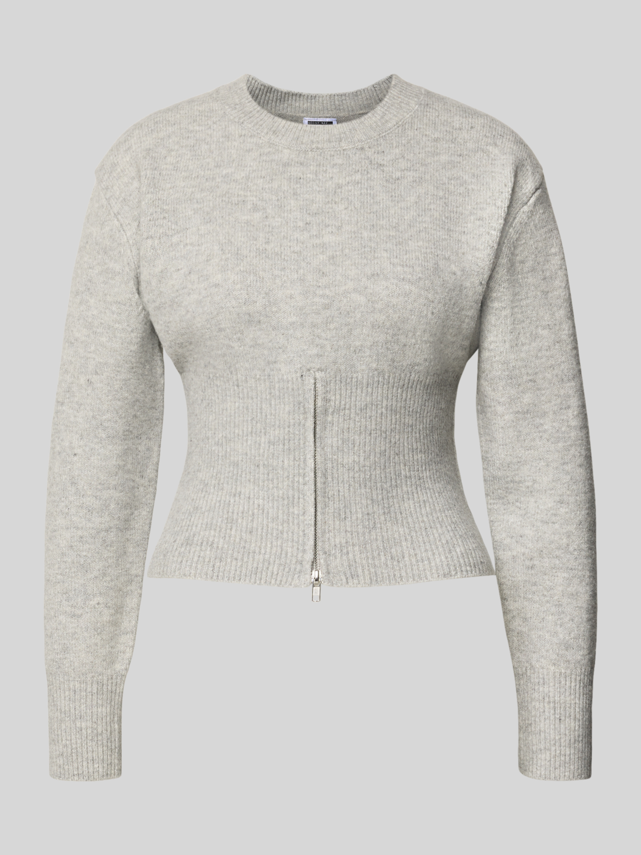 Noisy MayStrickpullover mit gerippten Abschlüssen Modell 'SLOAN' in hellgrau melange