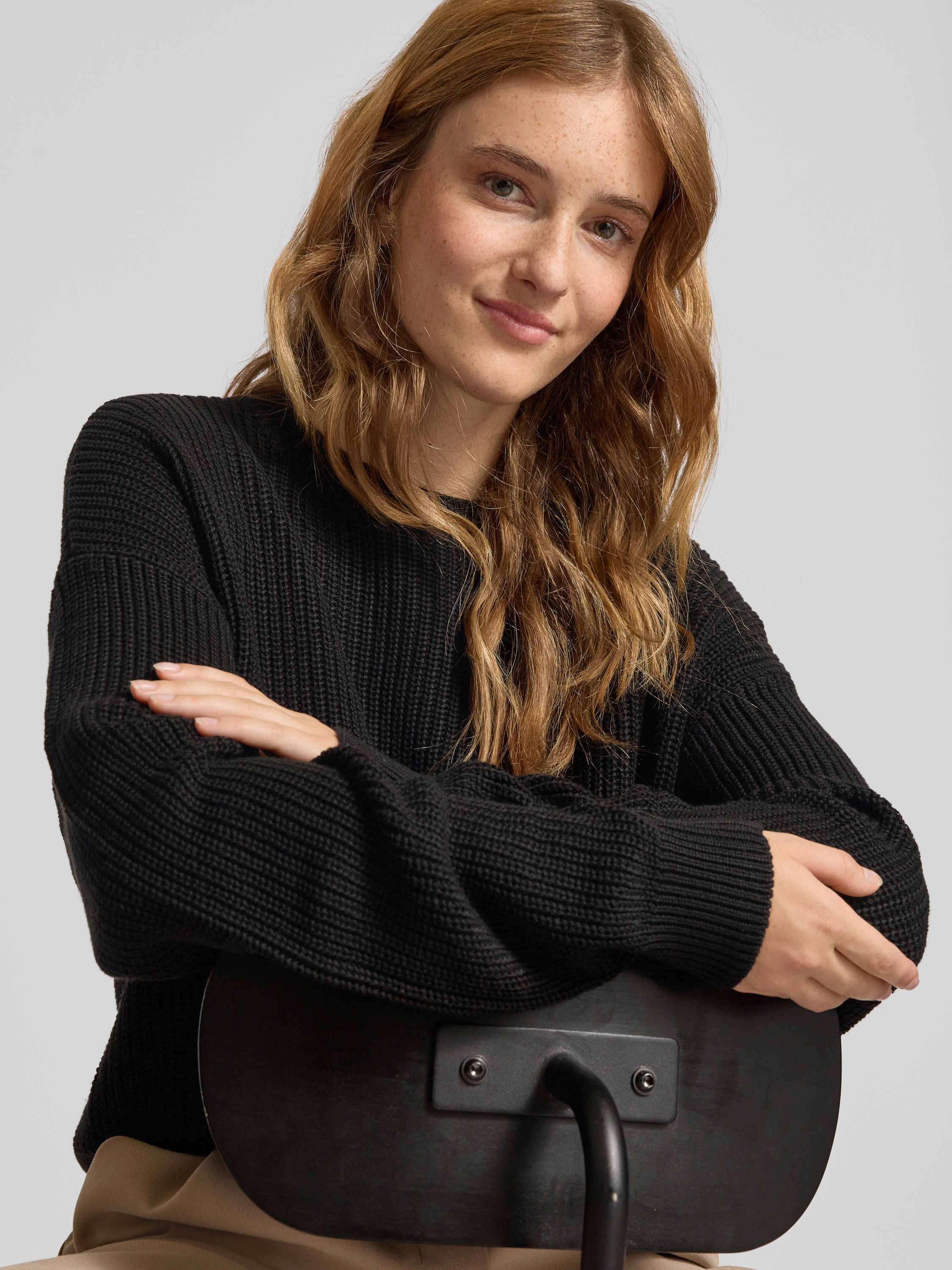 Strickpullover mit Rundhalsausschnitt Modell 'MAYSA' in black