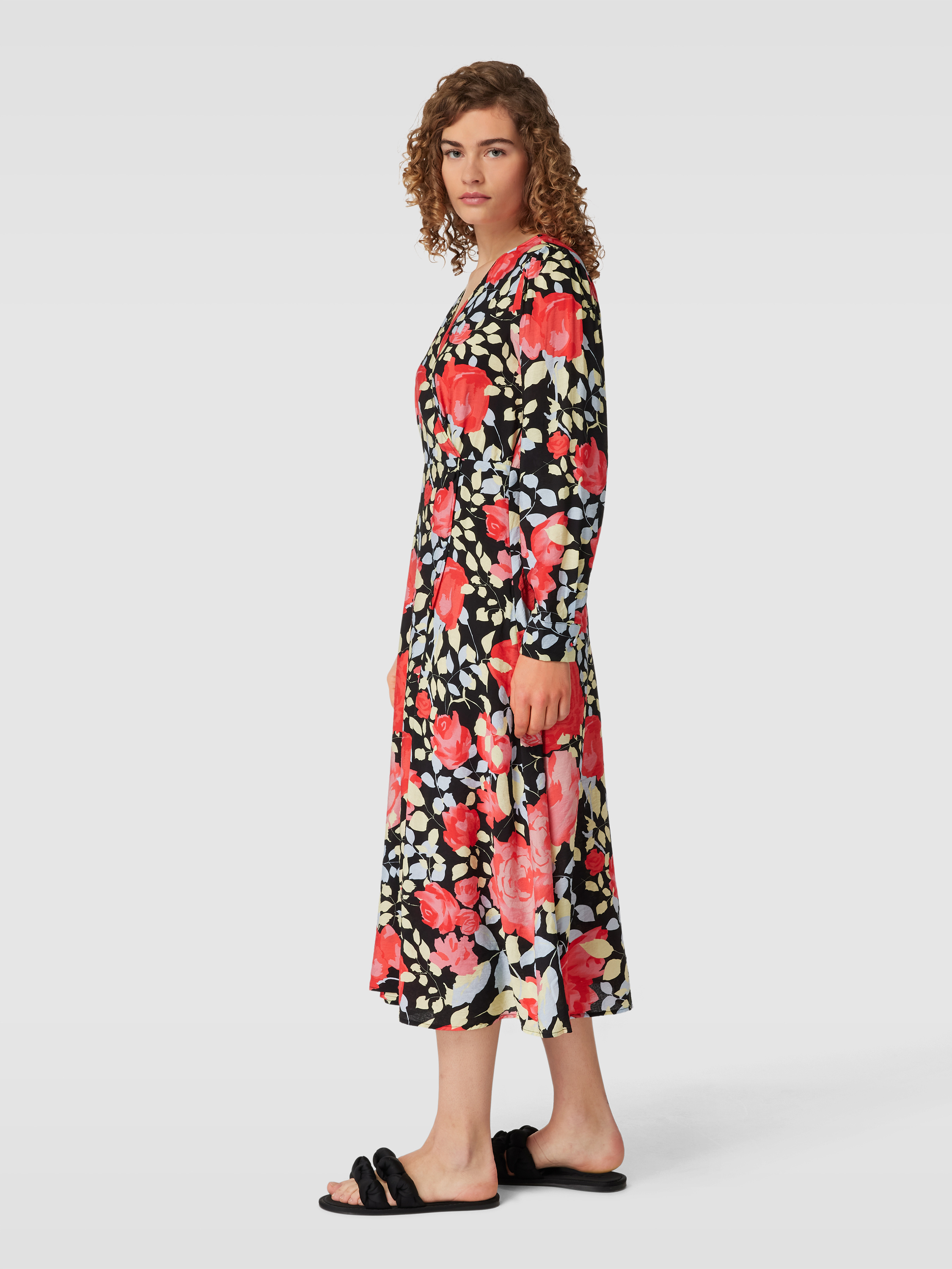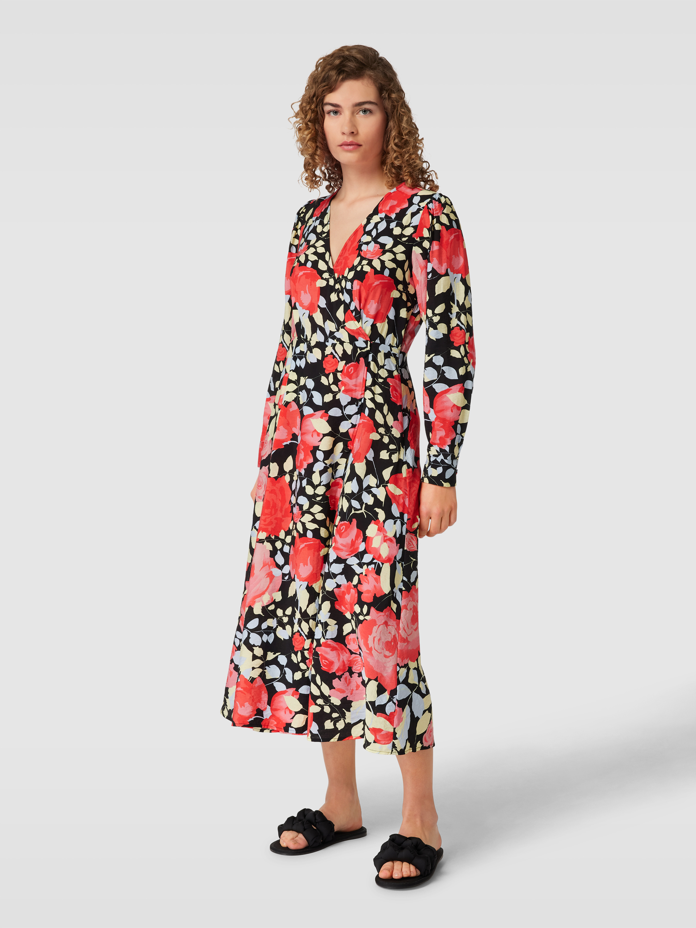 Das Midikleid 'Limone' von OBJECT vereint stilvolle Eleganz mit einem taillierten Schnitt, der die Figur vorteilhaft betont. Der fließende Viskose-Mix sorgt für ein angenehmes Tragegefühl, während die Wickel-Optik und das lebendige Allover-Muster dem Kleid eine besondere Raffinesse verleihen. Ein vielseitiges Kleidungsstück, das sich sowohl für den Alltag als auch für besondere Anlässe eignet.