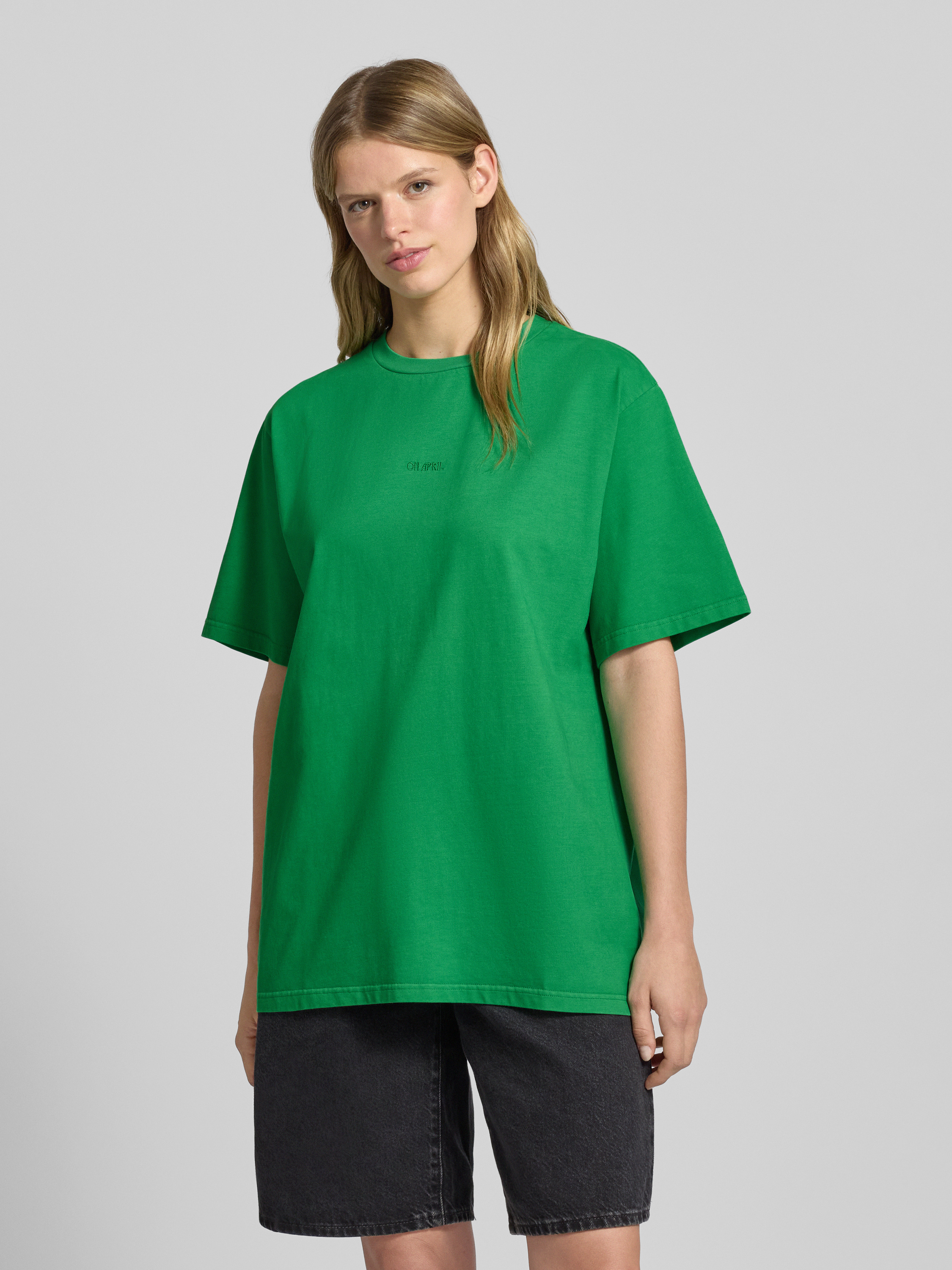 OH APRILT-Shirt mit Label-Stitching Modell 'Blooming Club' in gruen