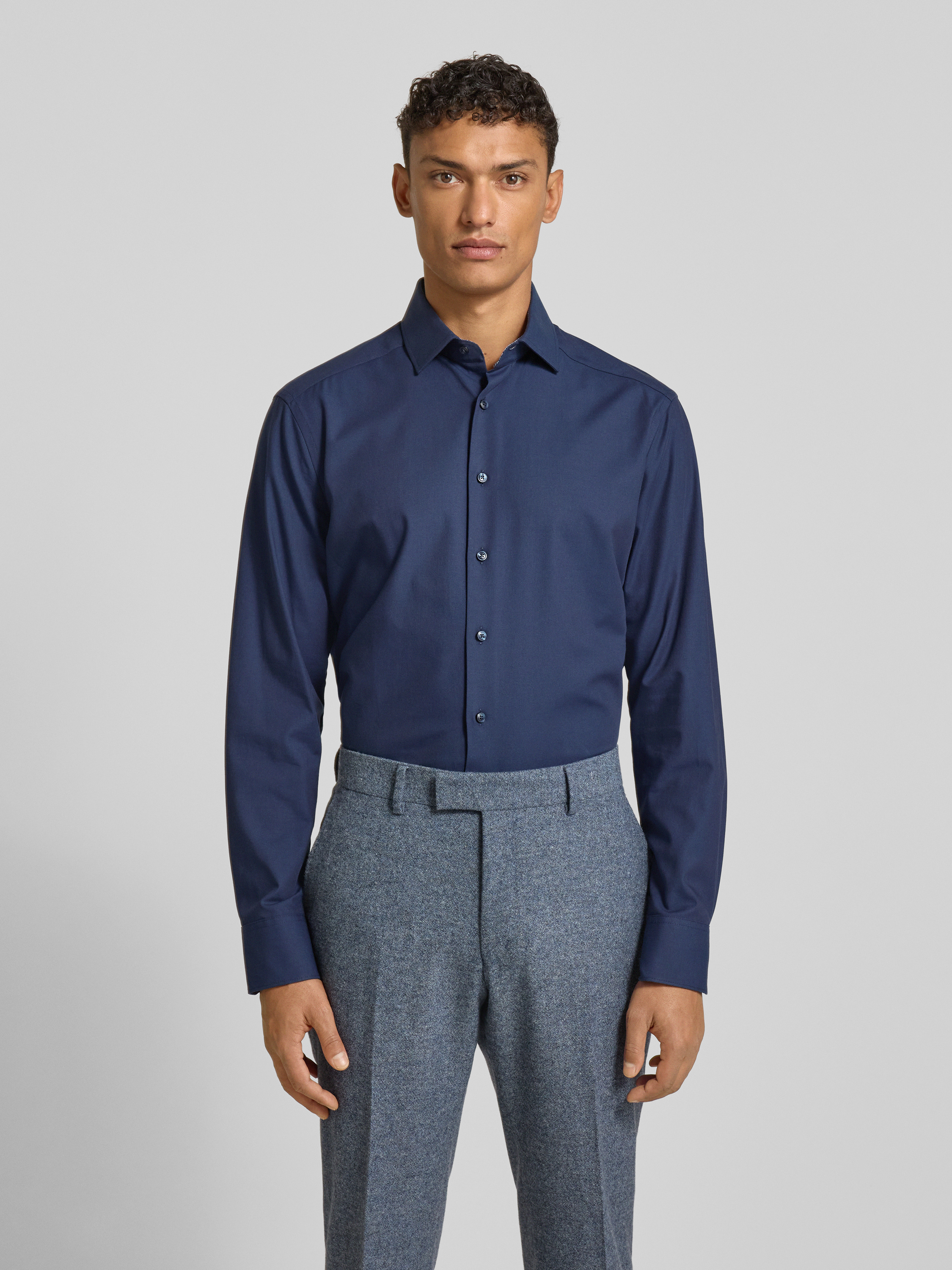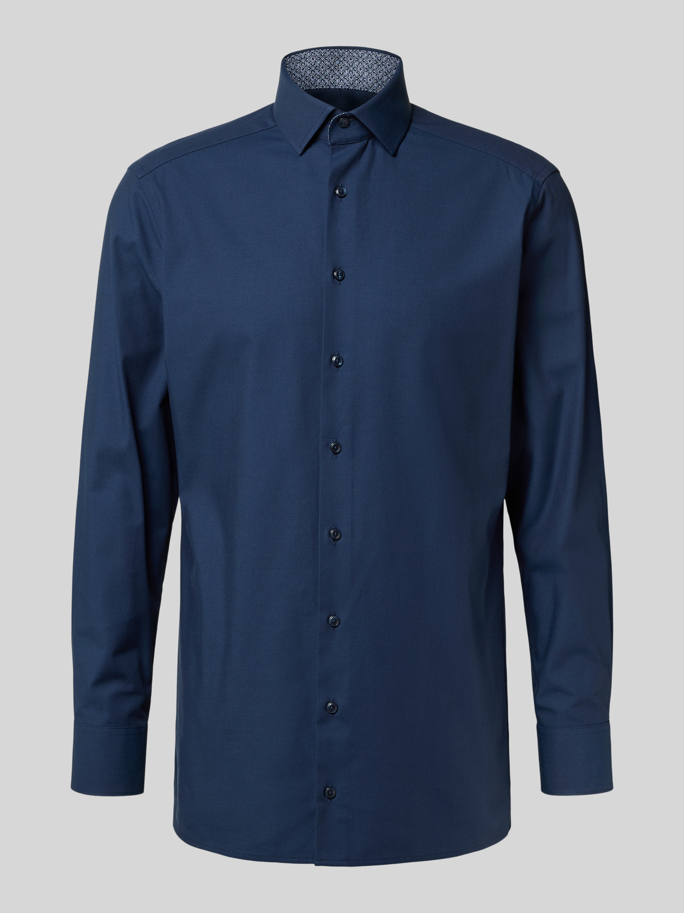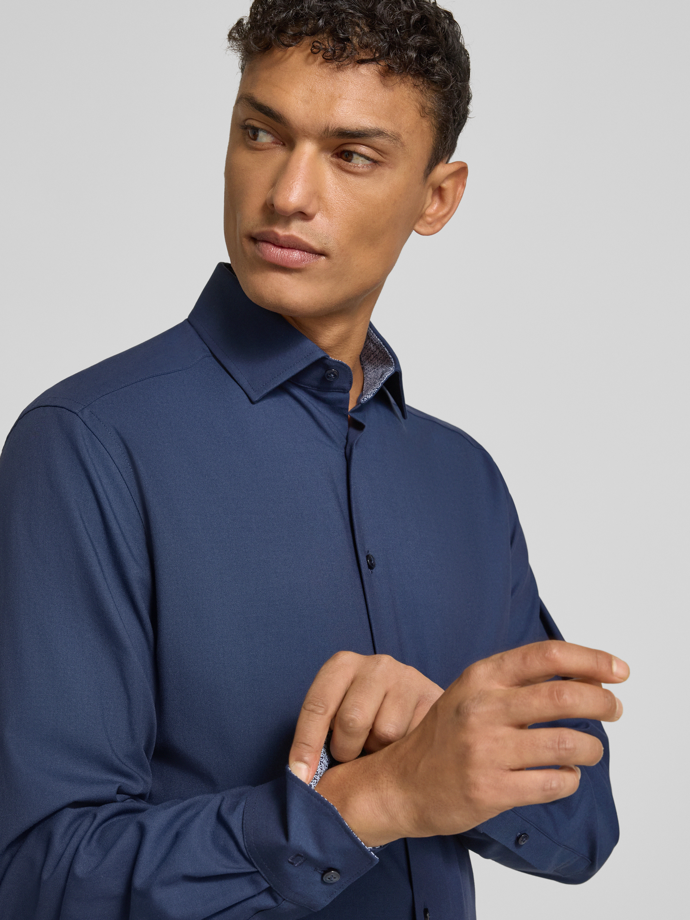 Das Herrenhemd Modern Fit von OLYMP verbindet einen gepflegten Kentkragen mit einem angenehmen Baumwoll-Mix, der durch den Stretch-Anteil Bewegungsfreiheit zulässt. Die sportlichen Manschetten setzen einen dezenten Akzent, während der Schnitt eine schlanke Silhouette unterstützt. So eignet sich das Hemd vielseitig für den Arbeitsalltag.