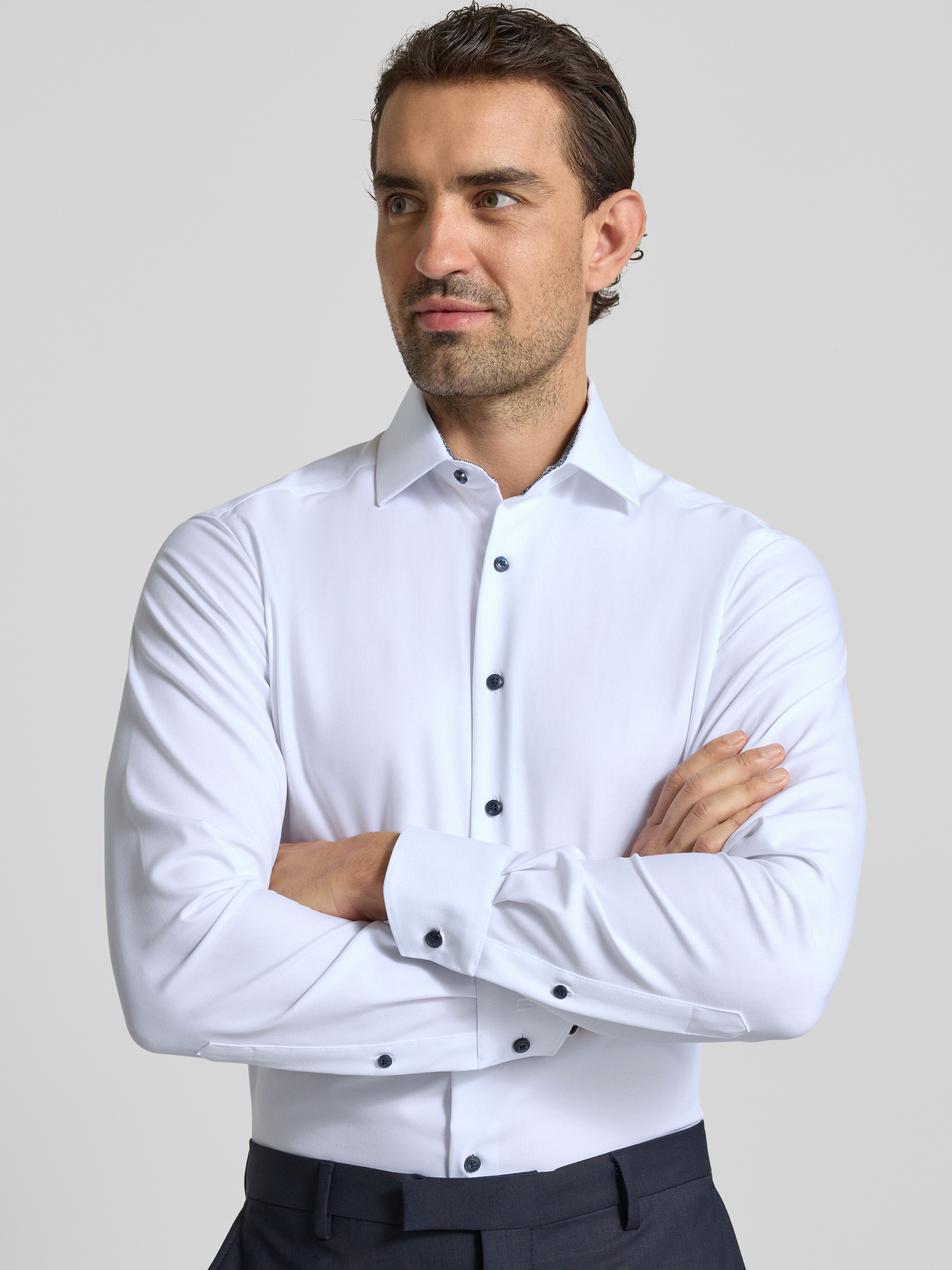 Das Herrenhemd Modern Fit von OLYMP verbindet einen gepflegten Kentkragen mit einem angenehmen Baumwoll-Mix, der durch den Stretch-Anteil Bewegungsfreiheit zulässt. Die sportlichen Manschetten setzen einen dezenten Akzent, während der Schnitt eine schlanke Silhouette unterstützt. So eignet sich das Hemd vielseitig für den Arbeitsalltag.