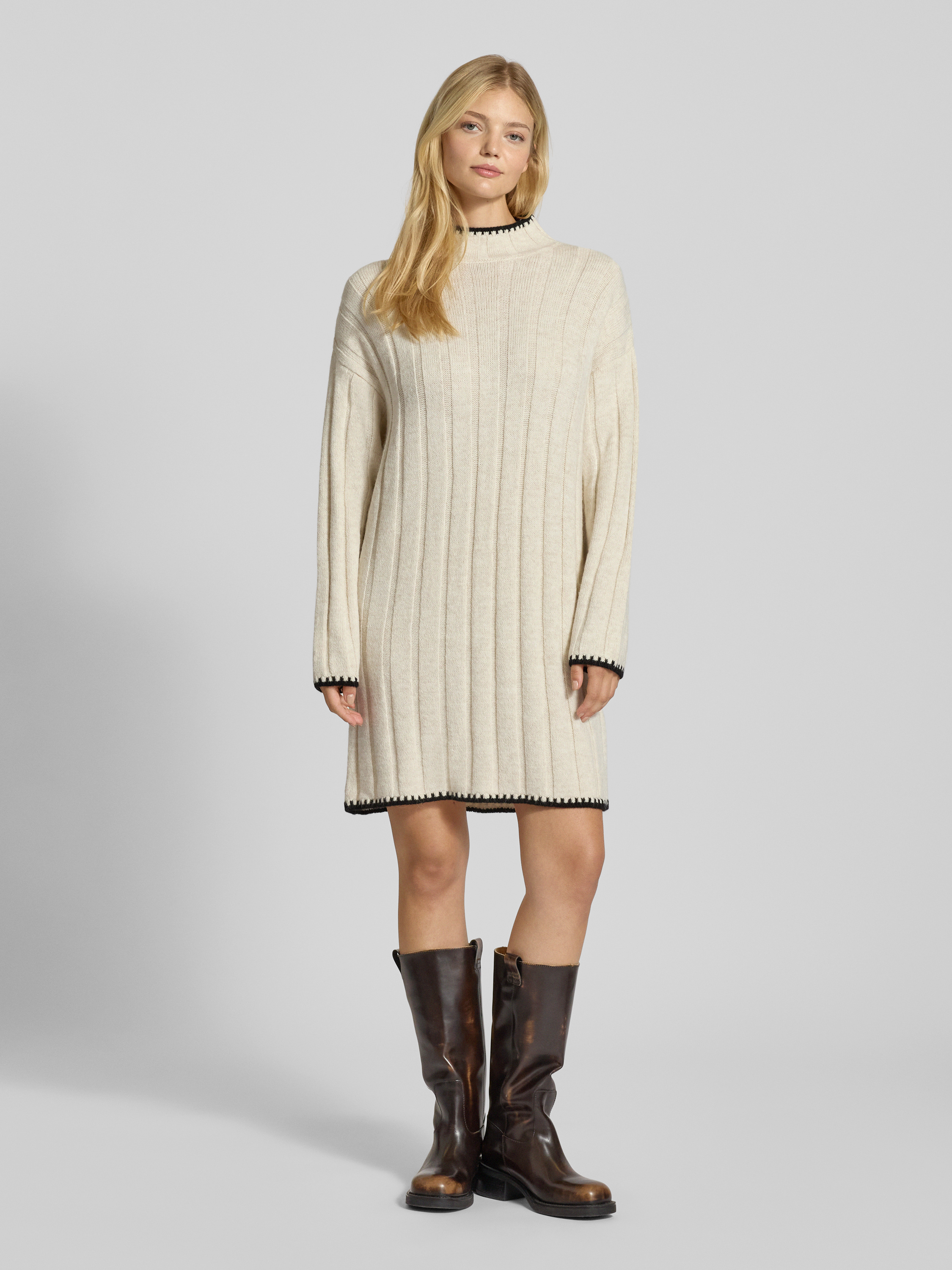 Das Damen-Strickkleid von Only, Modell 'Chick', setzt mit seiner unifarbenen Optik und auffälligen Kontrastdetails dezente Akzente. Der Comfort Fit sorgt gemeinsam mit dem Stehkragen und den langen Ärmeln für angenehmen Tragekomfort. Dank der Mini-Länge eignet sich das Kleid besonders für vielseitige Kombinationen.