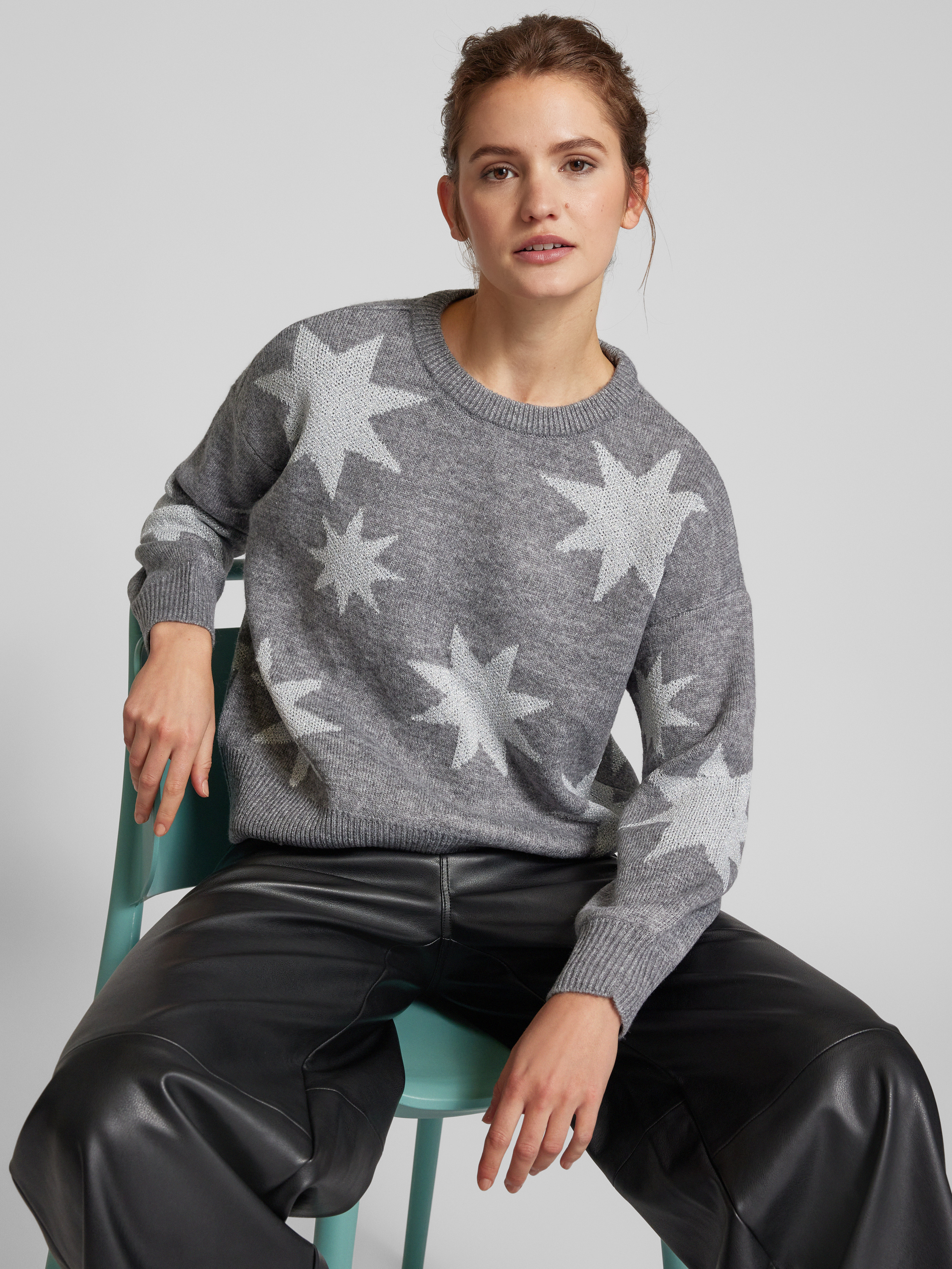 Der Damen-Strickpullover von Only, Modell 'Rosie', kombiniert ein ansprechendes Allover-Sternenmuster mit einer komfortablen Passform. Der Polyacryl-Mix sorgt für angenehmen Tragekomfort und das Effektgarn verleiht dem Pullover eine besondere Note. Lange Ärmel und ein gerippter Crew-Neck runden das Design harmonisch ab.