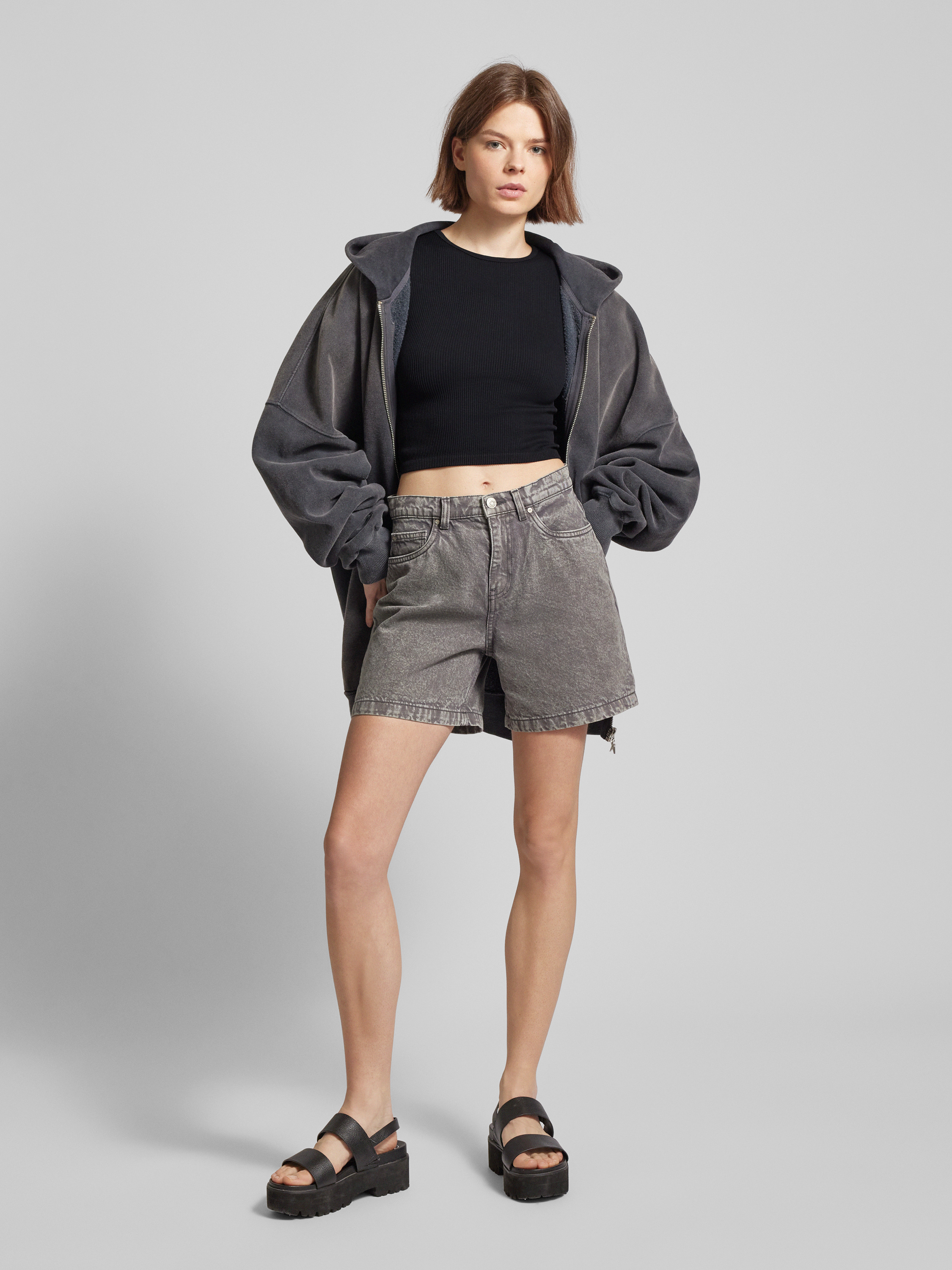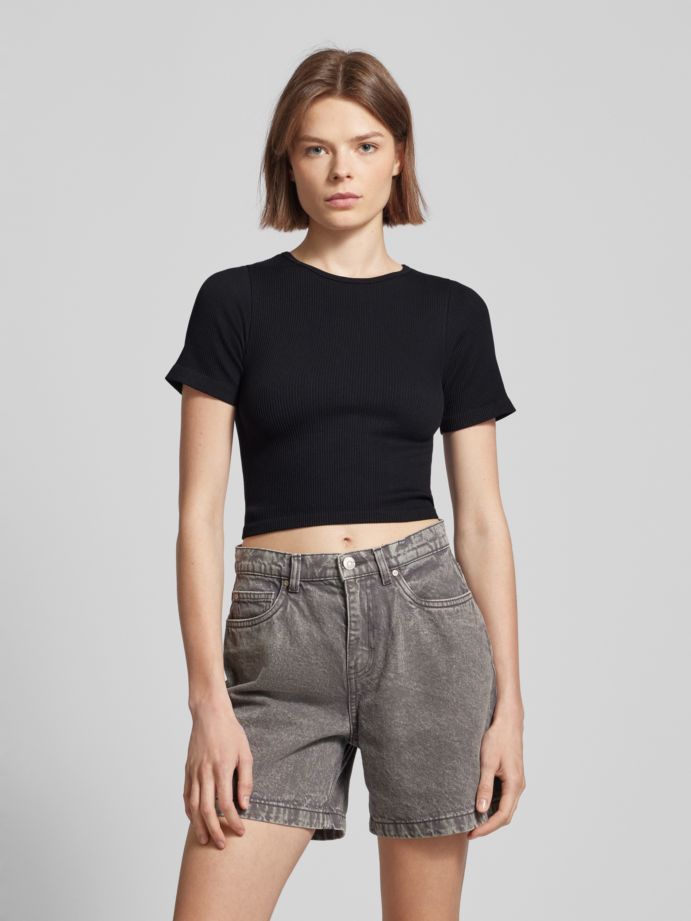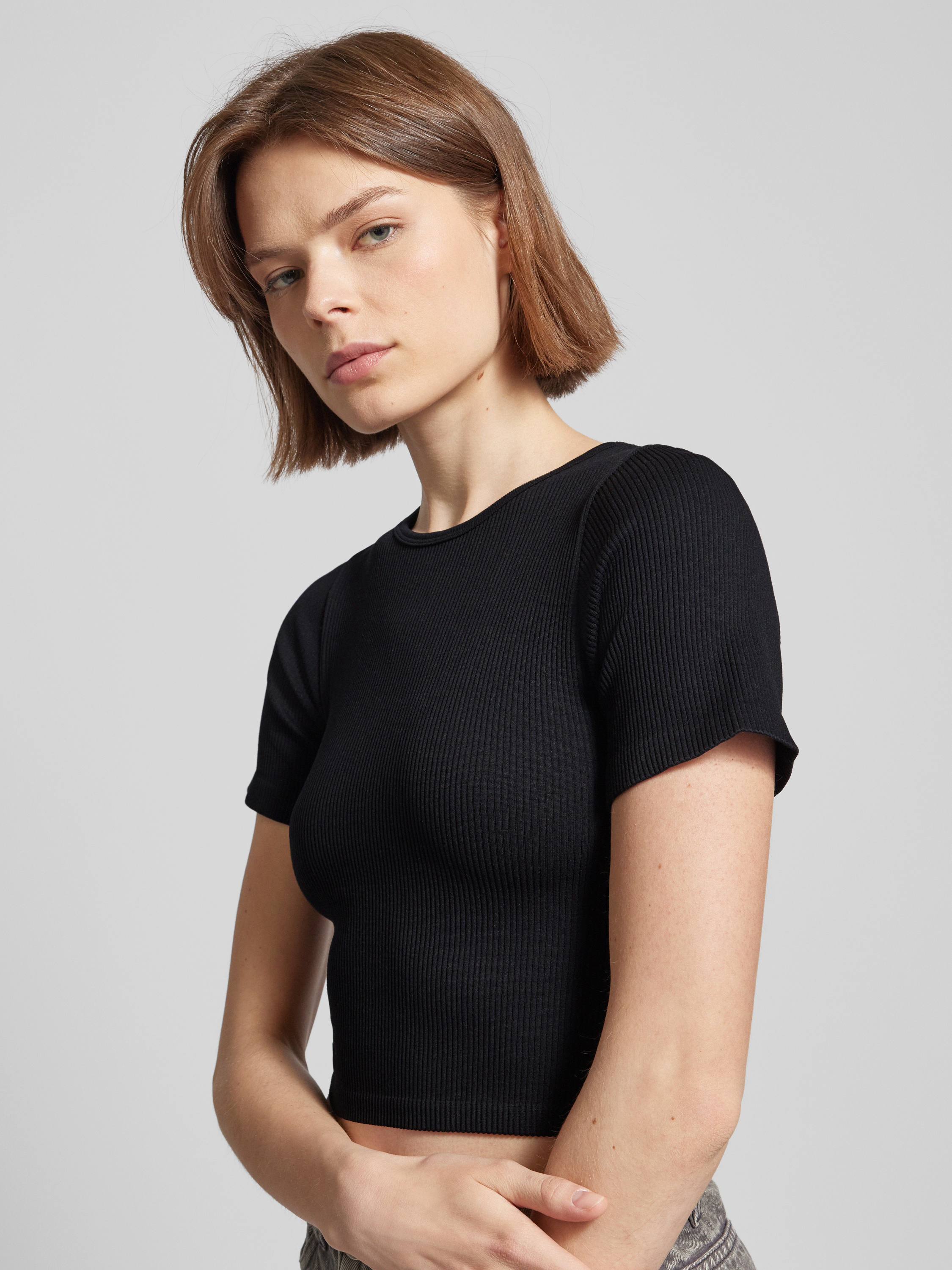 OnlyCropped T-Shirt mit Strukturmuster Modell 'GWEN' in black