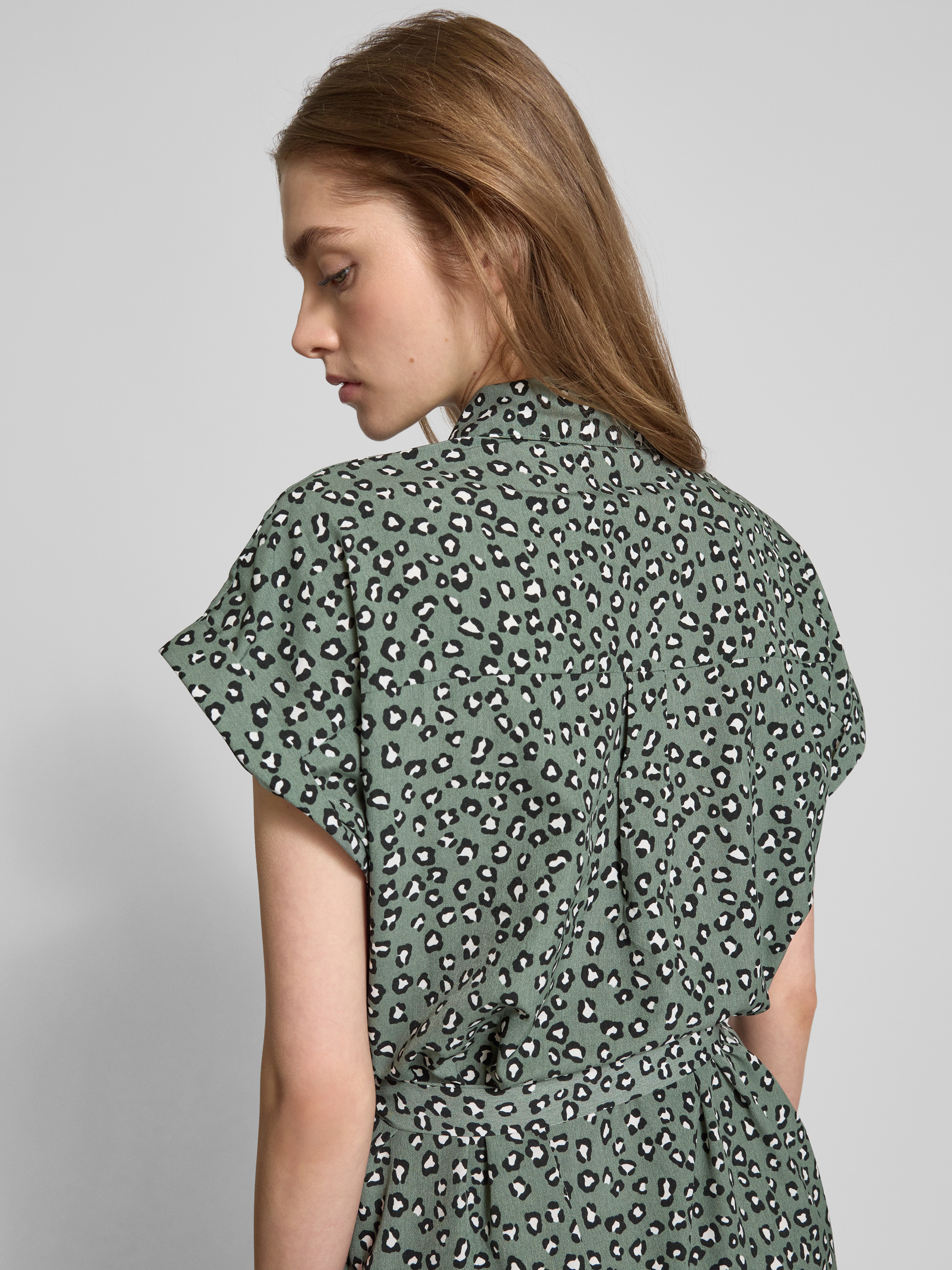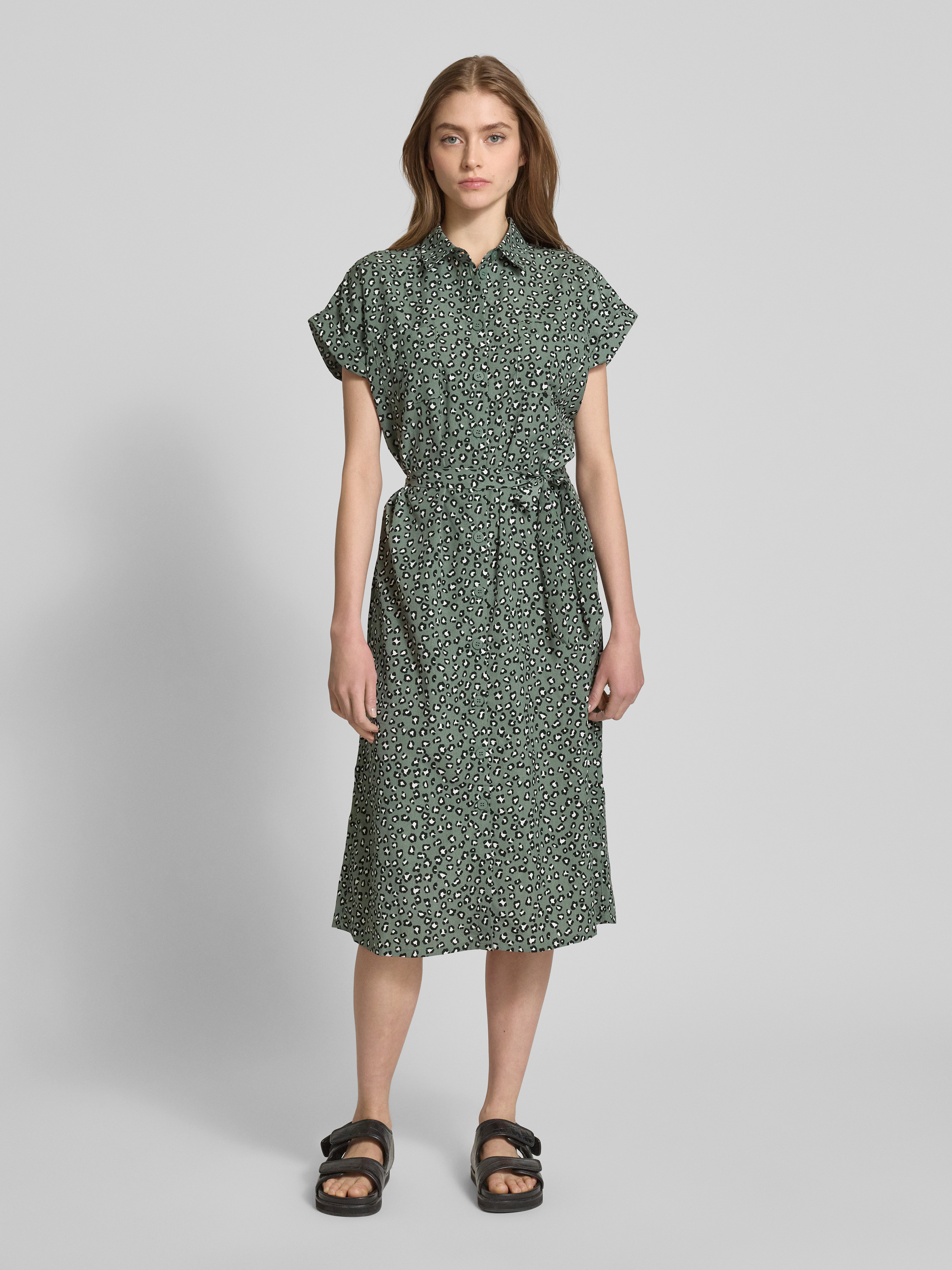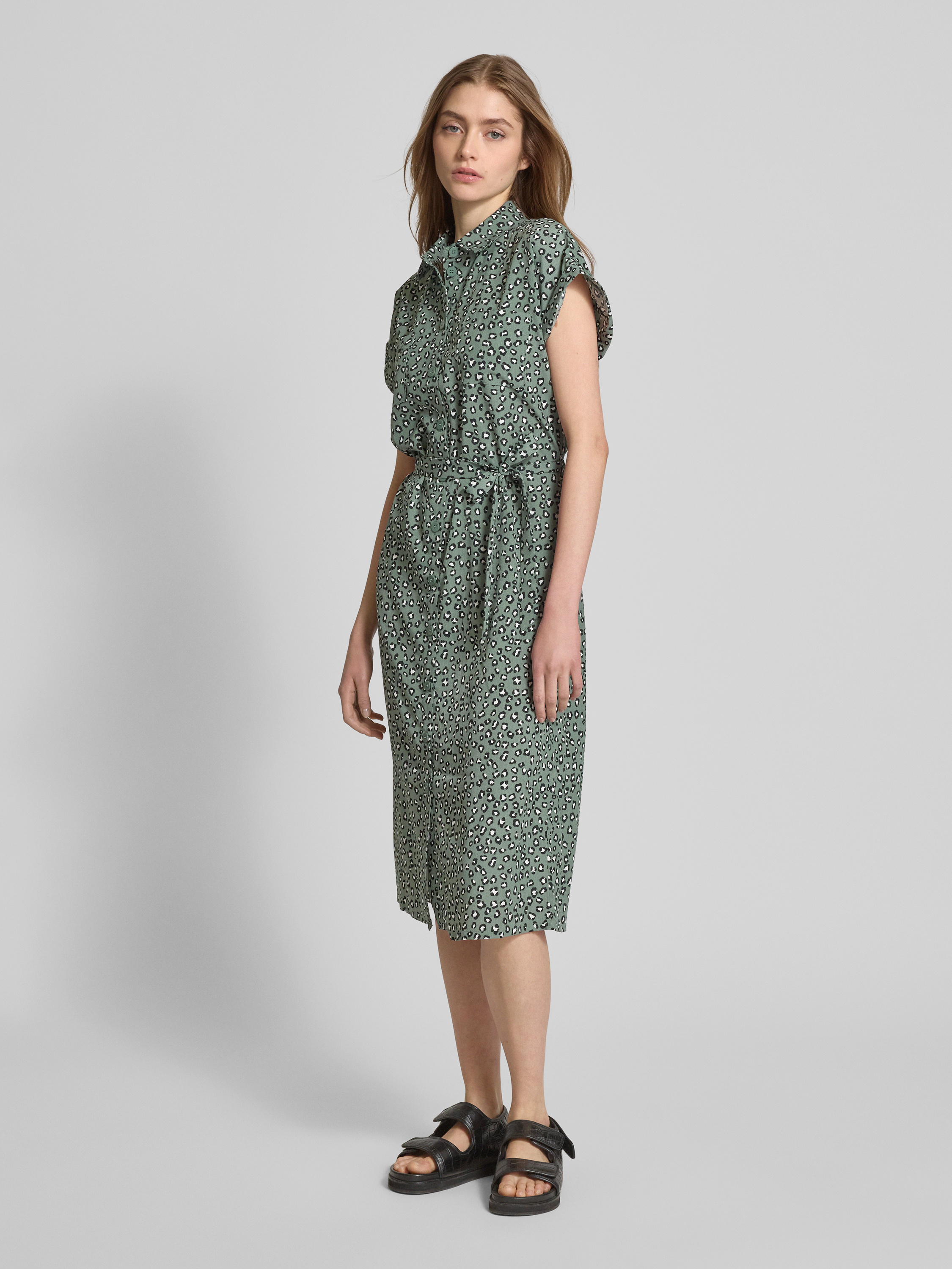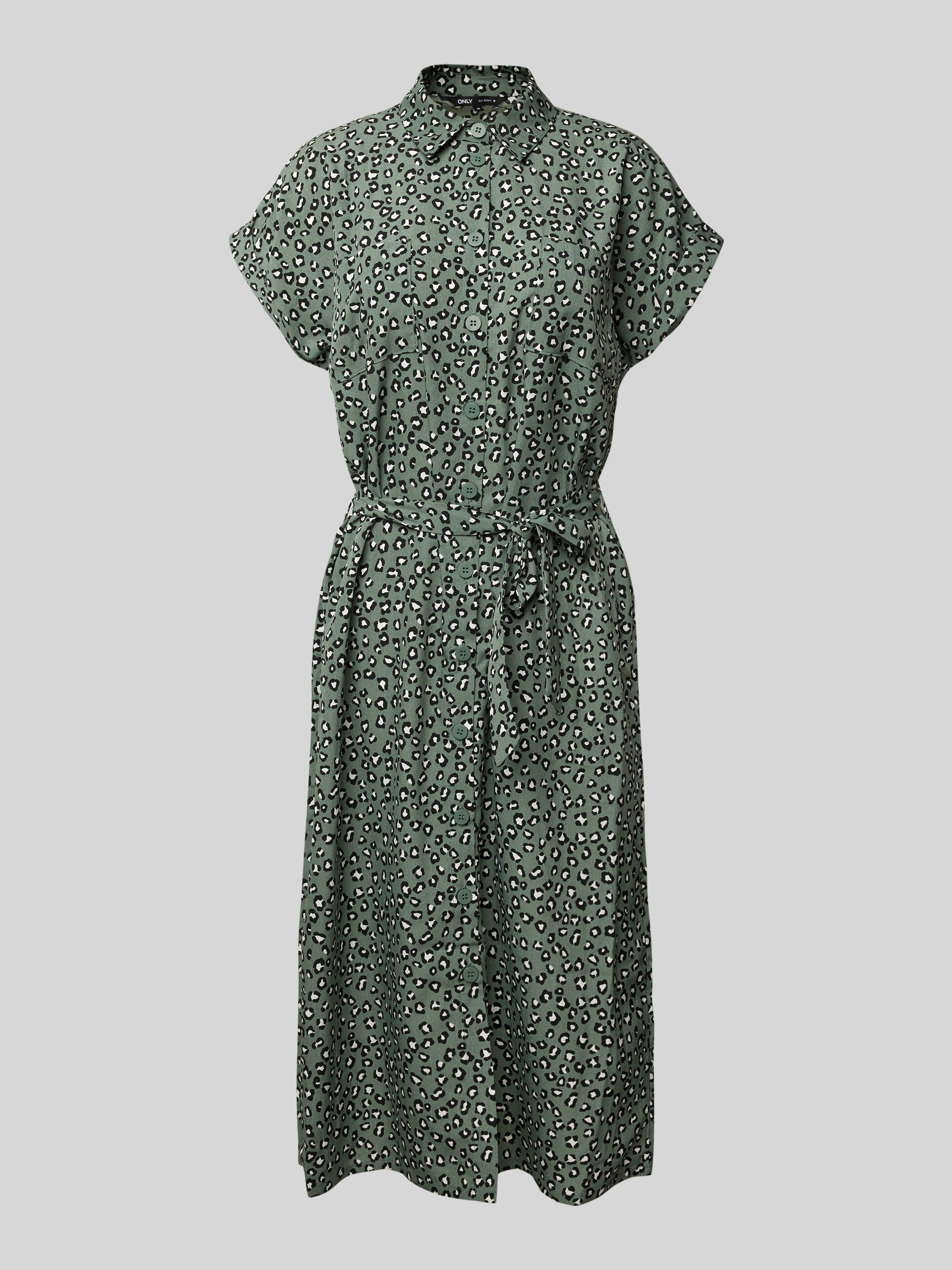OnlyFließendes Hemdblusenkleid mit Allover-Muster Modell 'Hannover' in schilf