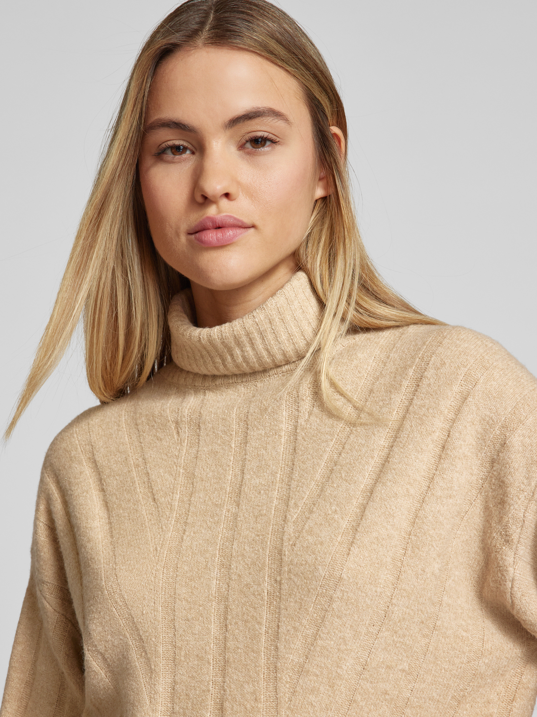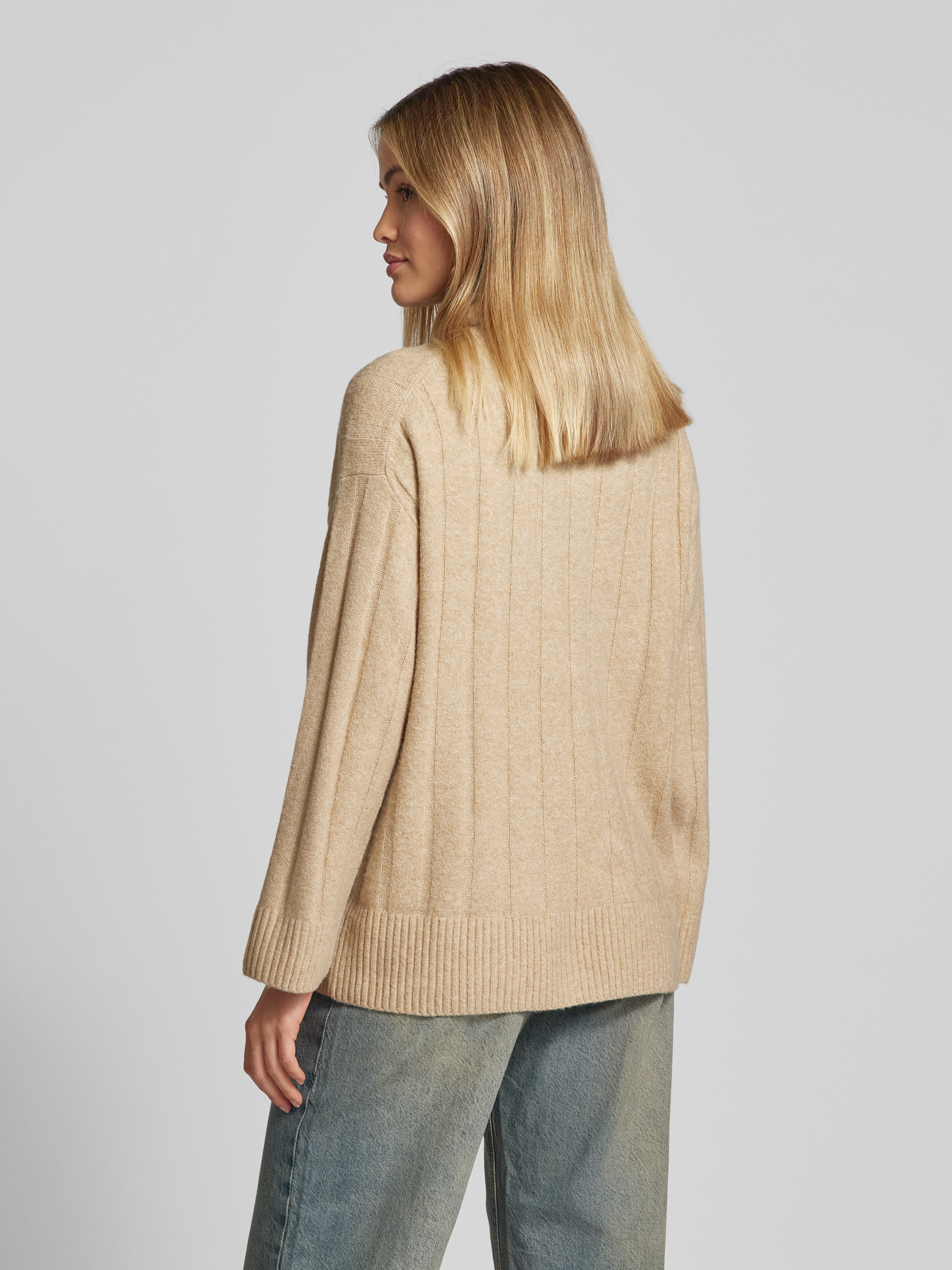 OnlyLoose Fit Strickpullover mit breitem Umschlag Modell 'JEANETT' in sand