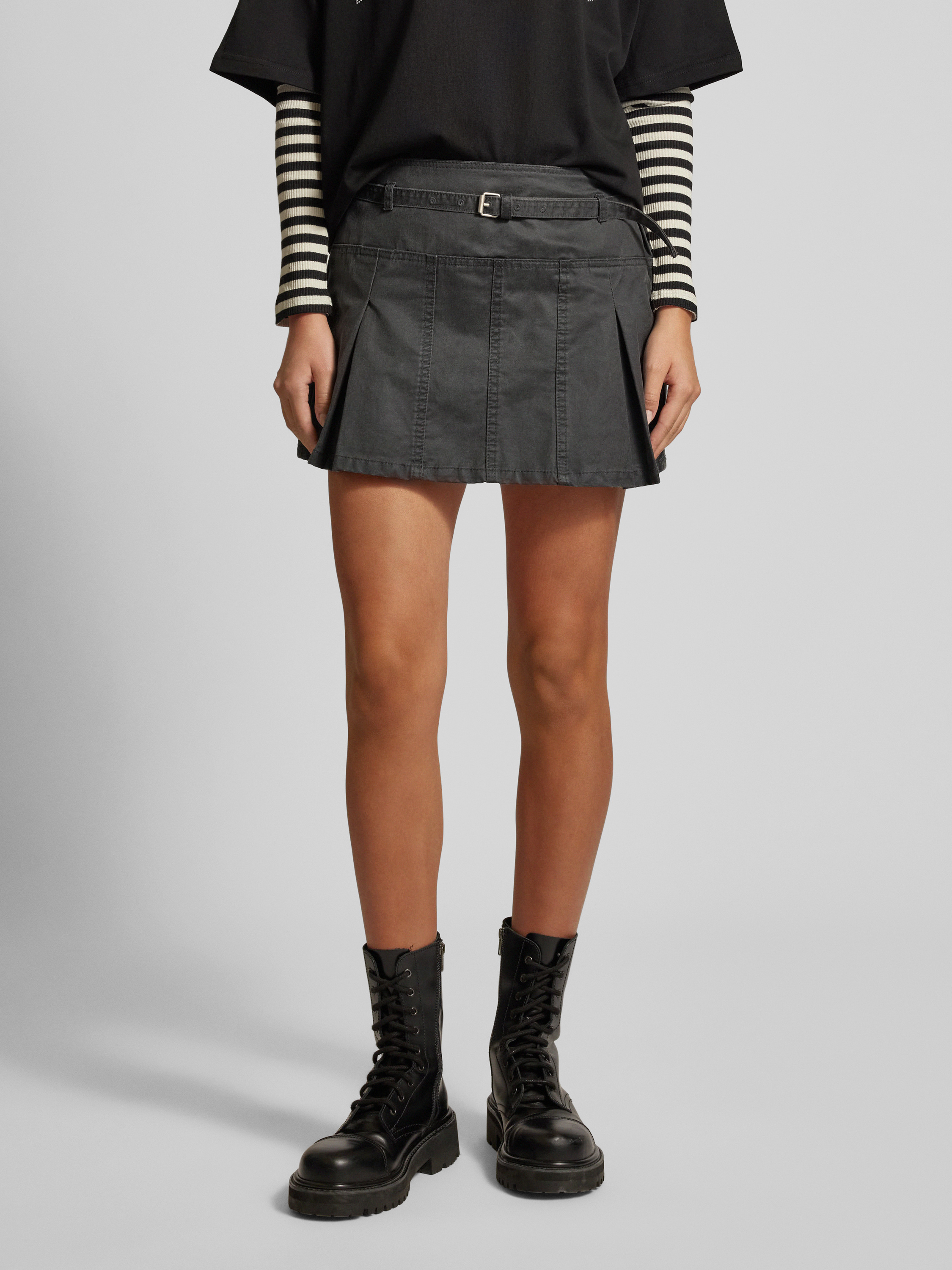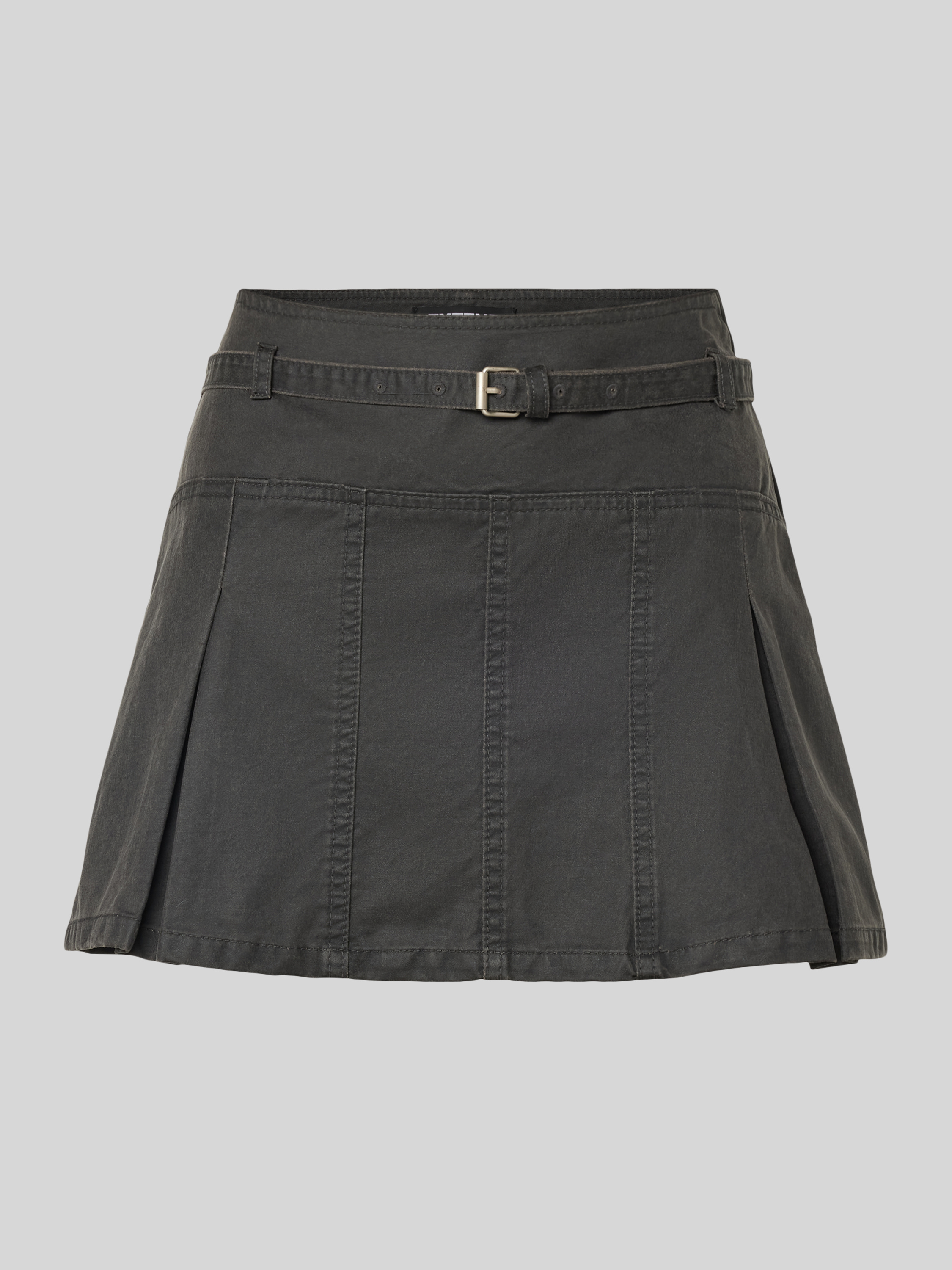 Der Minirock mit Gürtel Modell 'DEEN' von ONLY kombiniert einen schmeichelhaften A-Linien-Schnitt mit einem Baumwoll-Mix, der sich angenehm auf der Haut anfühlt. Kellerfalten sorgen für einen dynamischen Look, während der Gürtel mit Dornschließe Akzente setzt. Ideal für vielseitige Styling-Möglichkeiten.