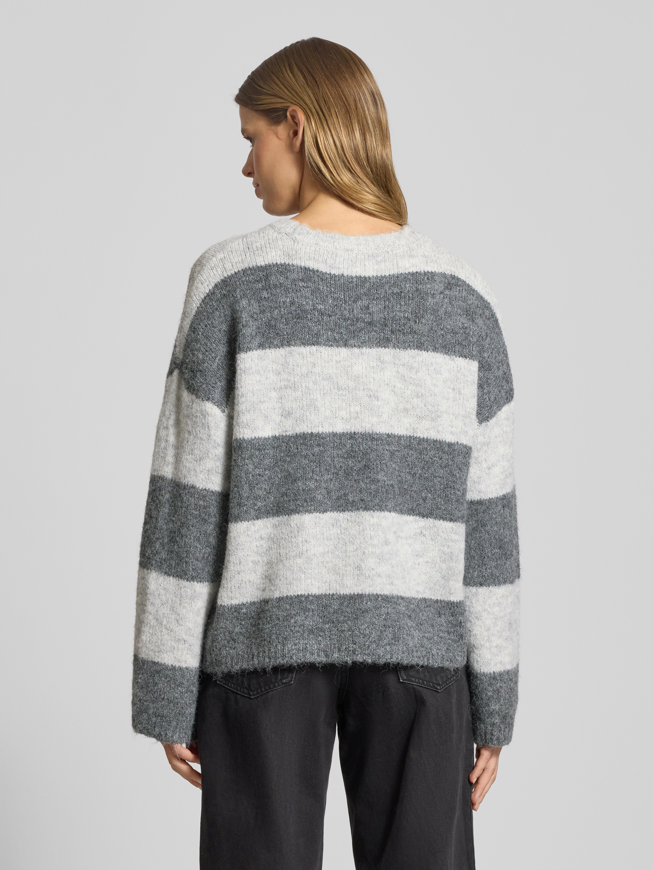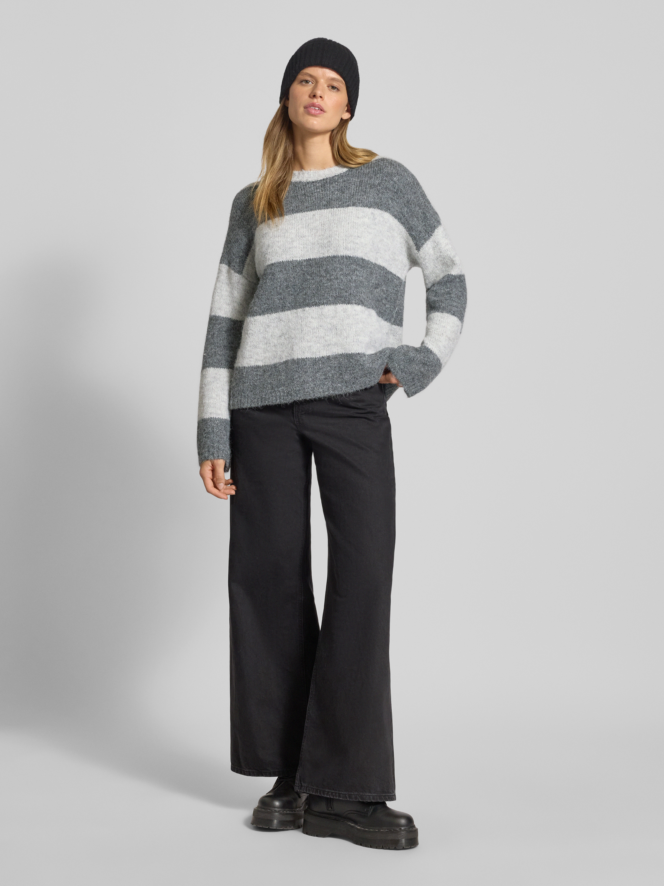Der Oversized Strickpullover von Only, Modell 'Moni Life', kombiniert ein gestreiftes Allover-Muster mit lässig überschnittenen Schultern und angenehmem Woll-Anteil. Durch die weite Passform entsteht ein legeres Tragegefühl, das Bewegungsfreiheit im Alltag ermöglicht. Der klassische Crew Neck rundet das Strick-Design harmonisch ab.