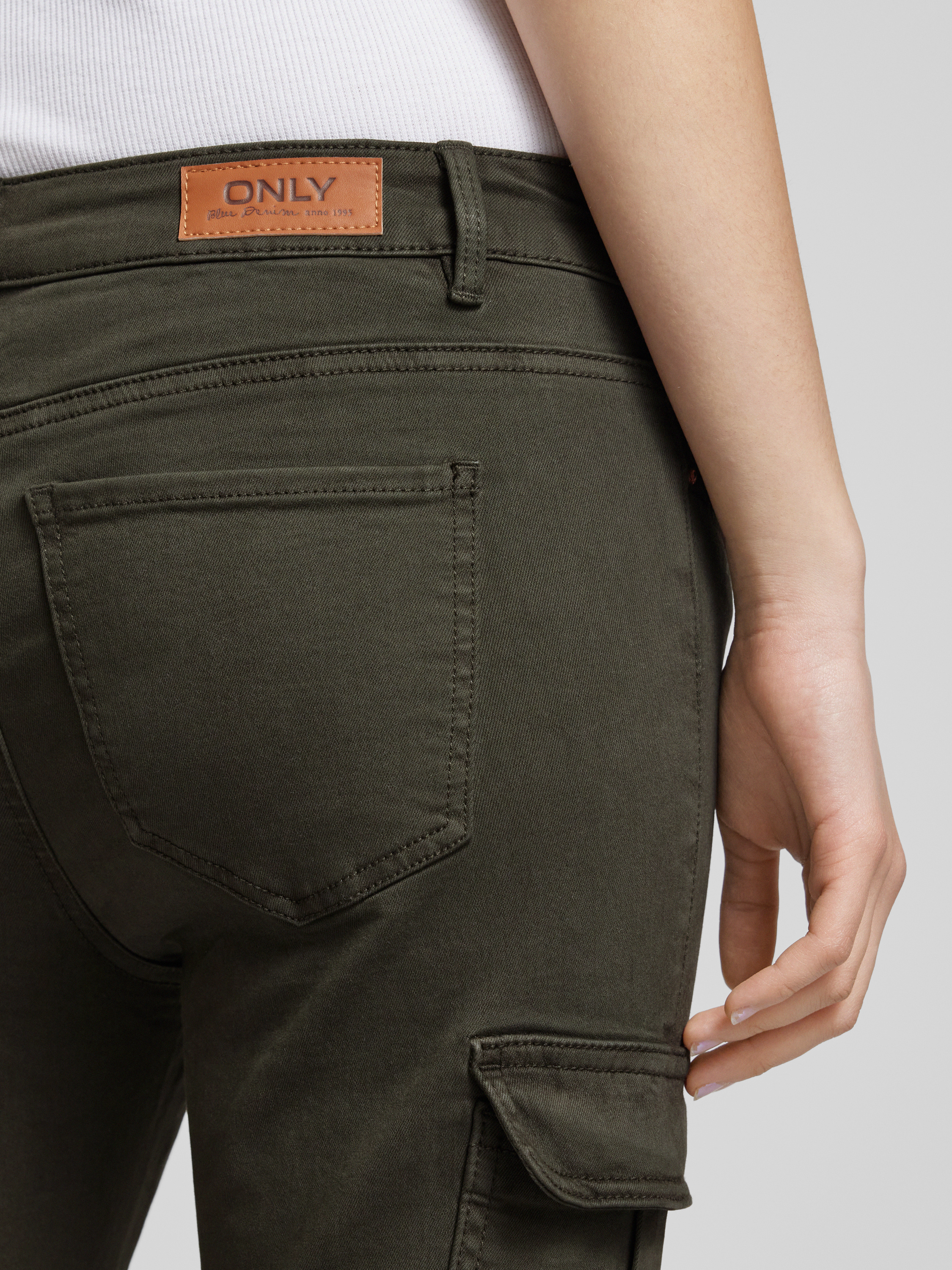 Die Regular Fit Cargohose von ONLY bietet durch ihren Baumwoll-Mix mit Stretch-Anteil eine angenehme Passform, die sich ideal für den Alltag eignet. Mit praktischen Cargotaschen und einem bequemen Schnitt verbindet sie Funktionalität und Komfort auf unaufdringliche Weise. Die Teilungsnähte verleihen der Hose eine dezente Struktur.