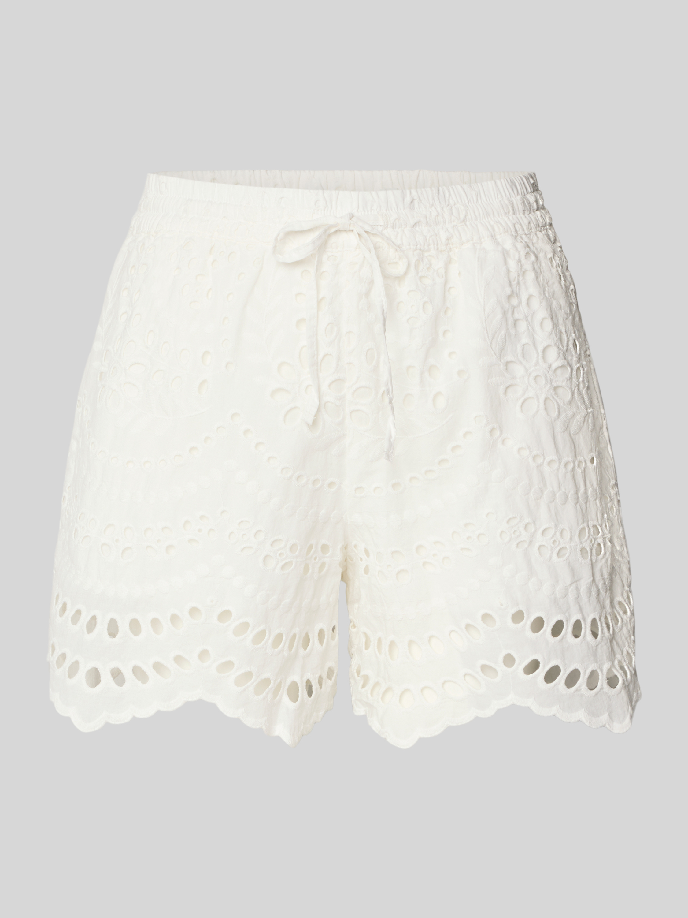 Die Regular Fit Shorts von Only, Modell 'Kim', aus reiner Baumwolle, überzeugen durch ihre feine Webstruktur und die unifarbene Optik. Der elastische Bund mit Tunnelzug und die seitlichen Eingrifftaschen sorgen für Komfort und Praktikabilität im Alltag. Lochspitze verleiht den Shorts eine subtile Eleganz.