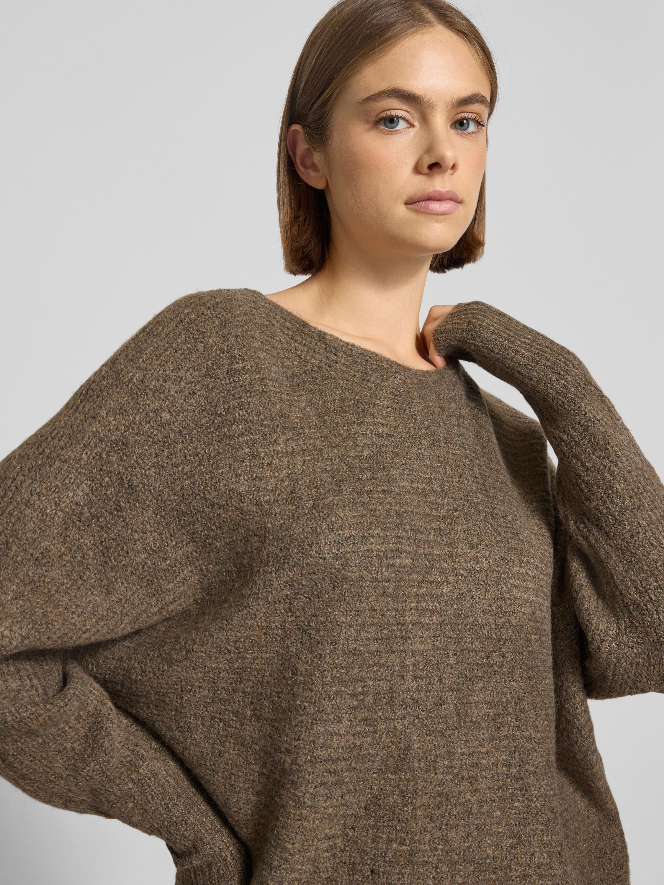 OnlyRegular Fit Strickpullover mit Fledermausärmel Modell 'DANIELLA' in mittelbraun mel