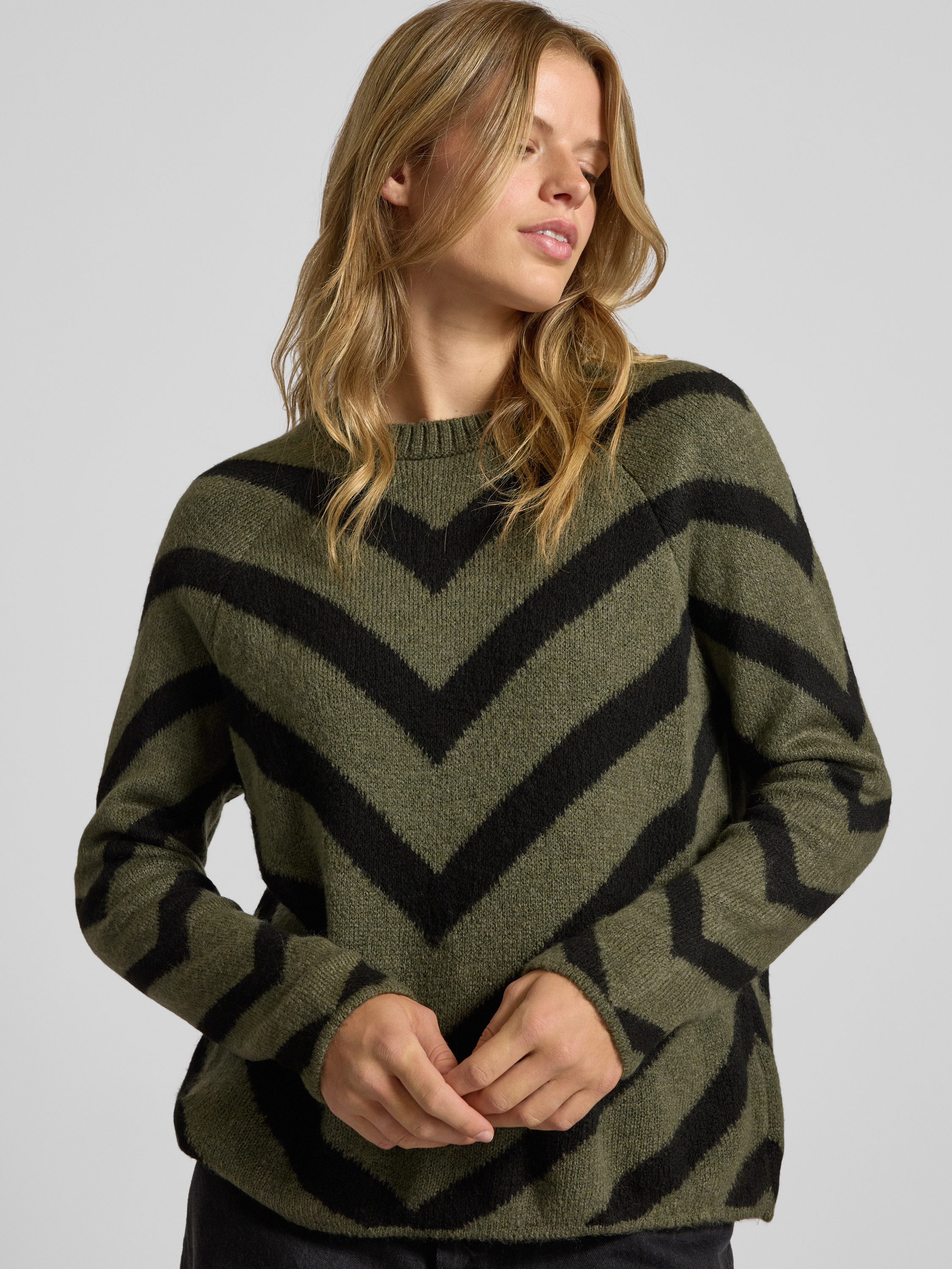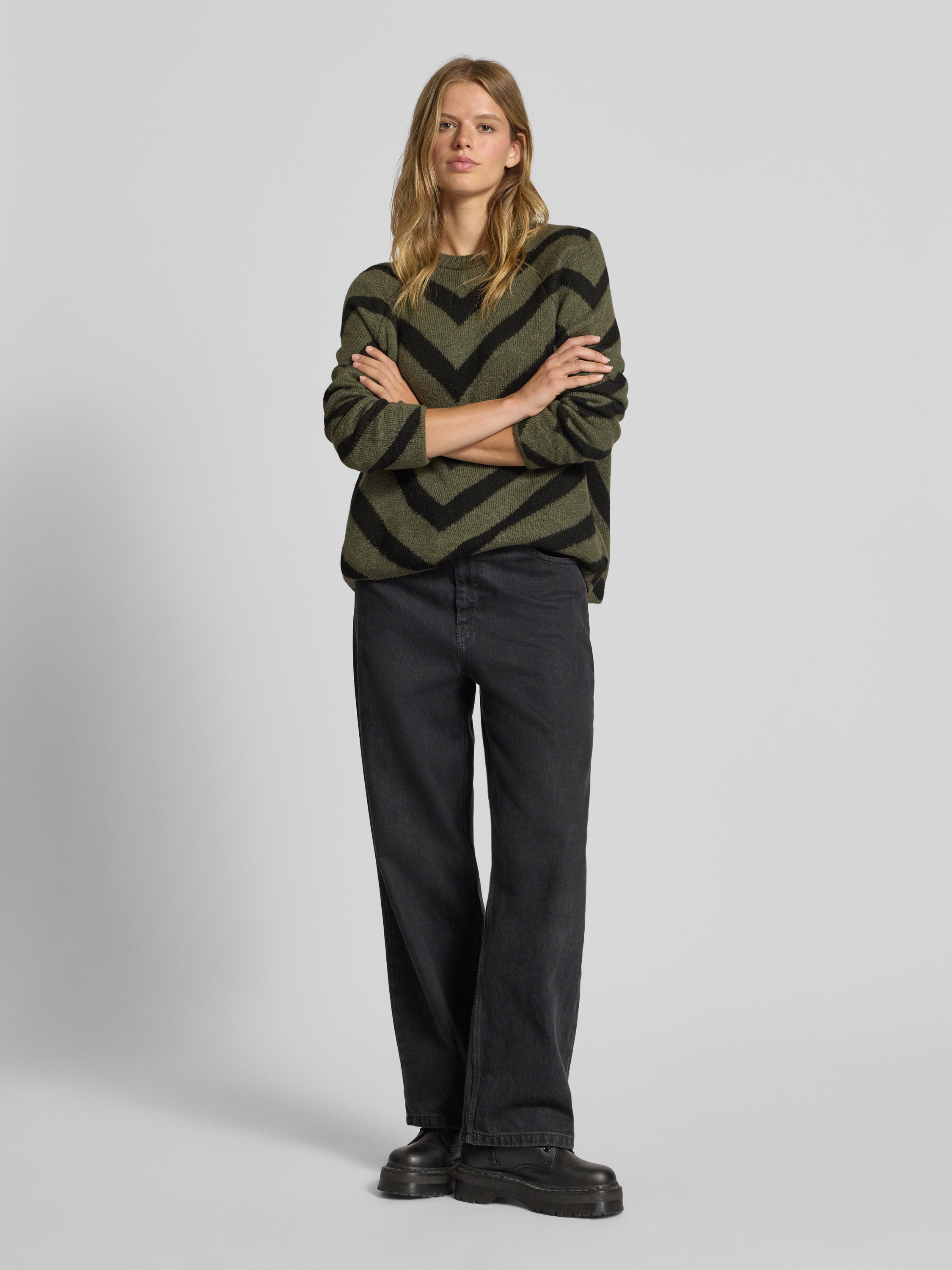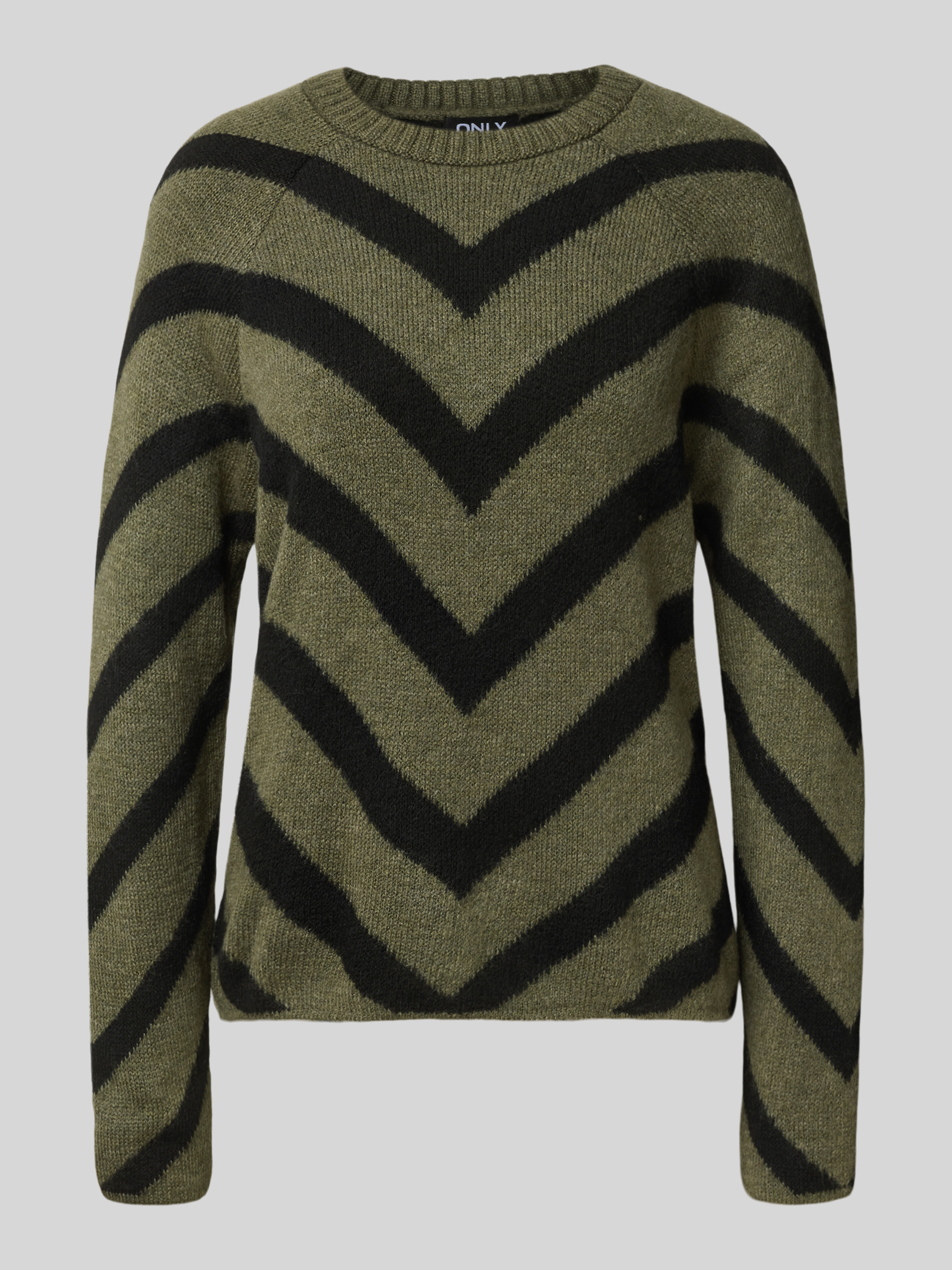 OnlyRegular Fit Strickpullover mit Streifenmuster Modell 'ELIZA' in oliv melange