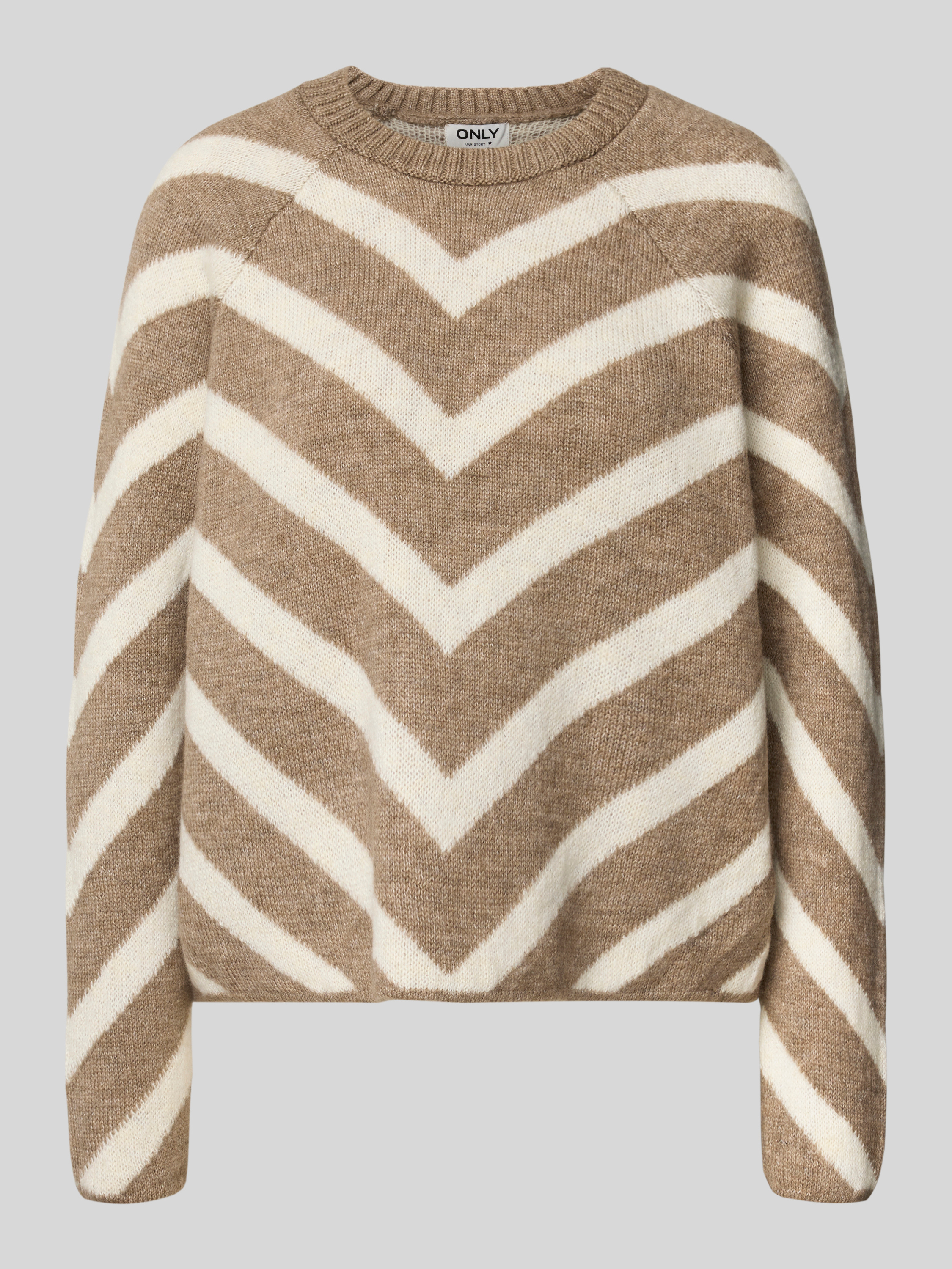 OnlyRegular Fit Strickpullover mit Streifenmuster Modell 'ELIZA' in sand melange