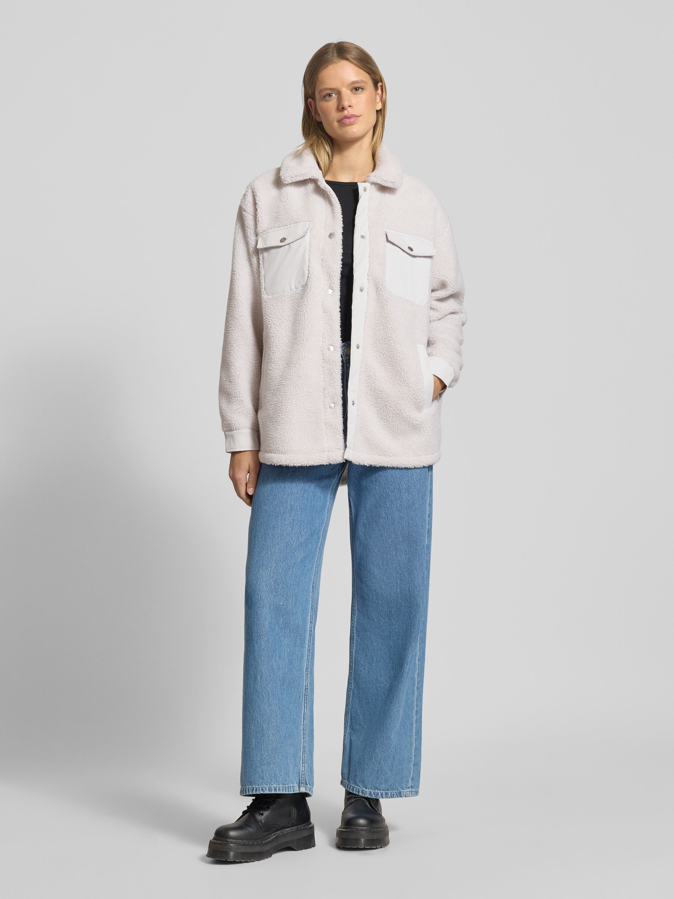 Die Damen Teddy-Jacke von Only, Modell 'Tanja', zeichnet sich durch ihre strukturierte Optik und den Regular Fit aus, der Bewegungsfreiheit im Alltag ermöglicht. Ein klassischer Hemdkragen rundet das Design ab, während praktische Taschen Raum für Kleinigkeiten schaffen. Das weiche Teddyfell sorgt an kühlen Tagen für ein angenehmes Tragegefühl.