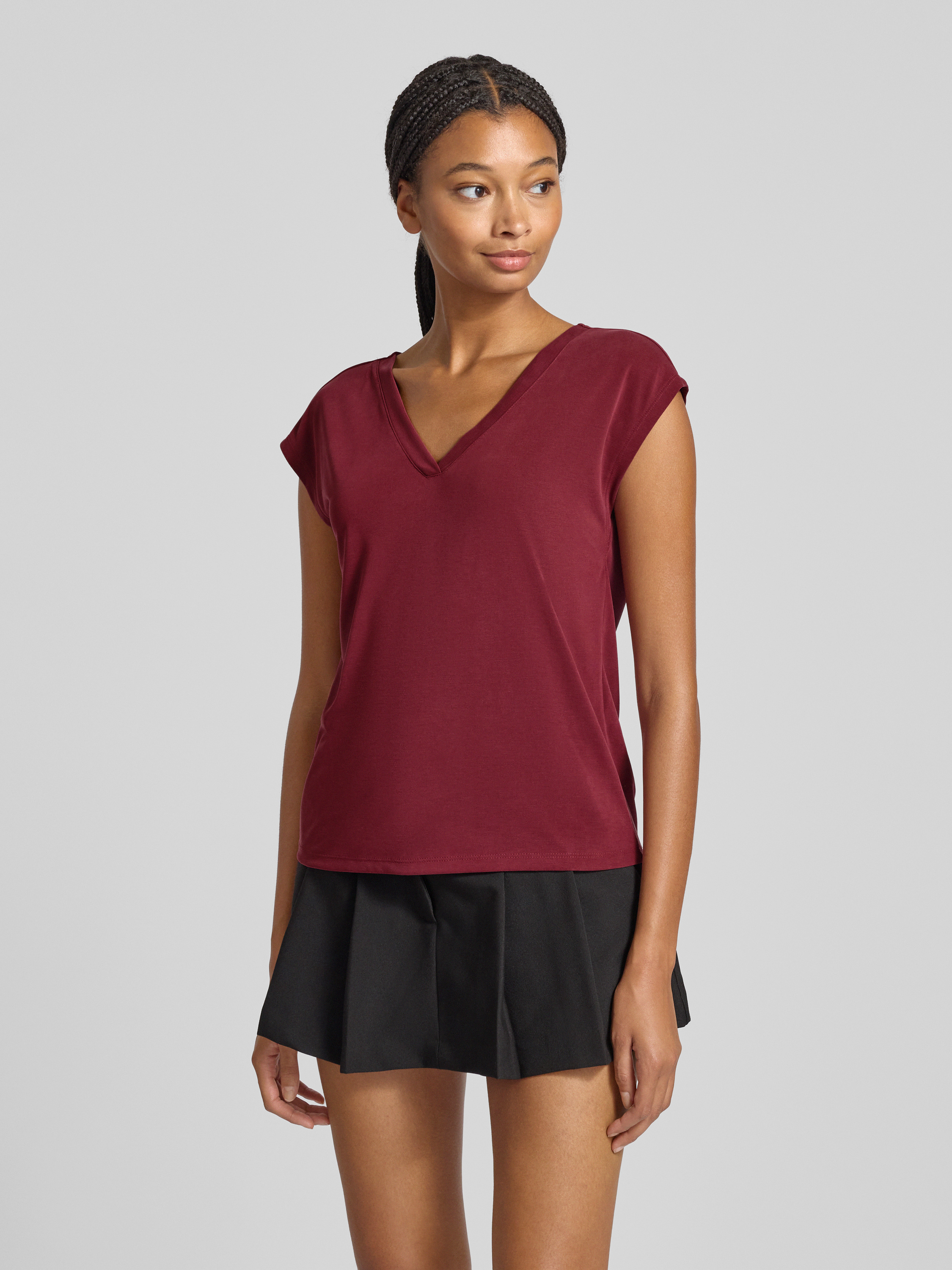 Das Damen Regular Fit T-Shirt von Only fällt durch seinen klassischen, ärmellosen Schnitt auf und schmiegt sich angenehm an den Körper. Der V-Ausschnitt unterstreicht die schlichte Optik, während der Modal-Mix für ein weiches Tragegefühl im Alltag sorgt. So entsteht ein unkompliziertes Kleidungsstück, das vielseitig kombinierbar bleibt.