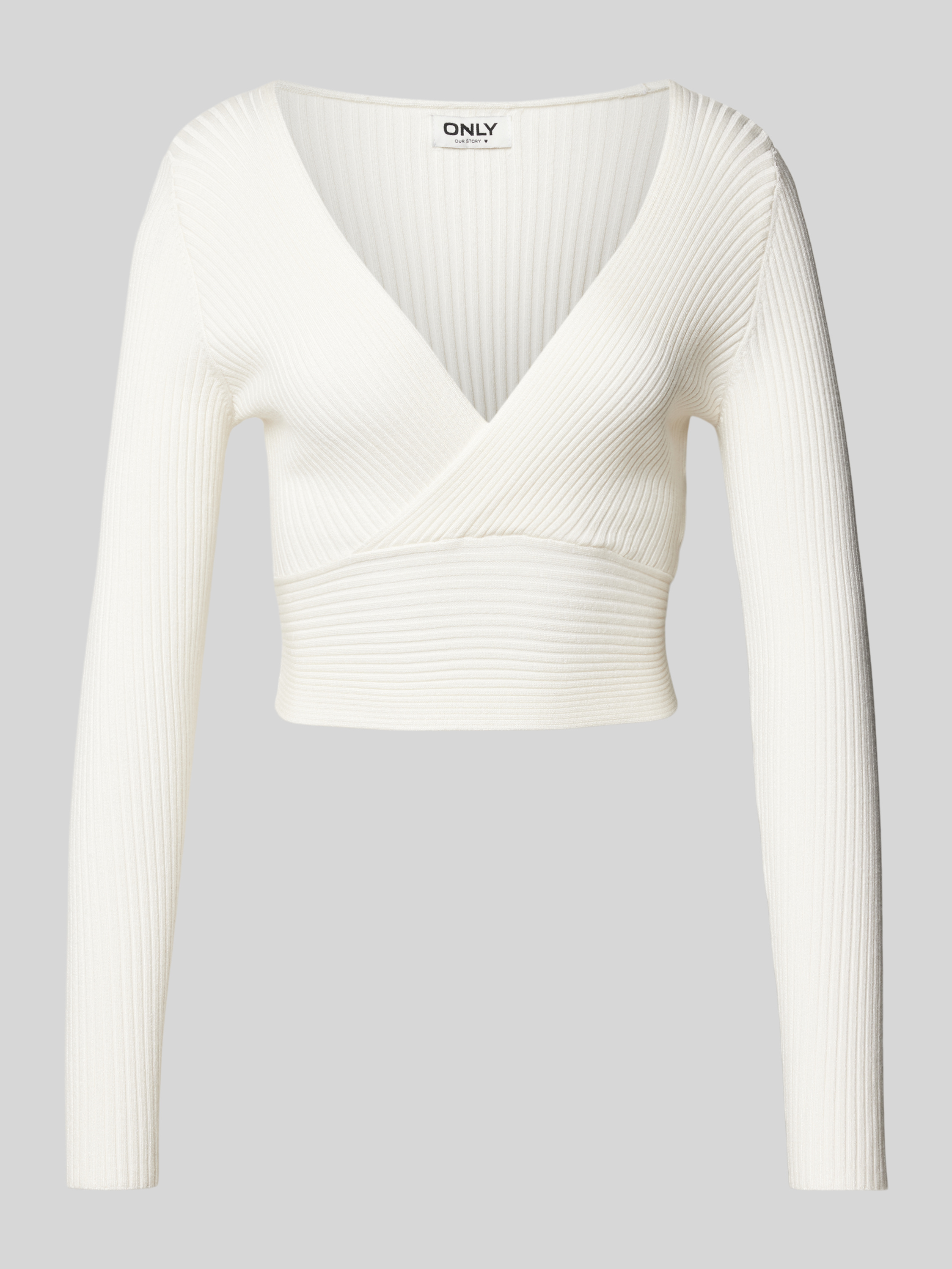 Das Slim Fit Langarmshirt Modell 'Honor' von Only zeigt sich in einer eleganten Wickeloptik und kombiniert einen tiefen V-Ausschnitt mit einer schmeichelhaften, figurbetonten Passform. Der Cropped-Schnitt verleiht dem Design eine moderne Note. Der weiche Viskose-Mix sorgt für angenehmen Tragekomfort.