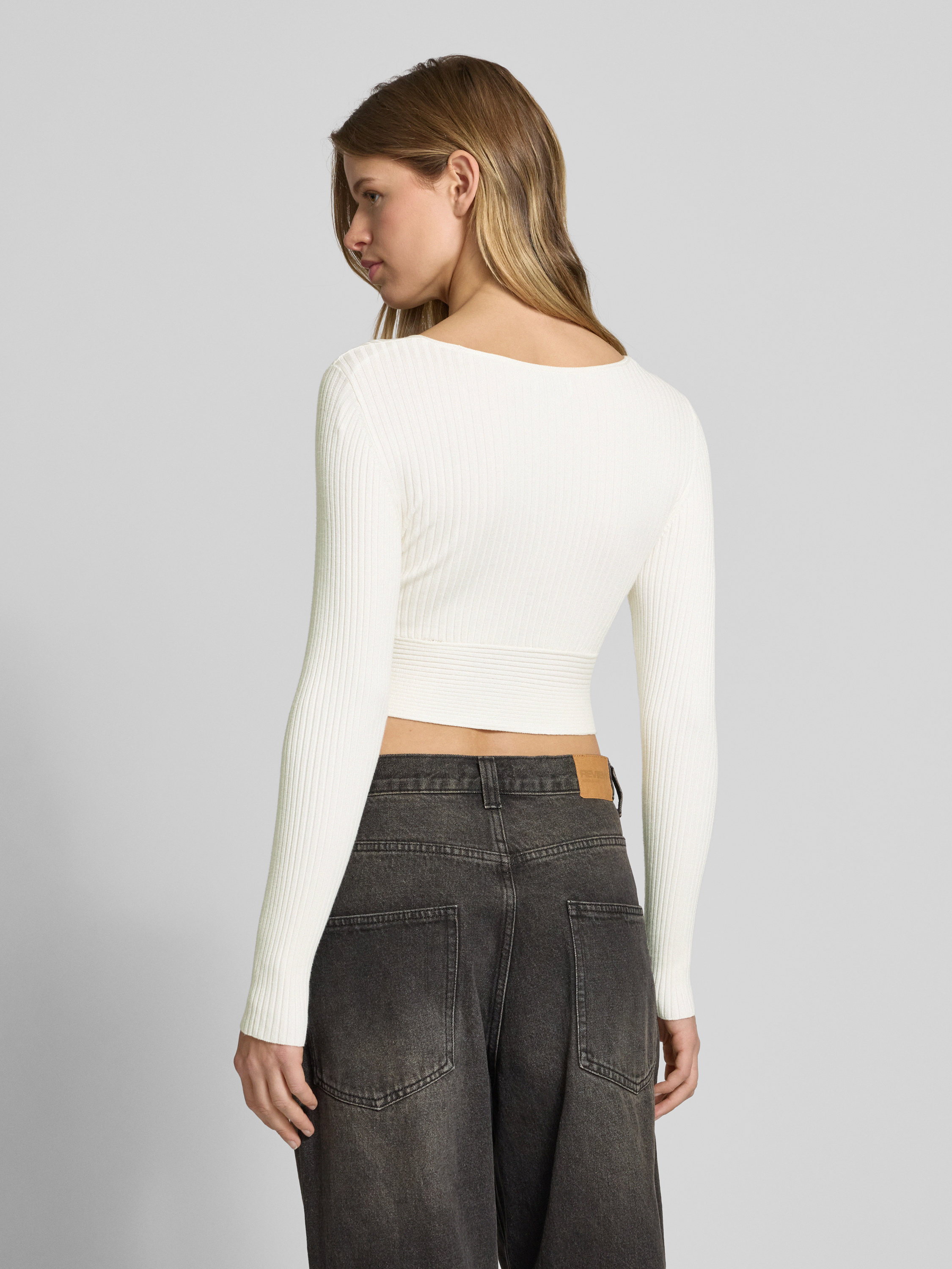 OnlySlim Fit Langarmshirt aus Rippstrick Modell 'HONOR' in weiss
