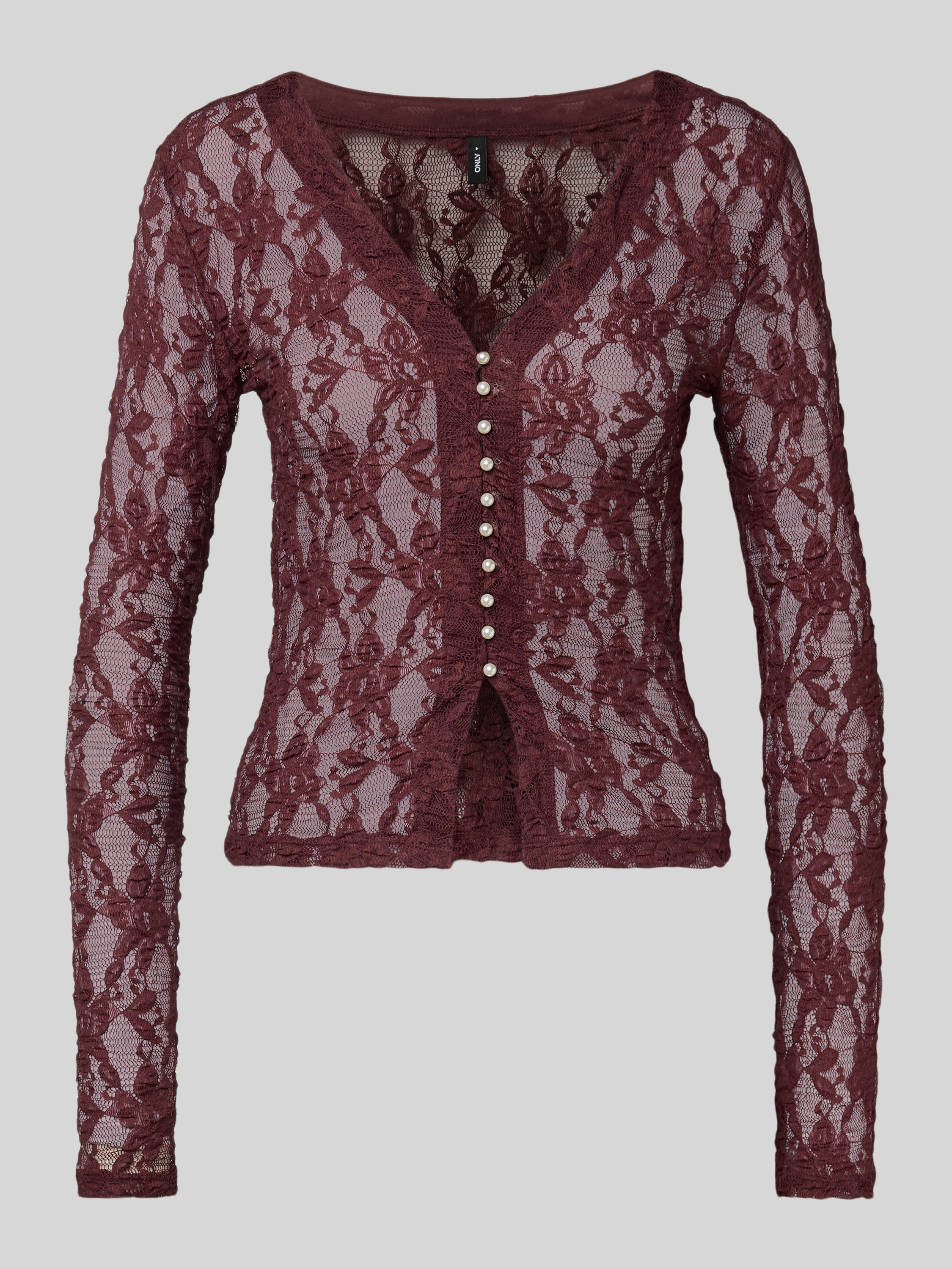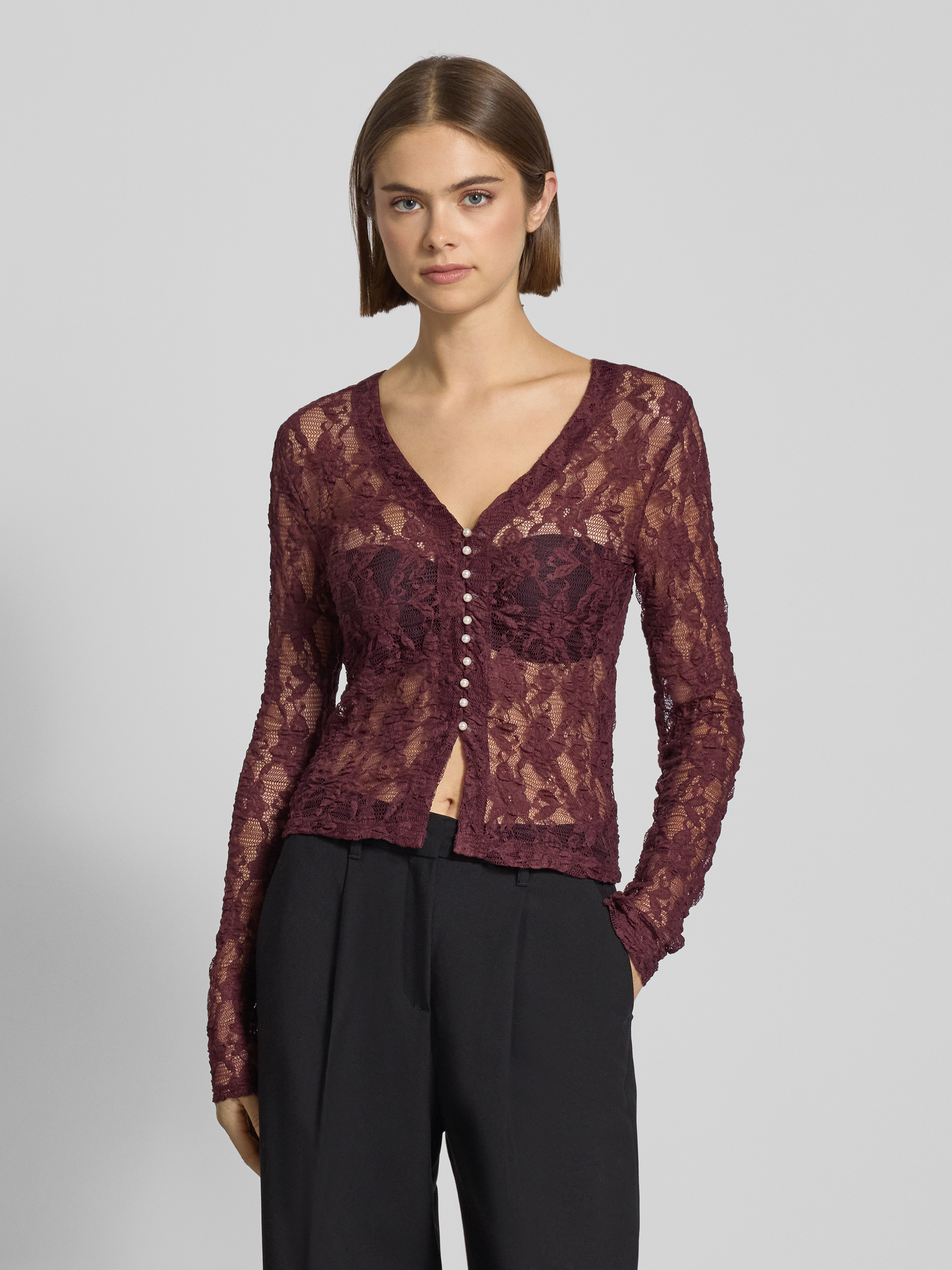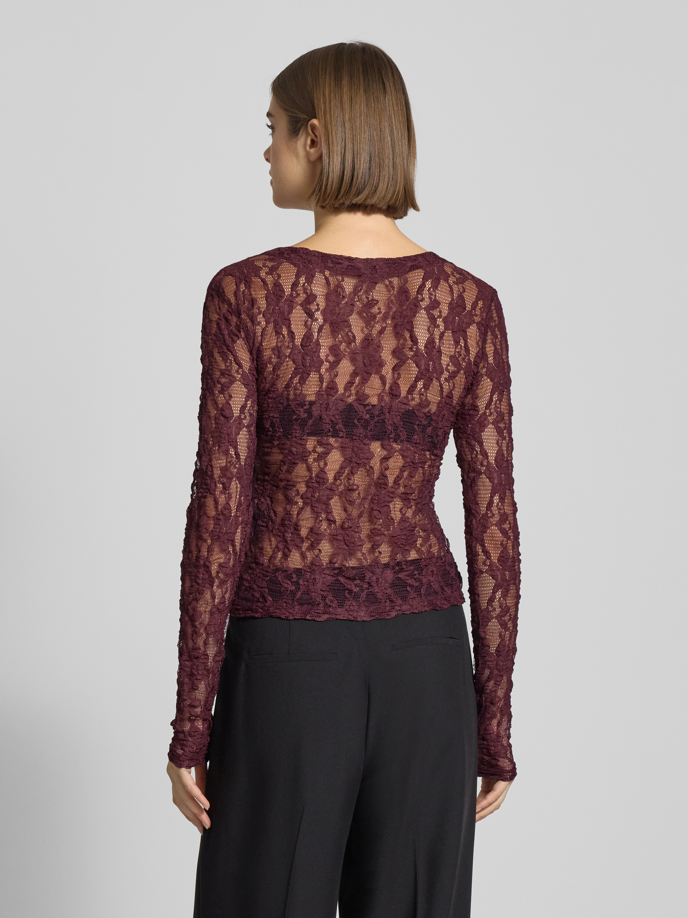 OnlySlim Fit Langarmshirt in semitransparenter Optik Modell 'ALBA' in bordeaux
