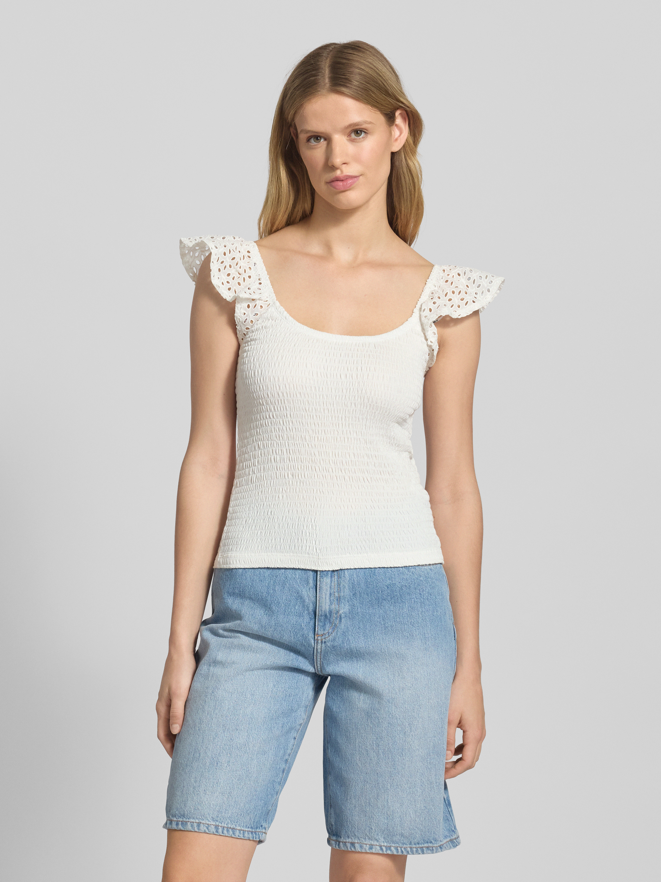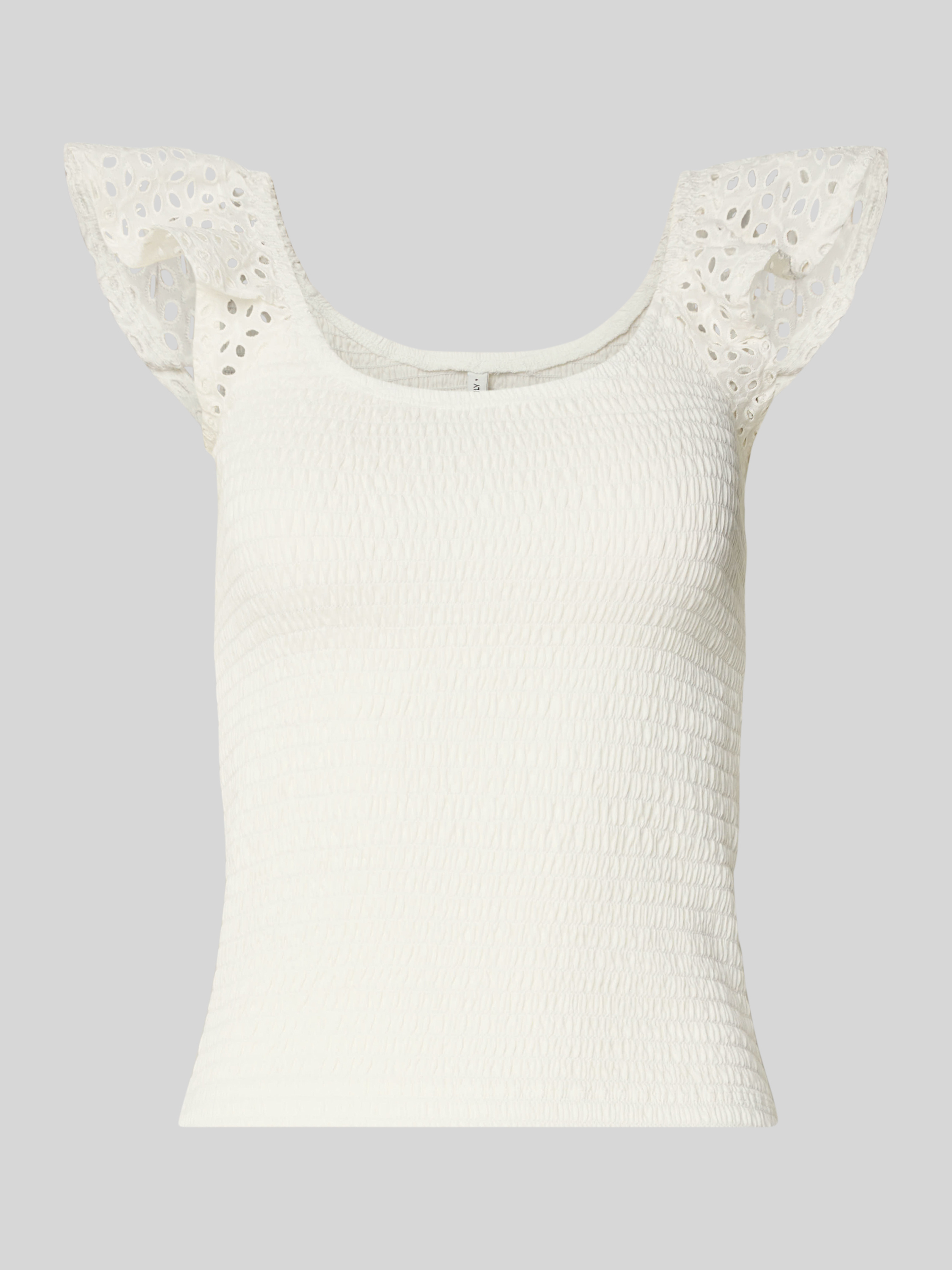 Das Top 'Gwen Life' von Only vereint eine schmeichelhafte Slim-Fit-Passform mit einem eleganten Karree-Ausschnitt. Hergestellt aus reiner Baumwolle, fühlt es sich angenehm auf der Haut an und bietet durch die gesmokte Verarbeitung eine flexible Anpassung. Perfekt für vielseitige Styling-Optionen.