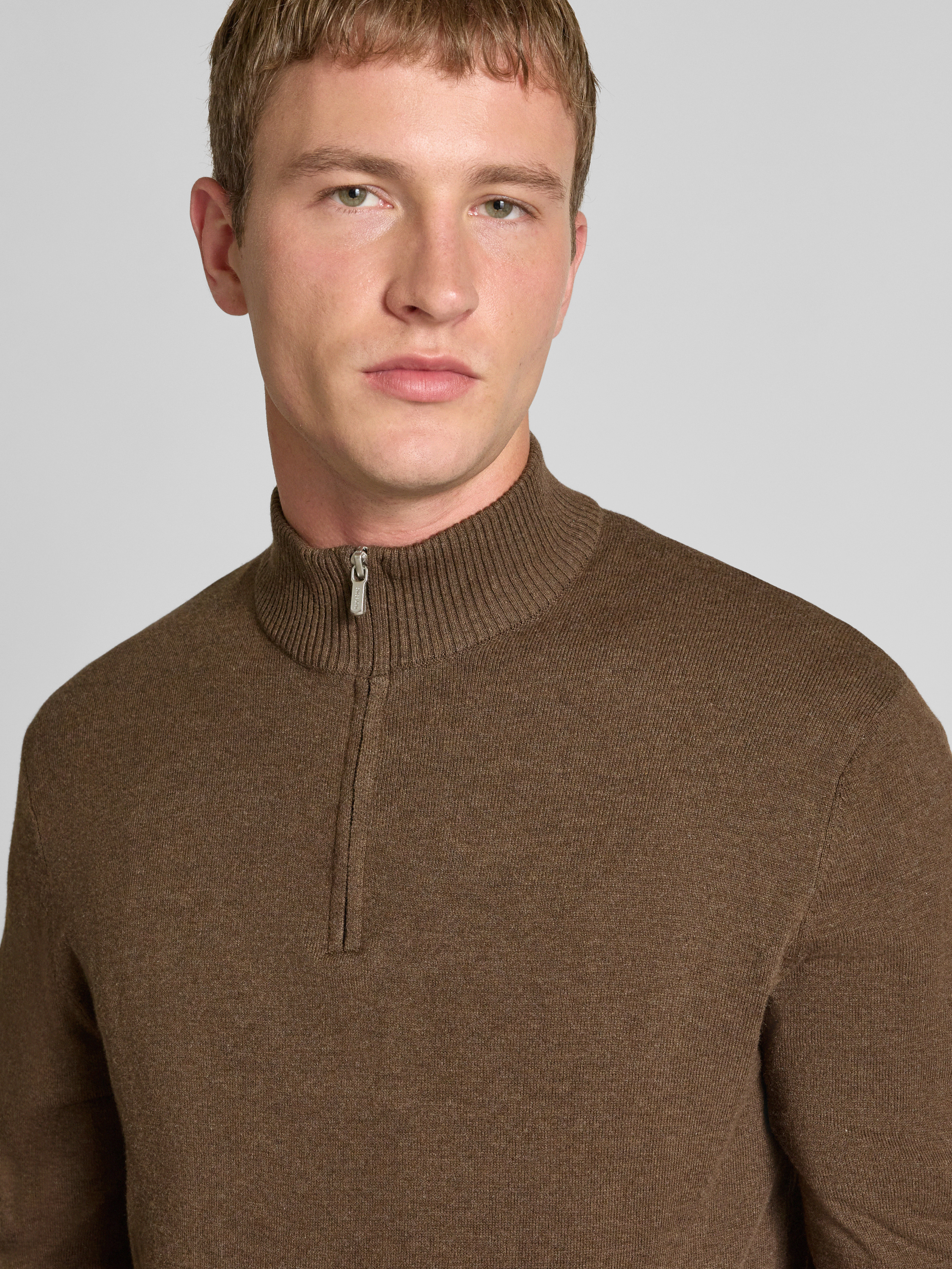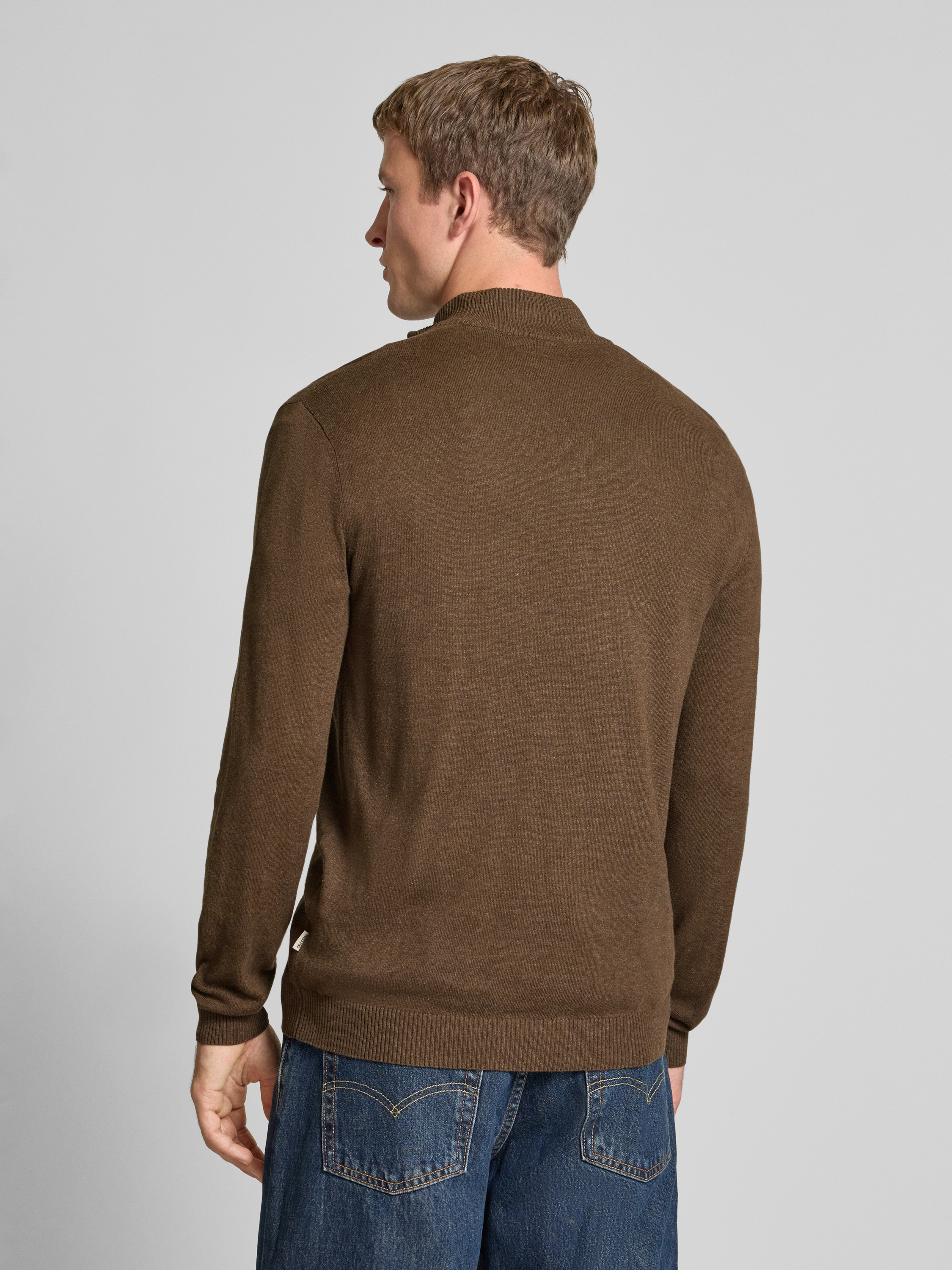 Only & SonsRegular Fit Troyer aus Baumwoll-Viskose-Mix Modell 'LOUI' in dunkelbraun melange