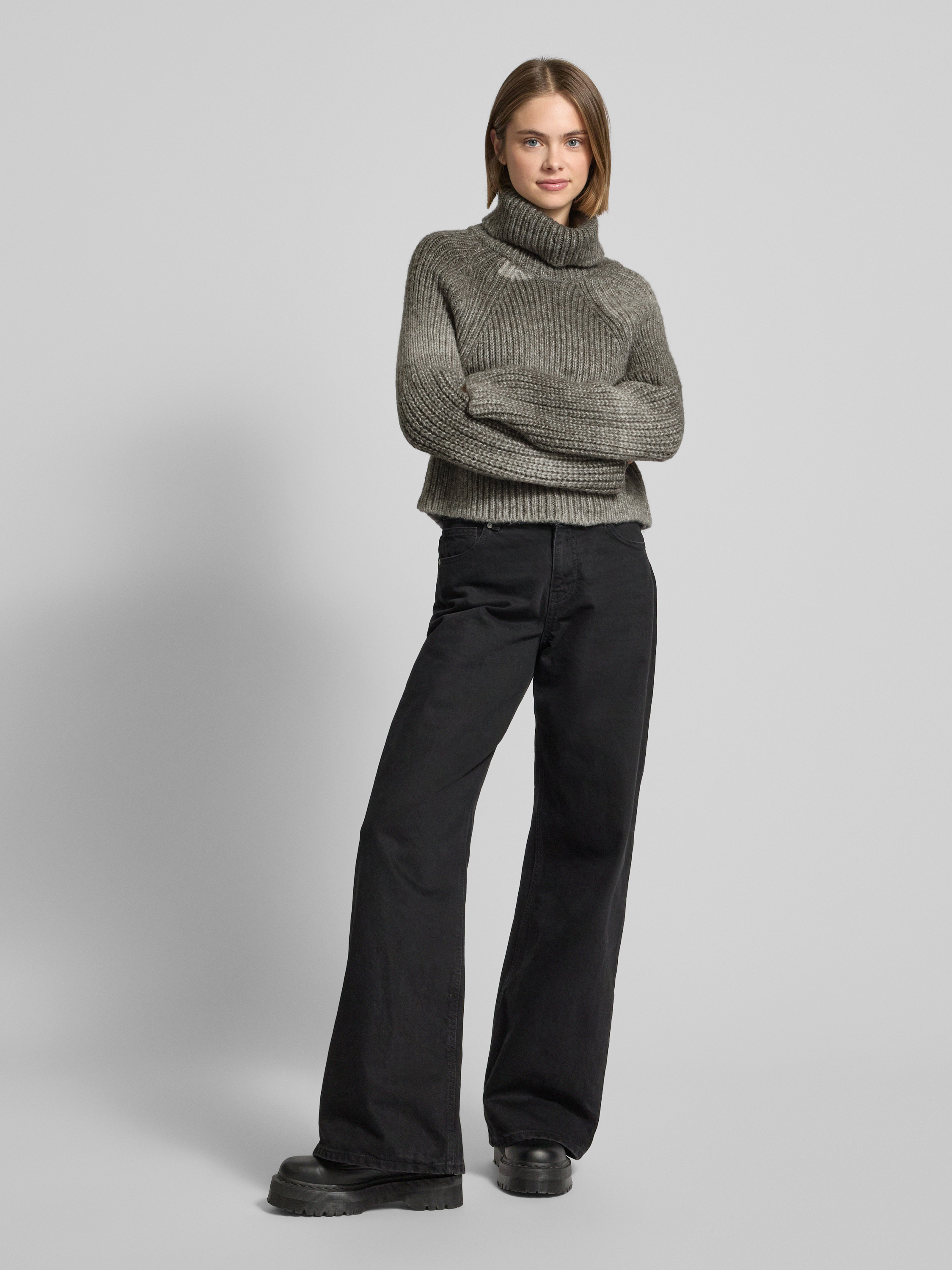 Der Strickpullover von Only, Modell 'Ditte', kombiniert gekonnt Melange-Optik mit einem Rollkragen und Raglanärmeln, wodurch er einen entspannten Look schafft. Durch den Regular Fit und die verkürzte Länge eignet er sich ideal für vielfältige Kombinationen. Die hochwertige Wollmischung sorgt für angenehmen Tragekomfort.