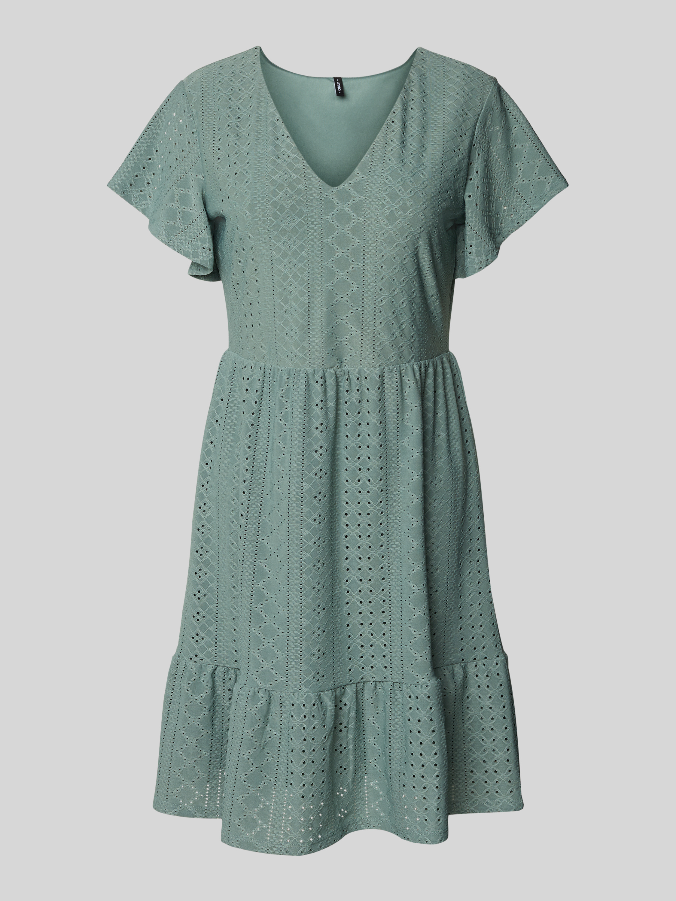 OnlyTailliertes Freizeitkleid mit Lochstickerei Modell 'SANDRA' in schilf
