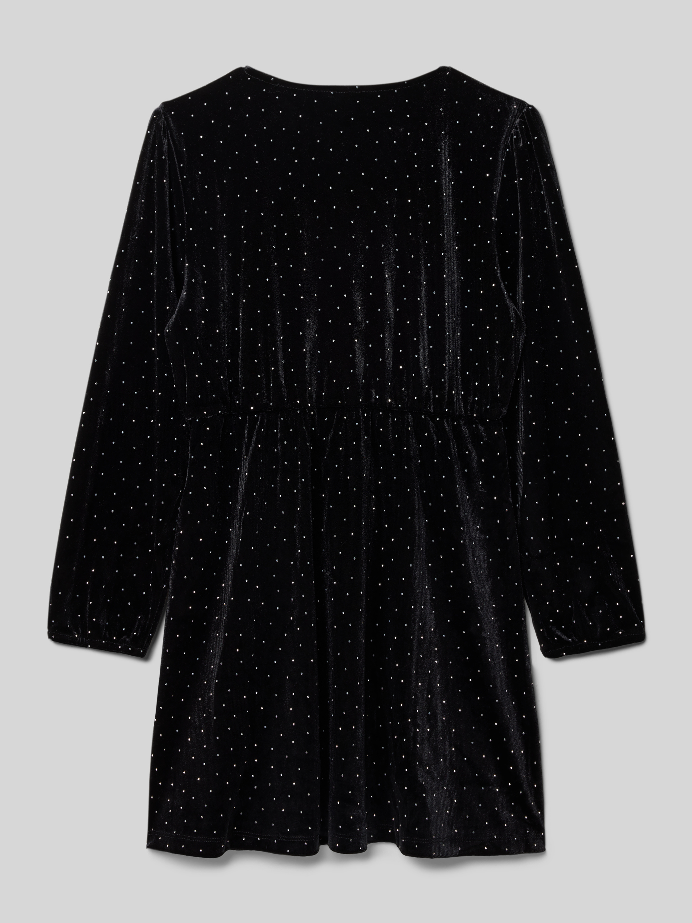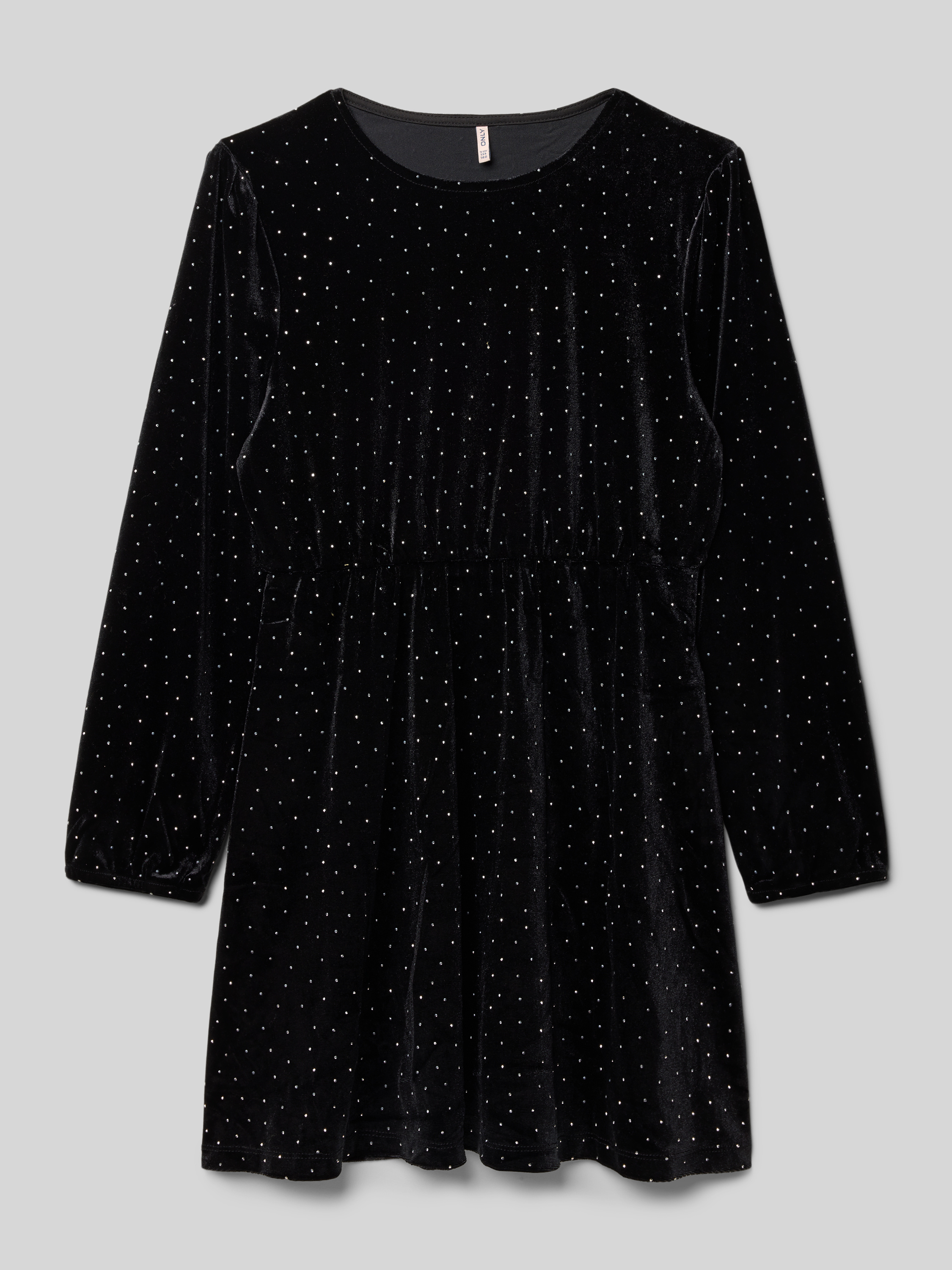 Das Kinder Langarmkleid von Only, Modell 'Vella', zeigt sich in glänzender Optik und setzt mit Ziersteinen feine Akzente. Durch die taillierte Passform mit elastischer Taille fällt der Stoff angenehm und sorgt für viel Bewegungsfreiheit beim Spielen. Der Rundhalsausschnitt und die Mini-Länge runden das Gesamtbild harmonisch ab.