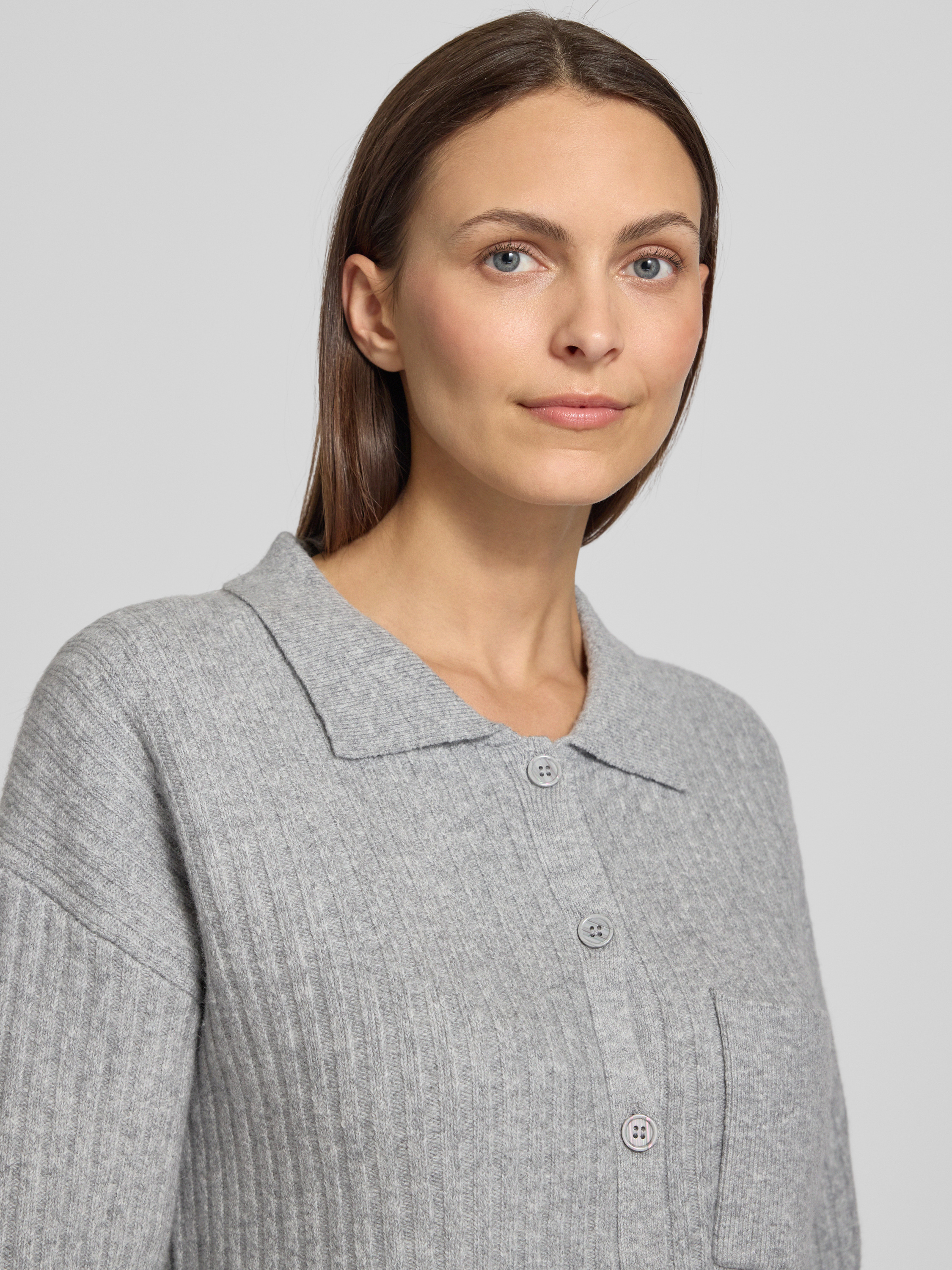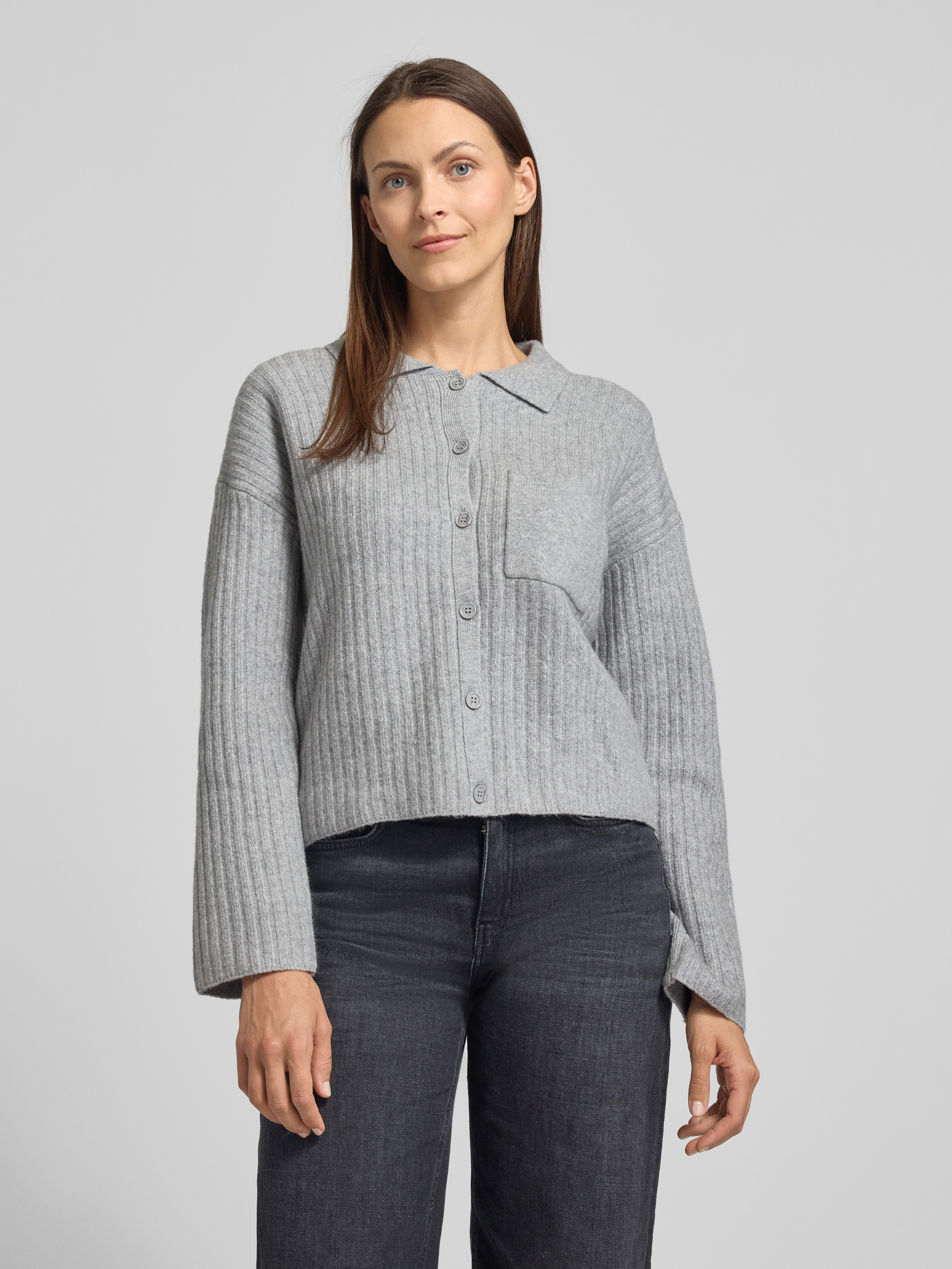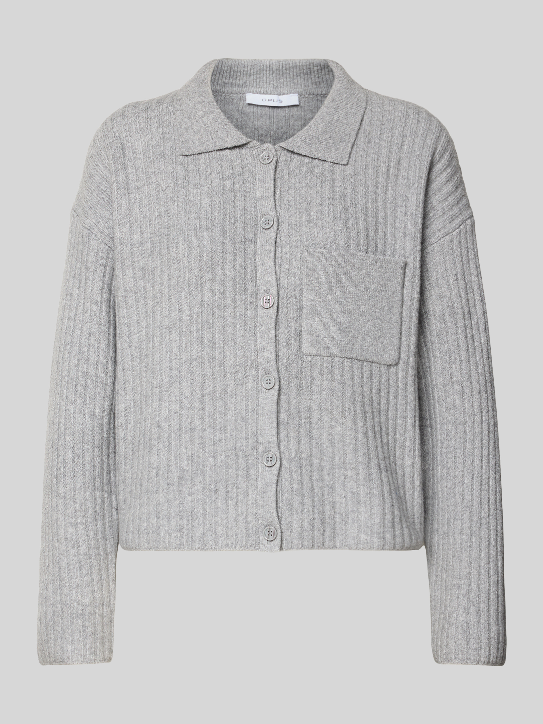 Der Damen Cardigan von OPUS, Modell 'Dinkine', kombiniert einen Regular Fit mit einem klassischen Umlegekragen und einer praktischen Brusttasche. Durch den angenehmen Baumwoll-Mix mit Woll-Anteil fühlt sich das Material weich auf der Haut an und eignet sich ideal für vielseitige Outfits. Die Knopfleiste ergänzt das zeitlose Design um eine funktionale Note.
