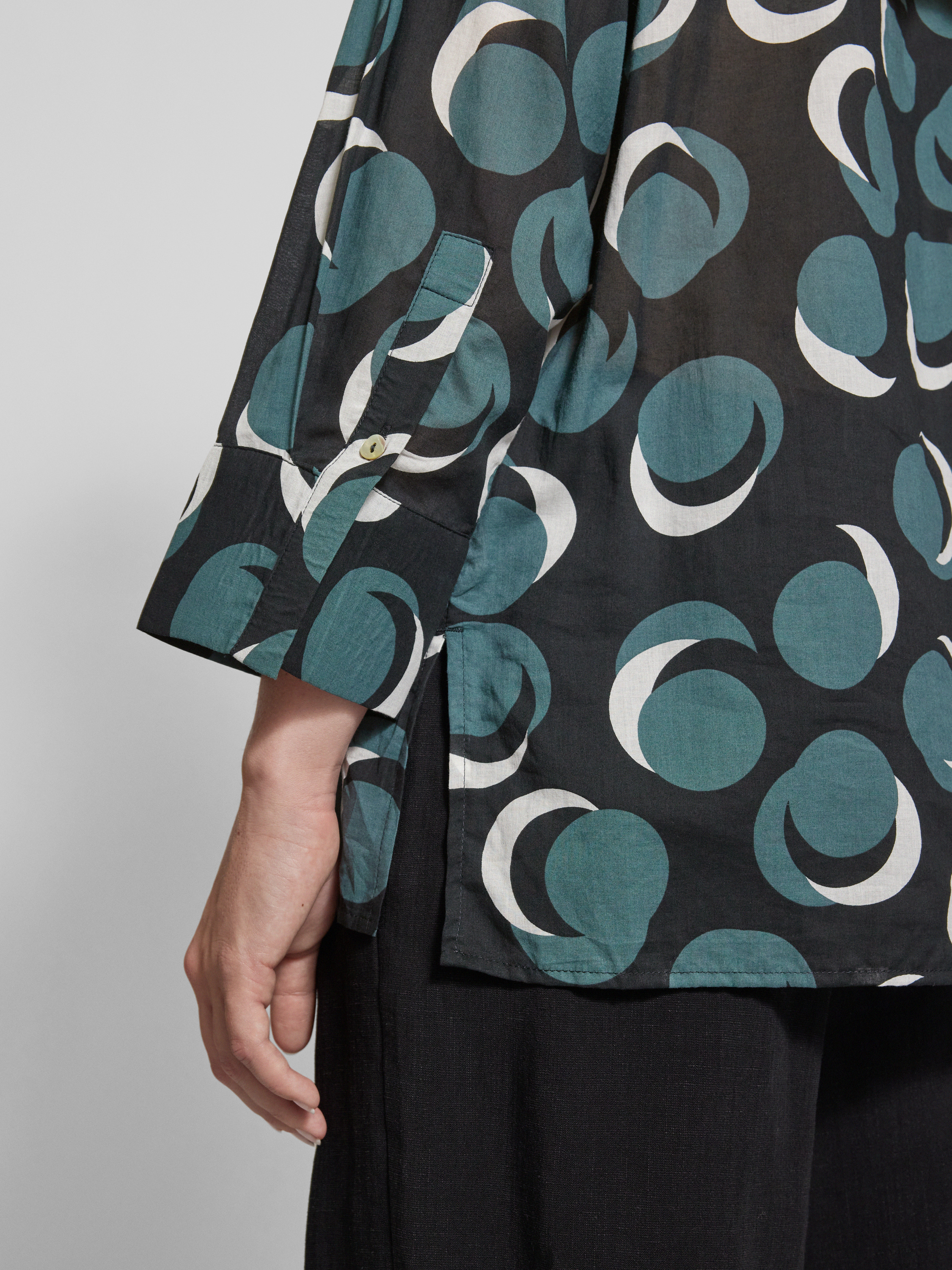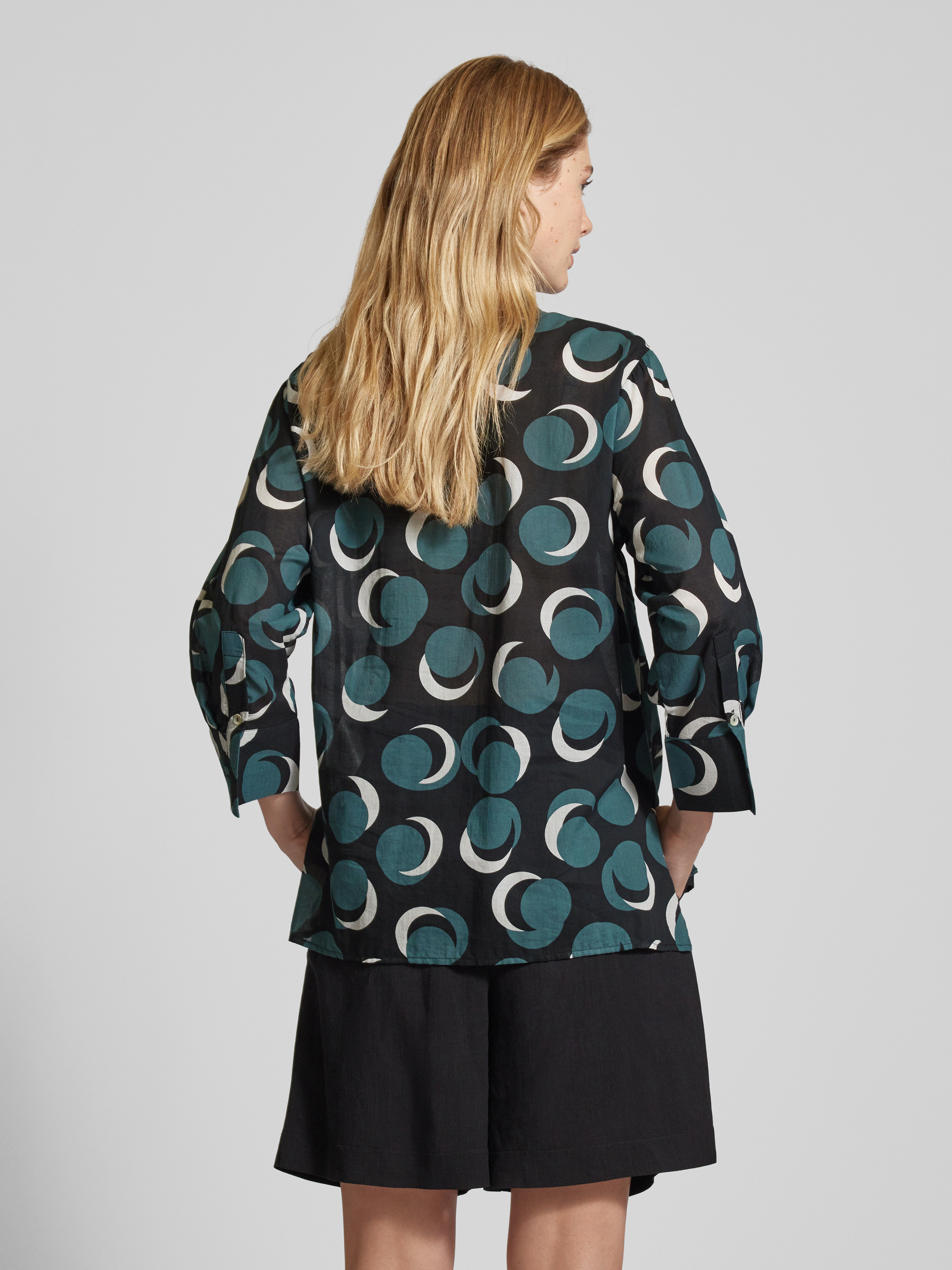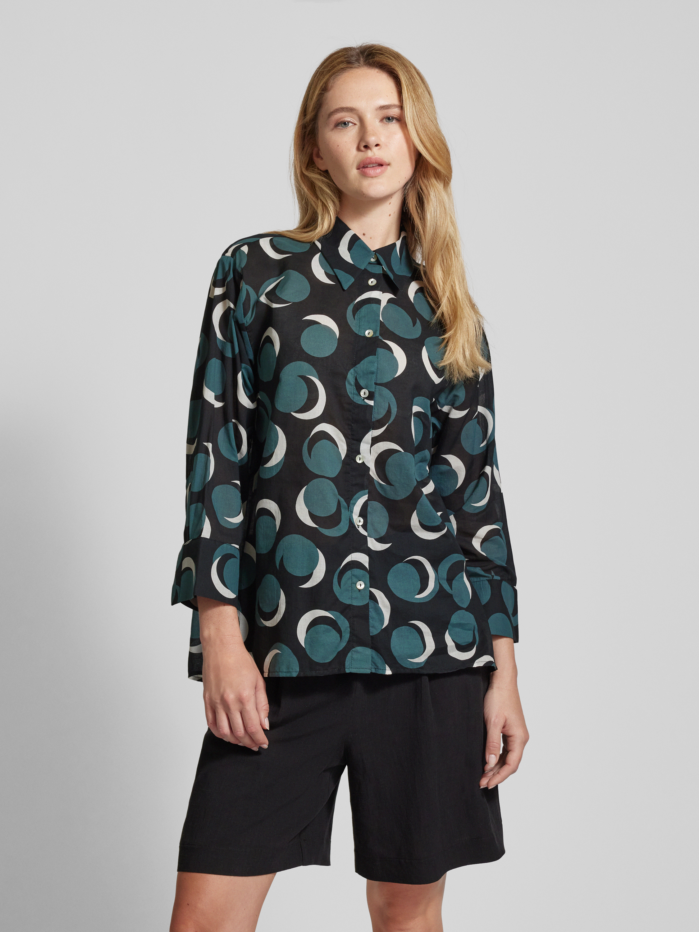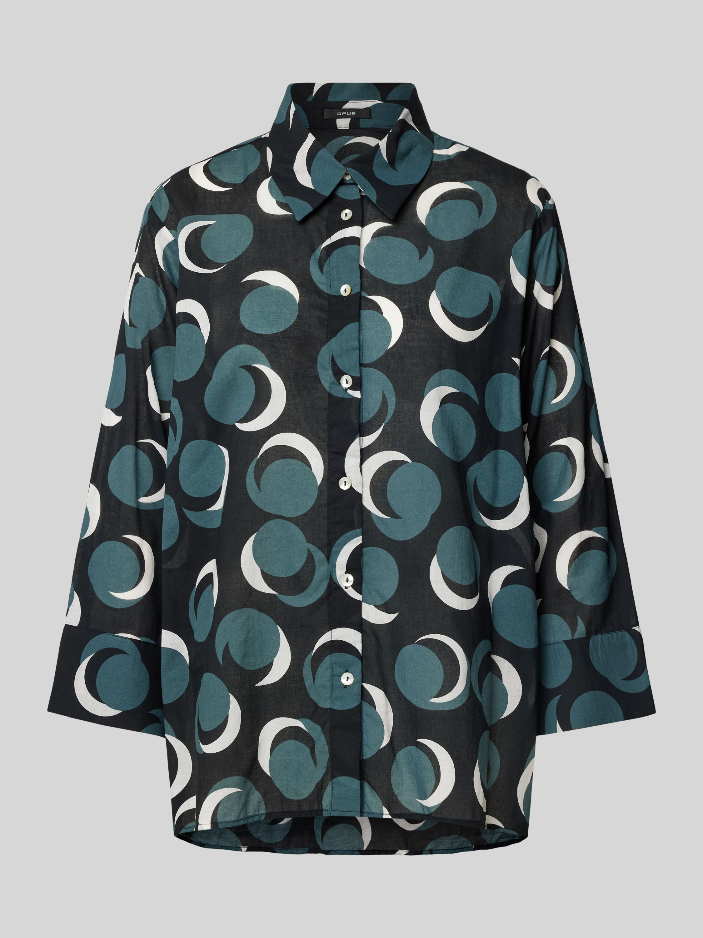 Die Hemdbluse von OPUS vereint mühelos lässige Eleganz mit ihrem geraden Schnitt und dem abstrakten Allover-Muster. Der Hemdblusenkragen sorgt für eine klassische Note, während die 3/4-Ärmel und die Manschetten Flexibilität und Komfort im Alltag bieten. Dank der hochwertigen Baumwolle fühlt sie sich angenehm auf der Haut an.