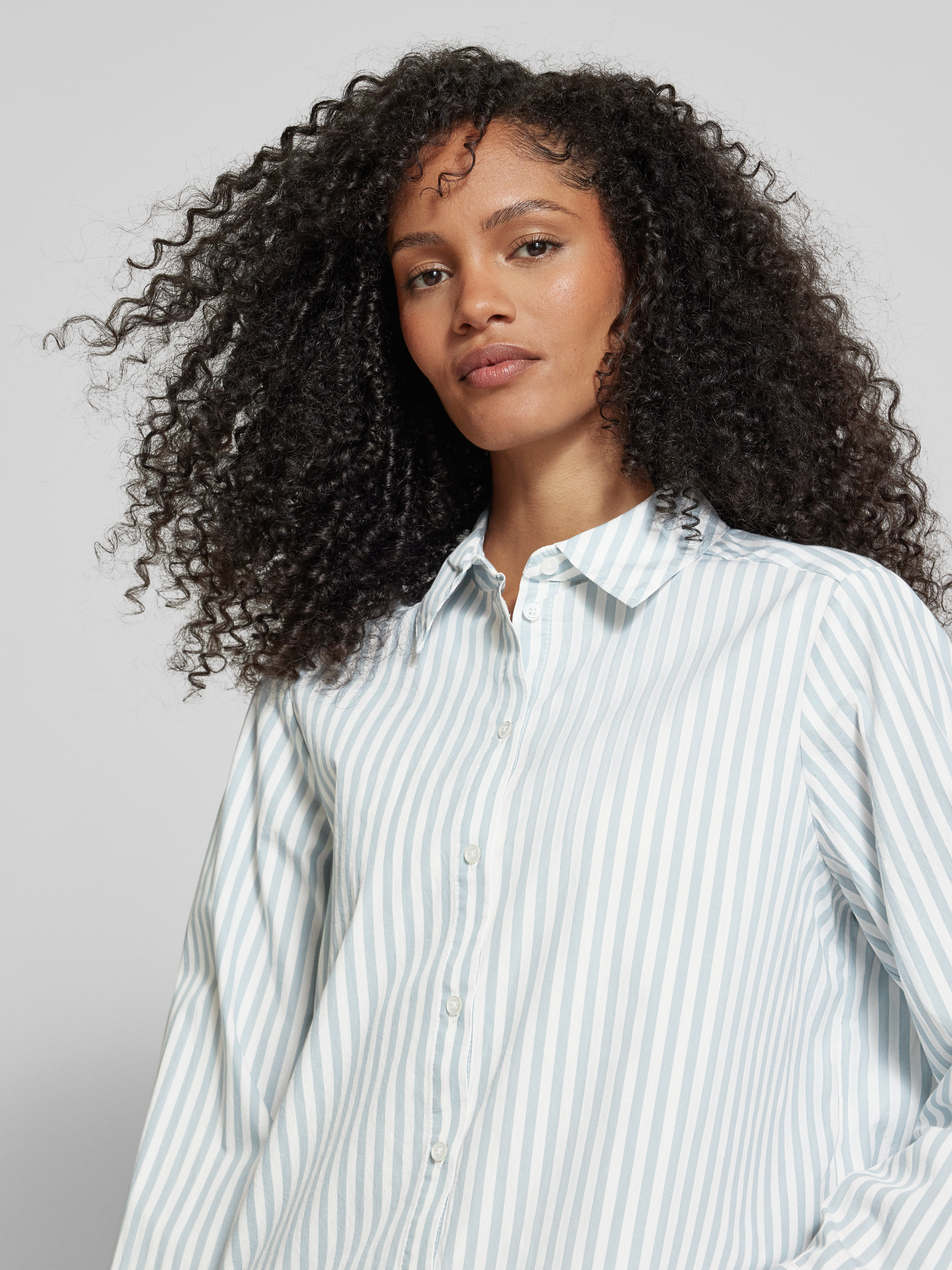 Die Hemdbluse 'Febula' von OPUS beeindruckt durch ihren lockeren Schnitt und den klassischen Hemdblusenkragen, der für eine angenehme Passform sorgt. Aus reiner Baumwolle gefertigt, bietet sie ein komfortables Tragegefühl, während die Knopfleiste eine vielseitige Styling-Option darstellt. Ideal für entspannte und stilvolle Alltagslooks.