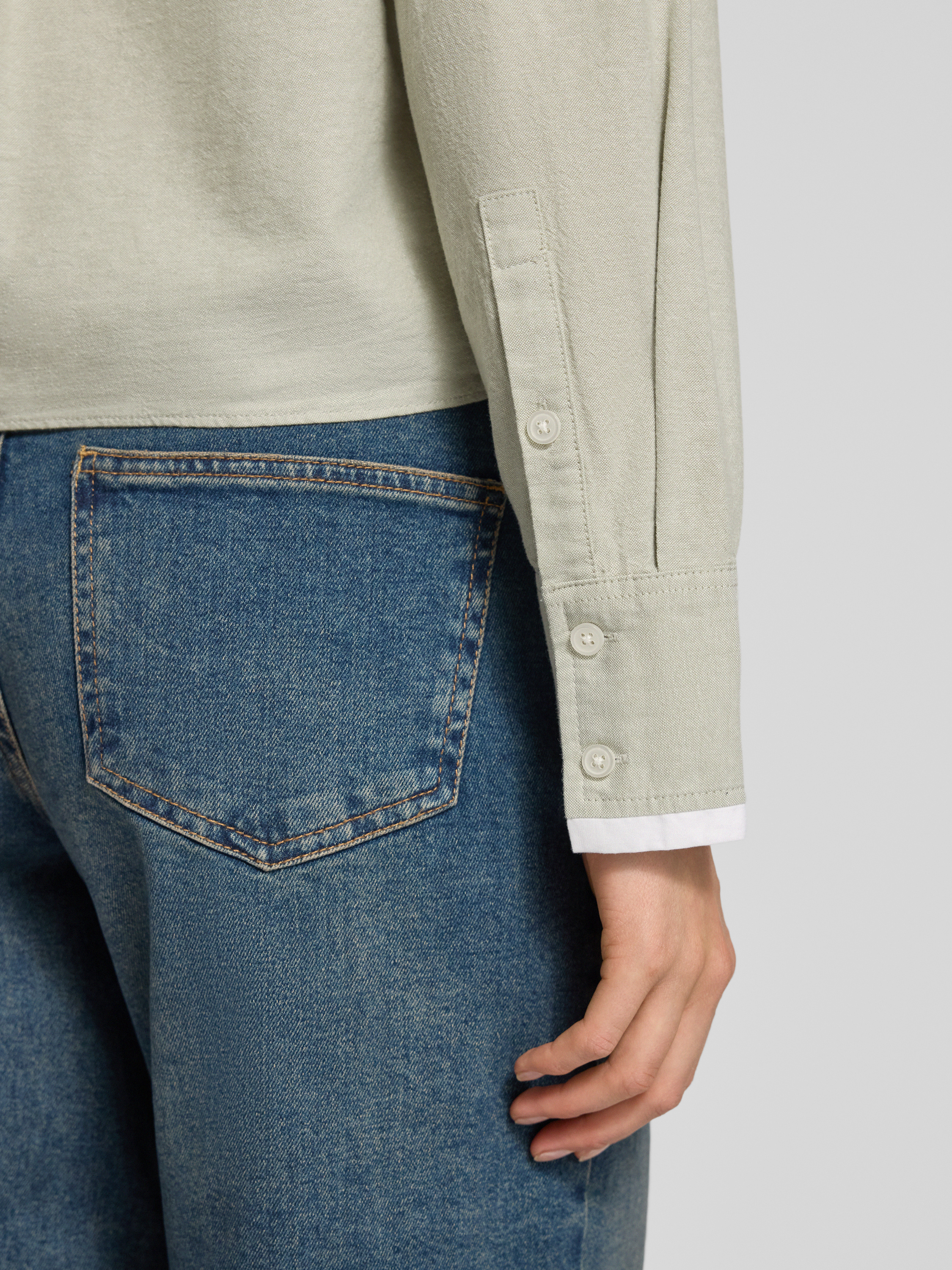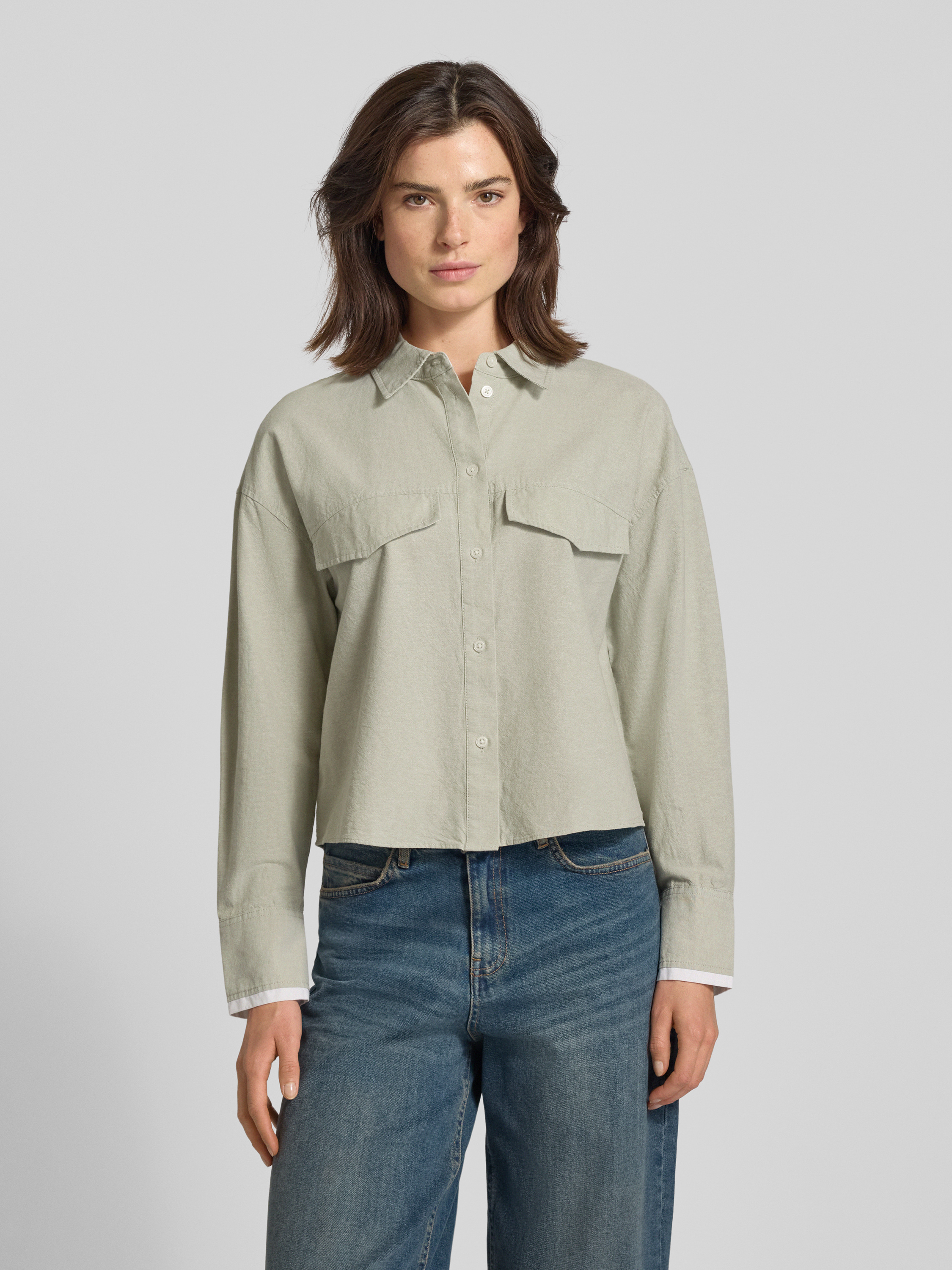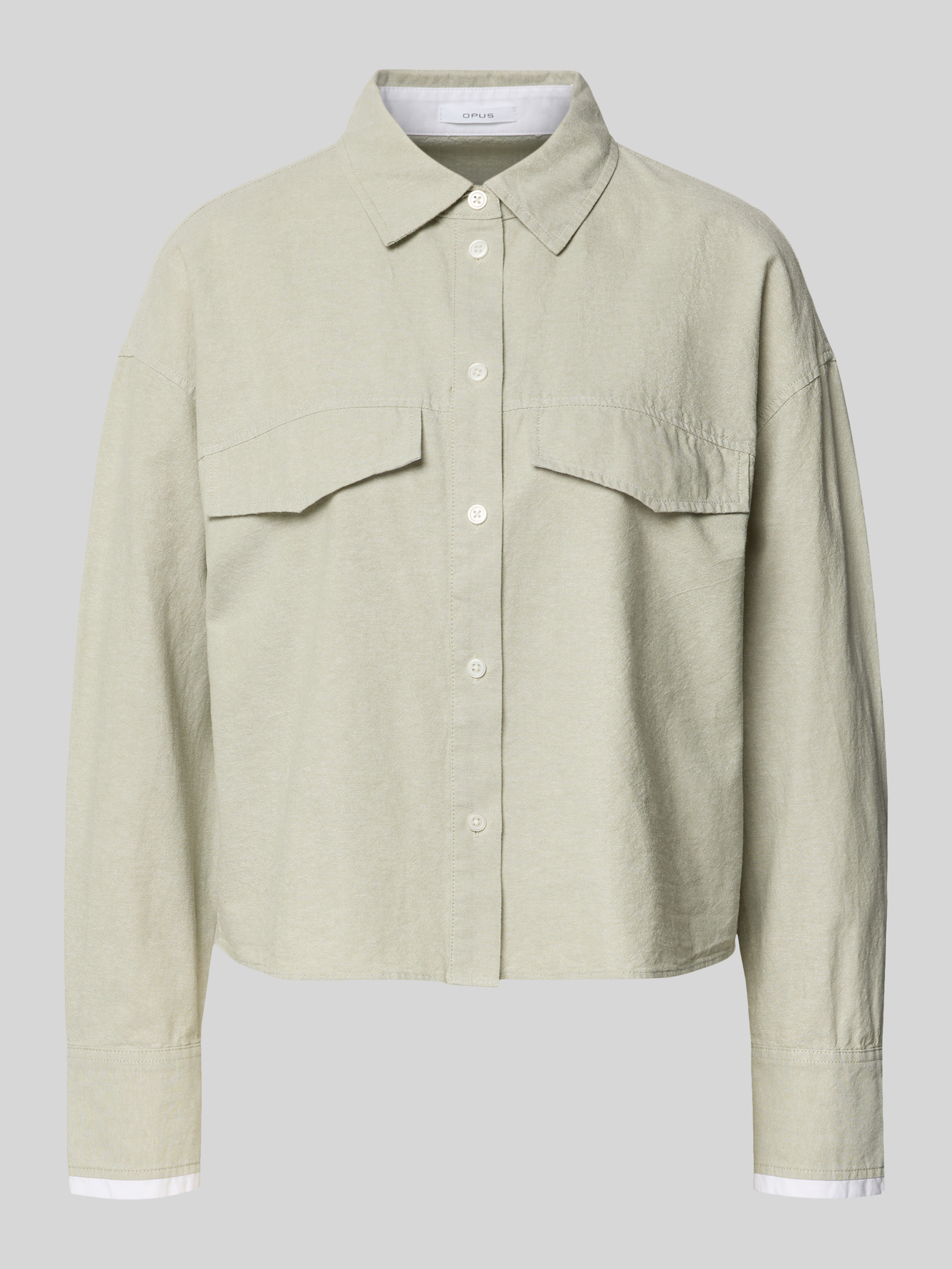 Die Damen Hemdbluse von OPUS, Modell Finsi, zeichnet sich durch ihren lockeren Schnitt aus, wodurch sie angenehm fällt und Bewegungsfreiheit ermöglicht. Reine Baumwolle sorgt für ein atmungsaktives Tragegefühl, das sich im Alltag bewährt. Mit Hemdblusenkragen, Knopfleiste und Brusttaschen entsteht ein vielseitiger Look.