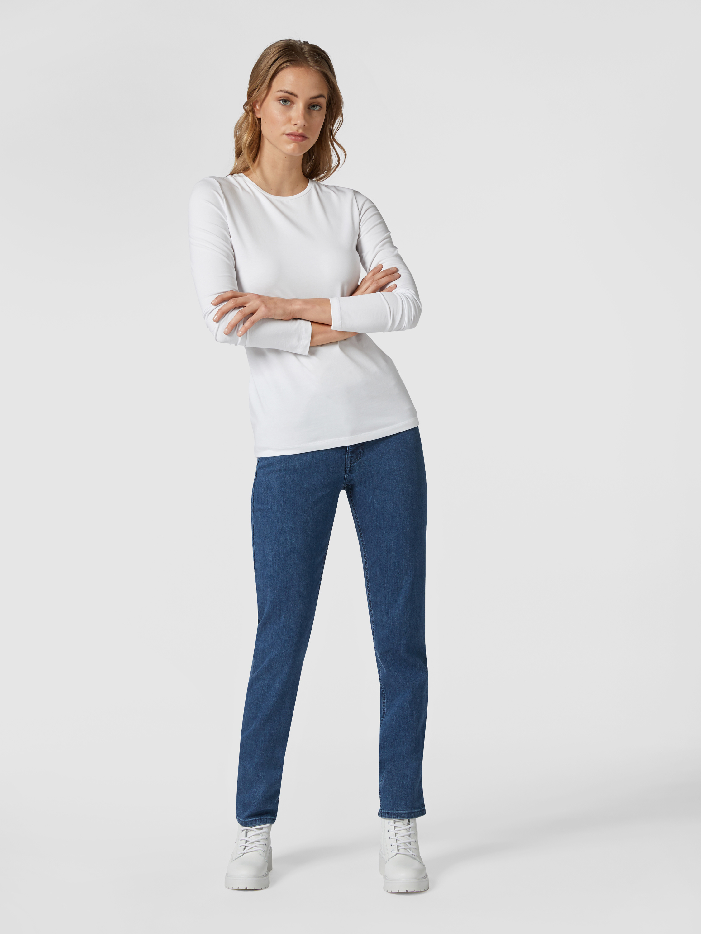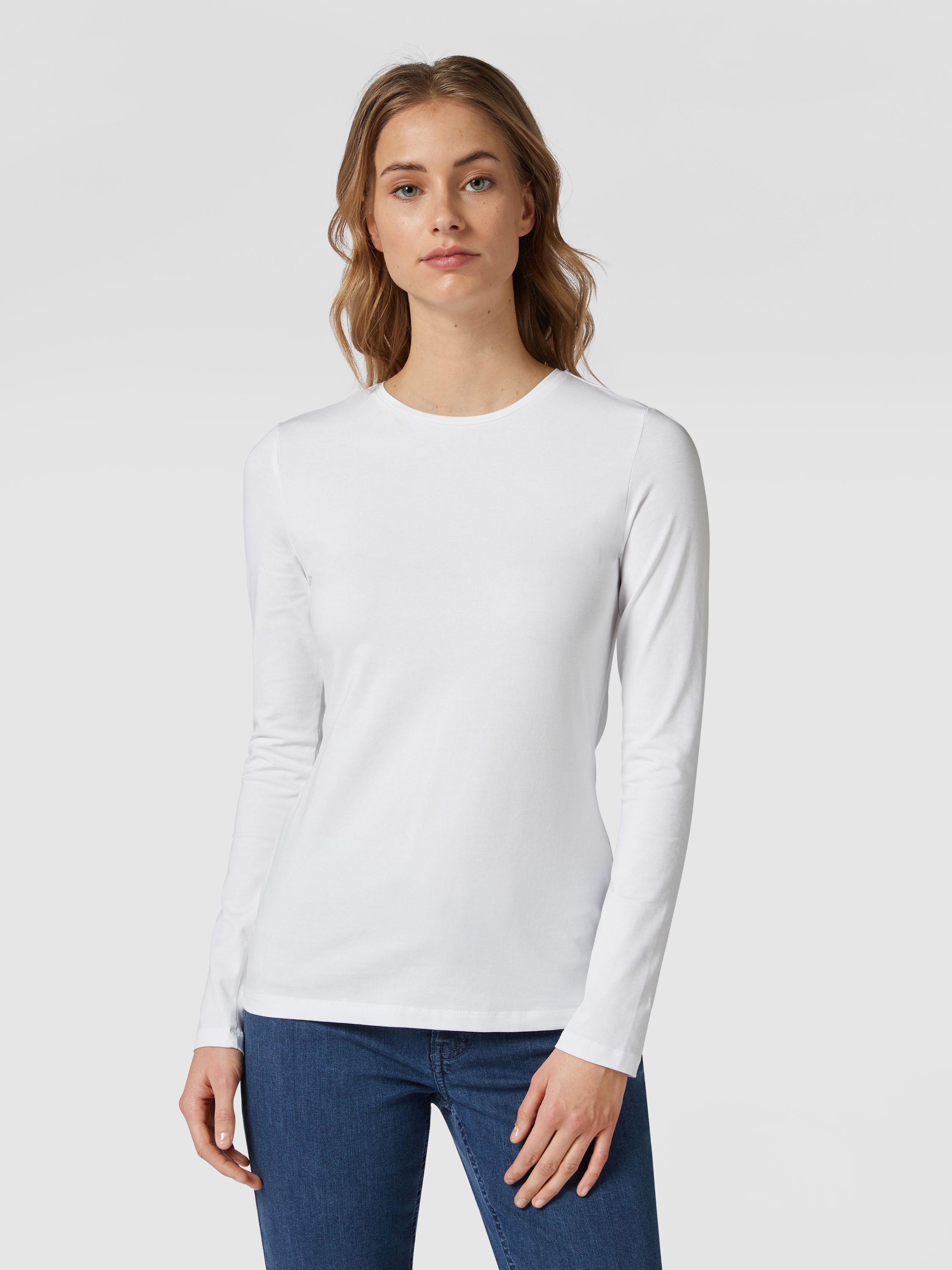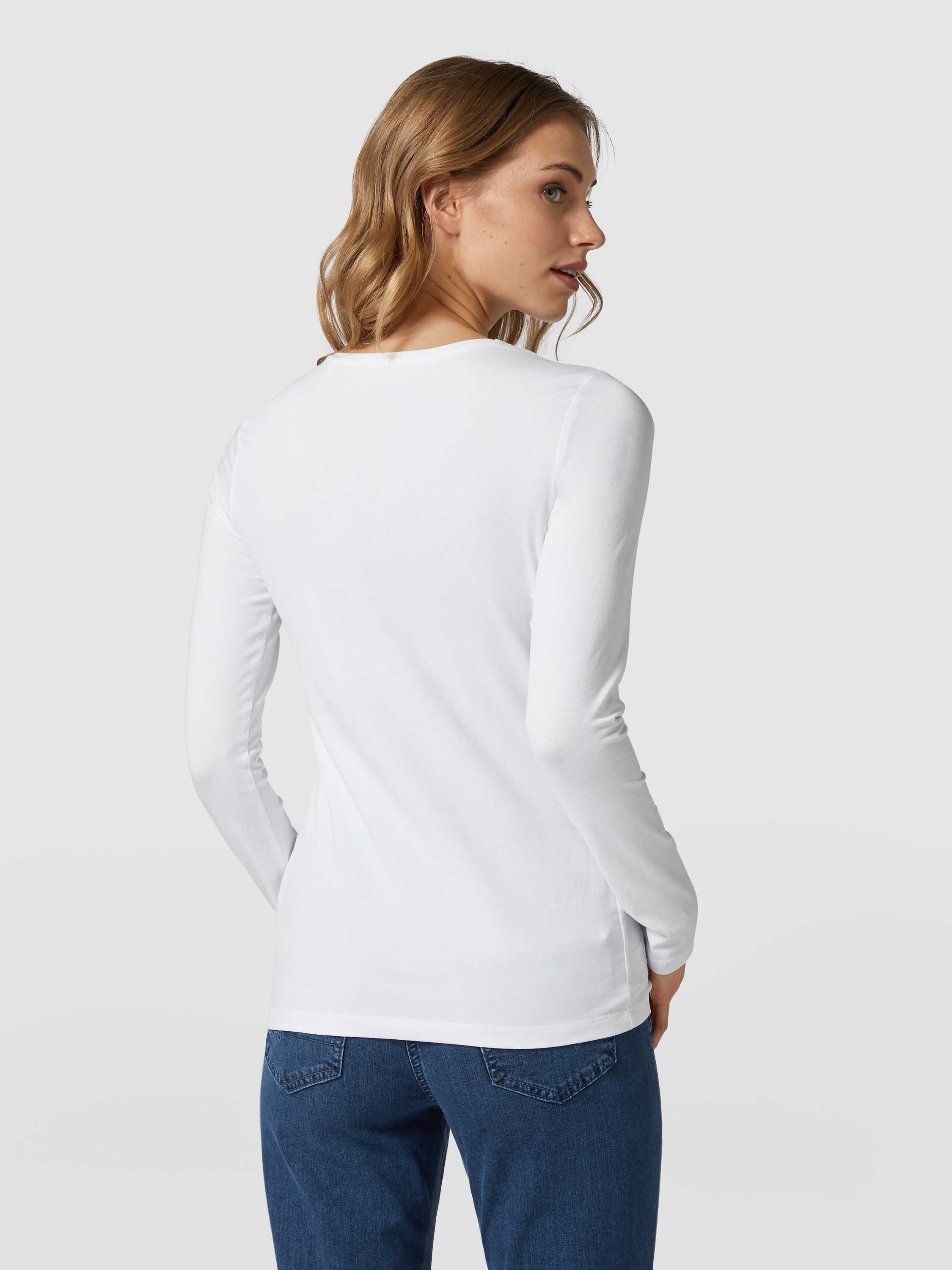 Das Damen Longsleeve von OPUS aus einem weichen Baumwoll-Elasthan-Mix schmiegt sich angenehm an den Körper an. Der schmale Schnitt und das unifarbene Design verleihen dem Kleidungsstück eine zeitlose Eleganz. Der Rundhalsausschnitt rundet das Gesamtbild harmonisch ab.