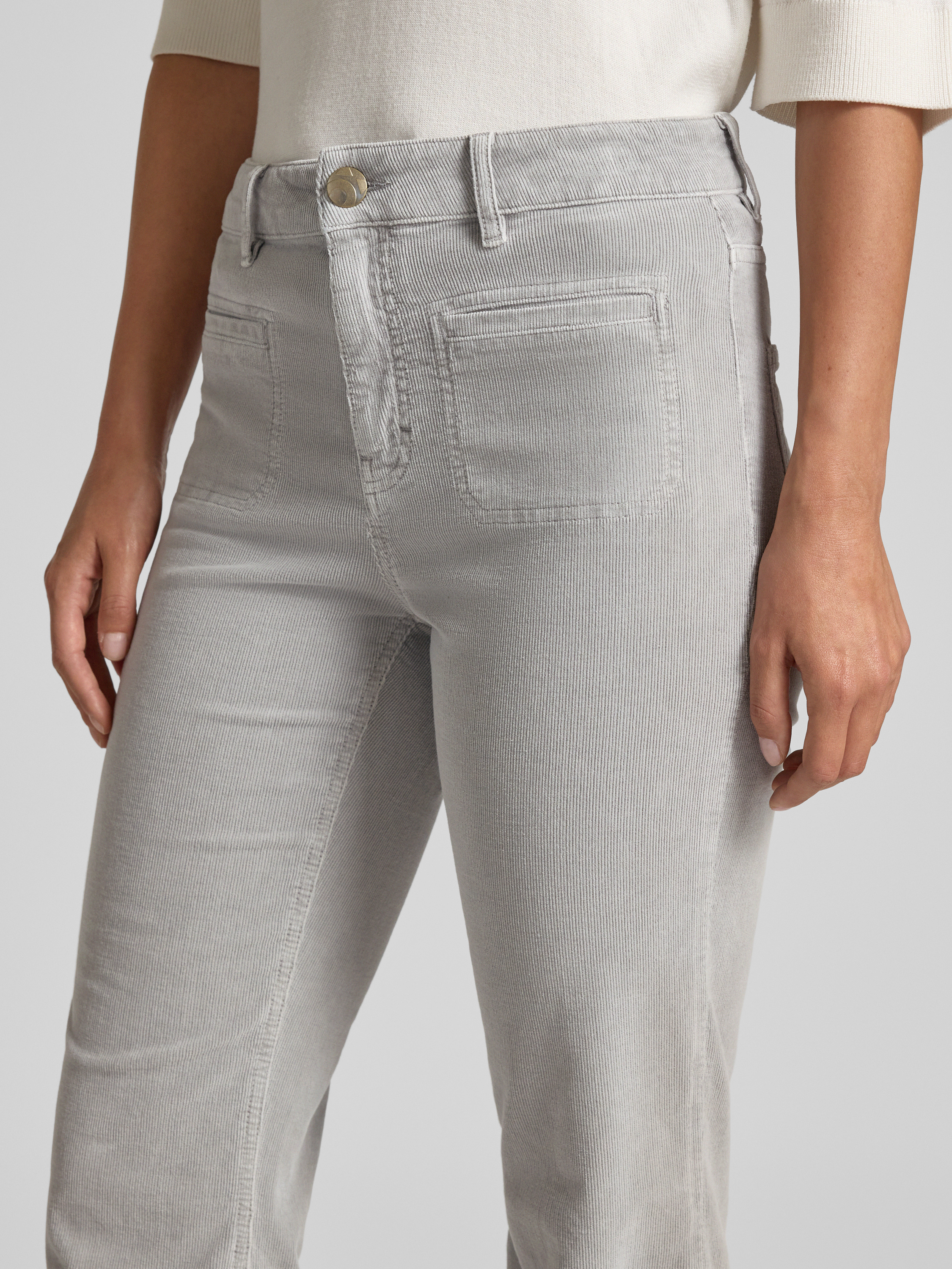OPUS PANTSFlared Fit Cordhose mit Pattentaschen Modell 'Melly' in hellgrau