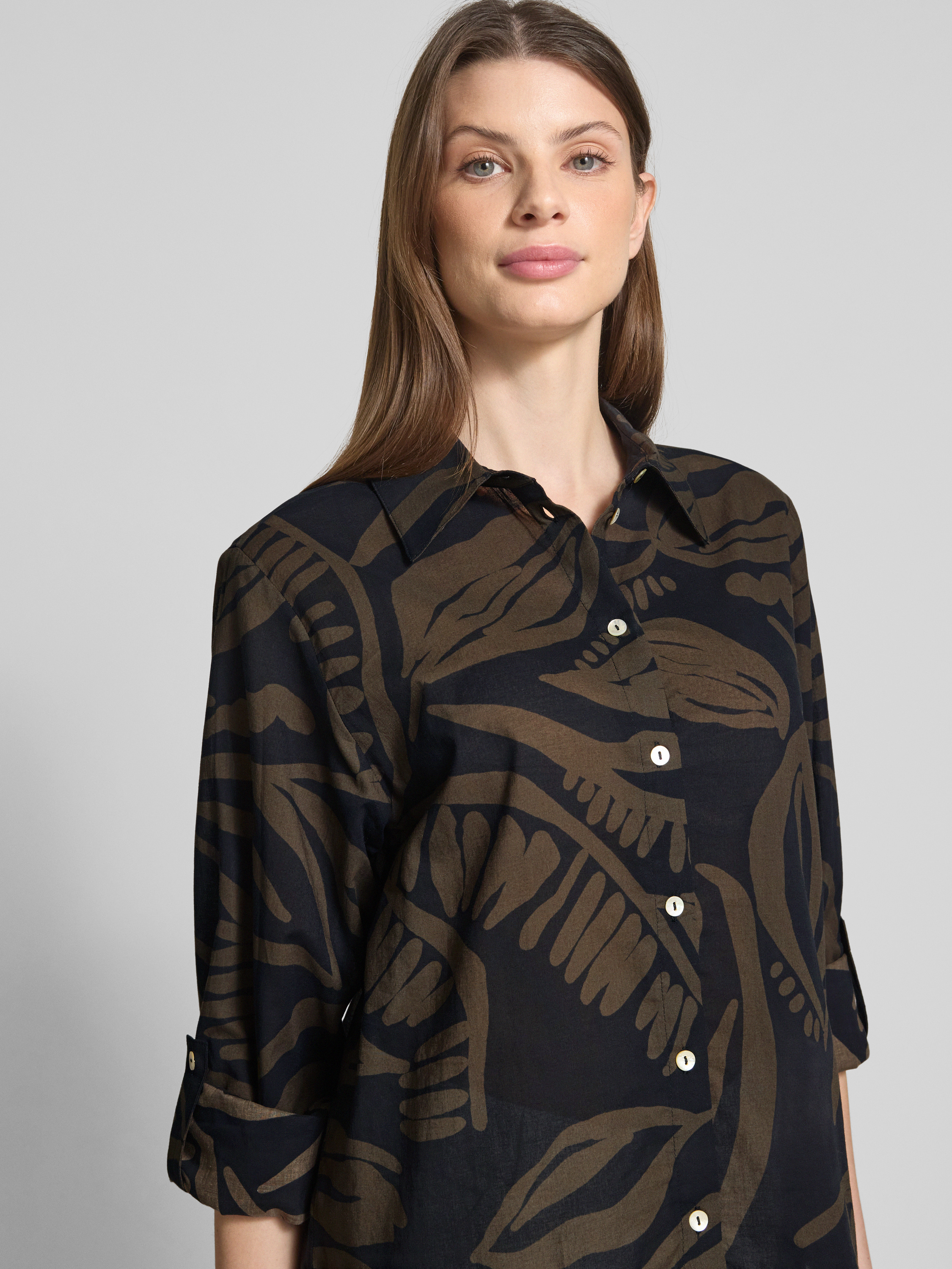 Die Damen Hemdbluse von Opus, Modell Fumine, setzt auf reine Baumwolle und einen Regular Fit, wodurch sie angenehm auf der Haut liegt und Bewegungsfreiheit ermöglicht. Ein klassischer Hemdblusenkragen unterstreicht die zeitlose Optik, während die durchgehende Knopfleiste Flexibilität im Styling schafft. So eignet sich die Bluse für unterschiedlichste Anlässe und verleiht dem Outfit eine unkomplizierte Note.